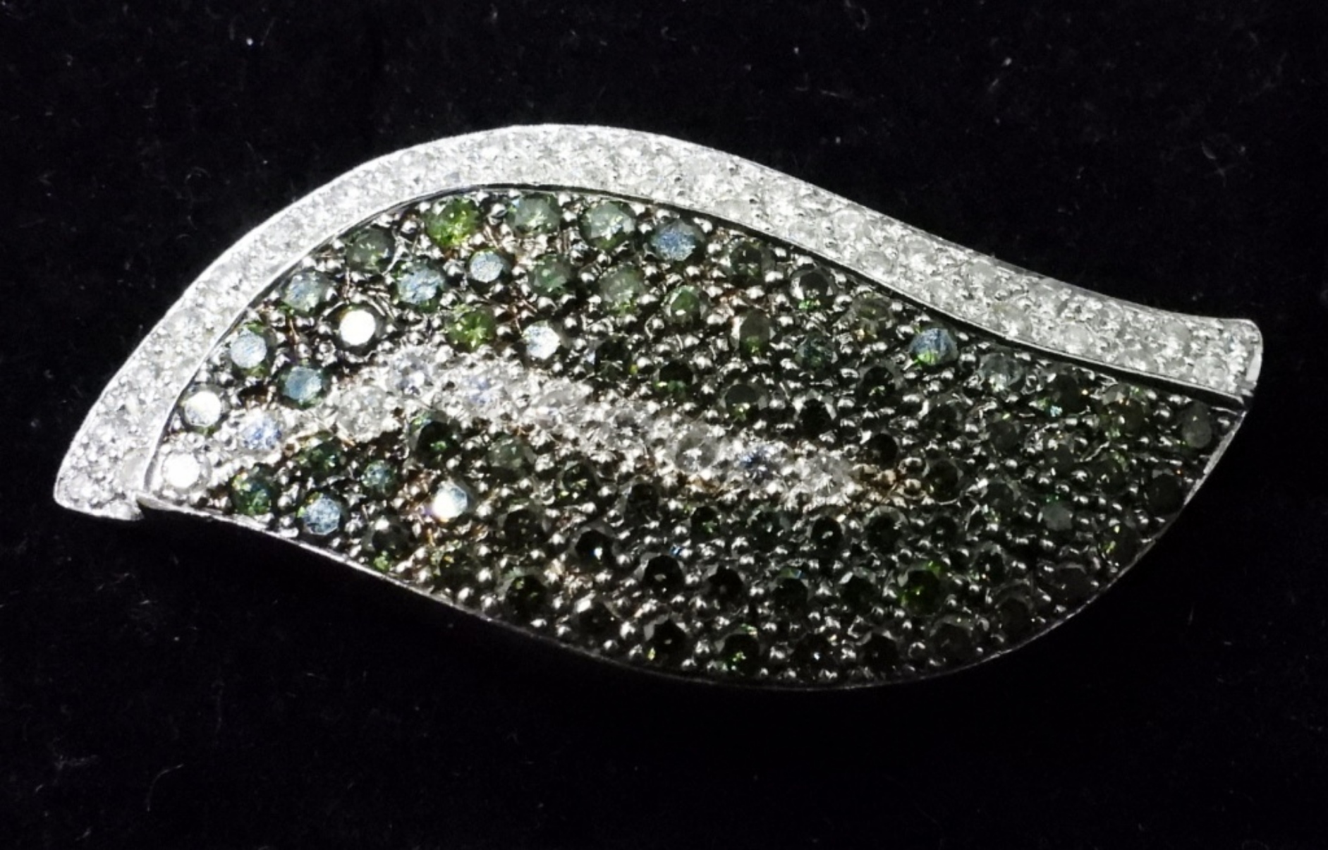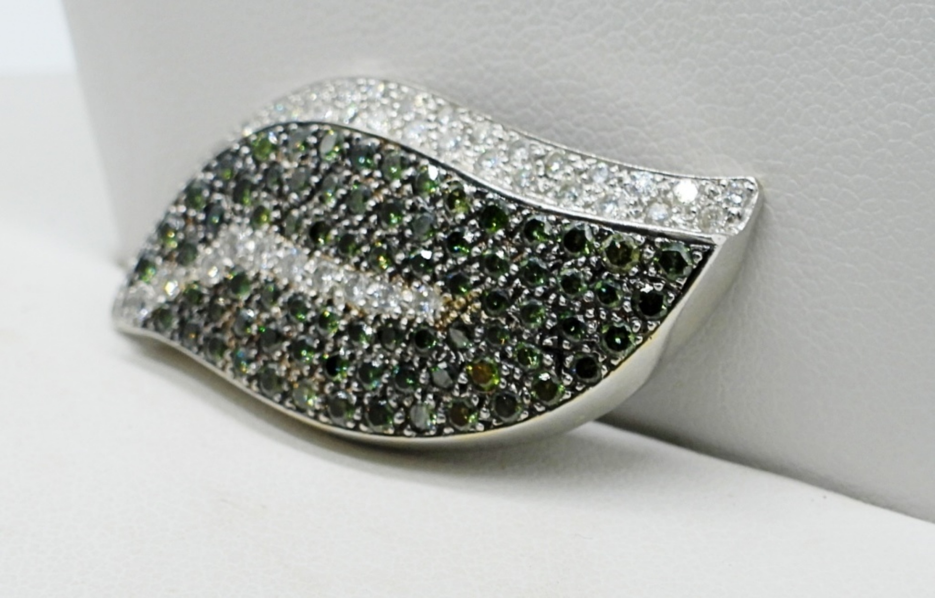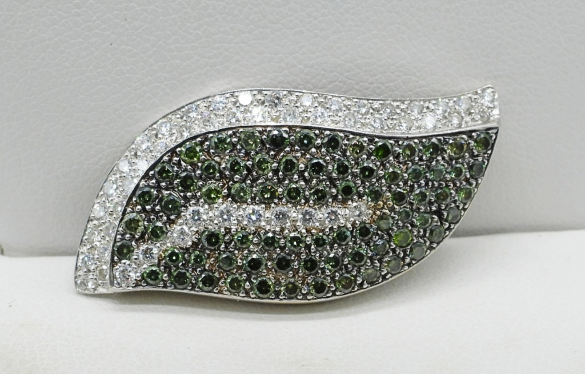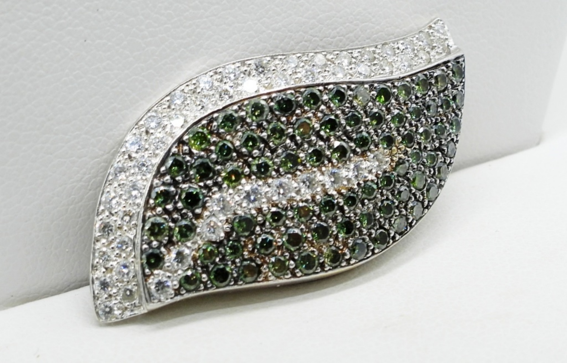 18k White Gold Pave Green & White Diamond (Tested) Pendant. 1.5″ Long. (6.7 DWT w/ diamonds)