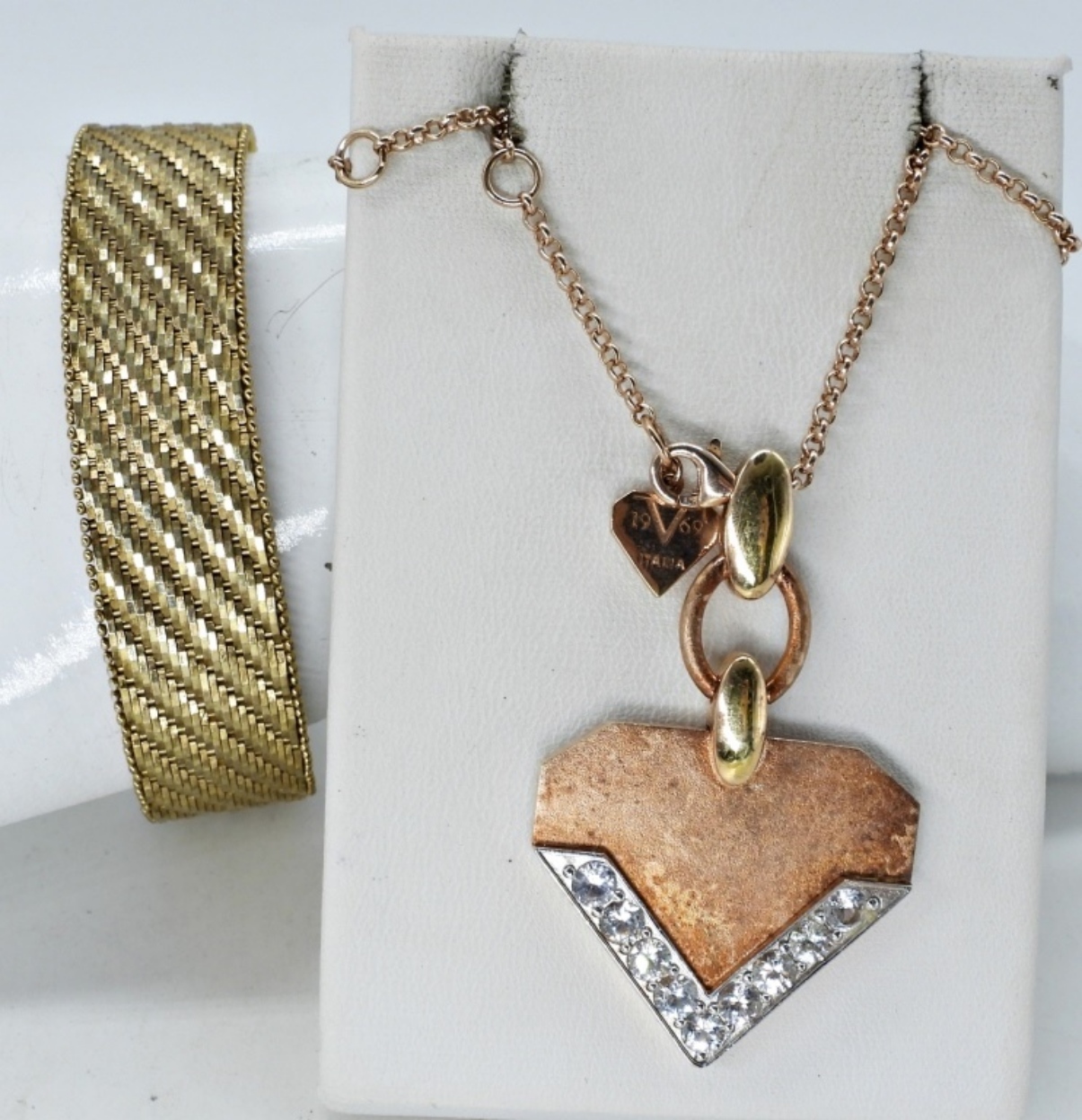 Sterling gold toned bracelet, 7.5″ Necklace, 20″ (41 DWT)