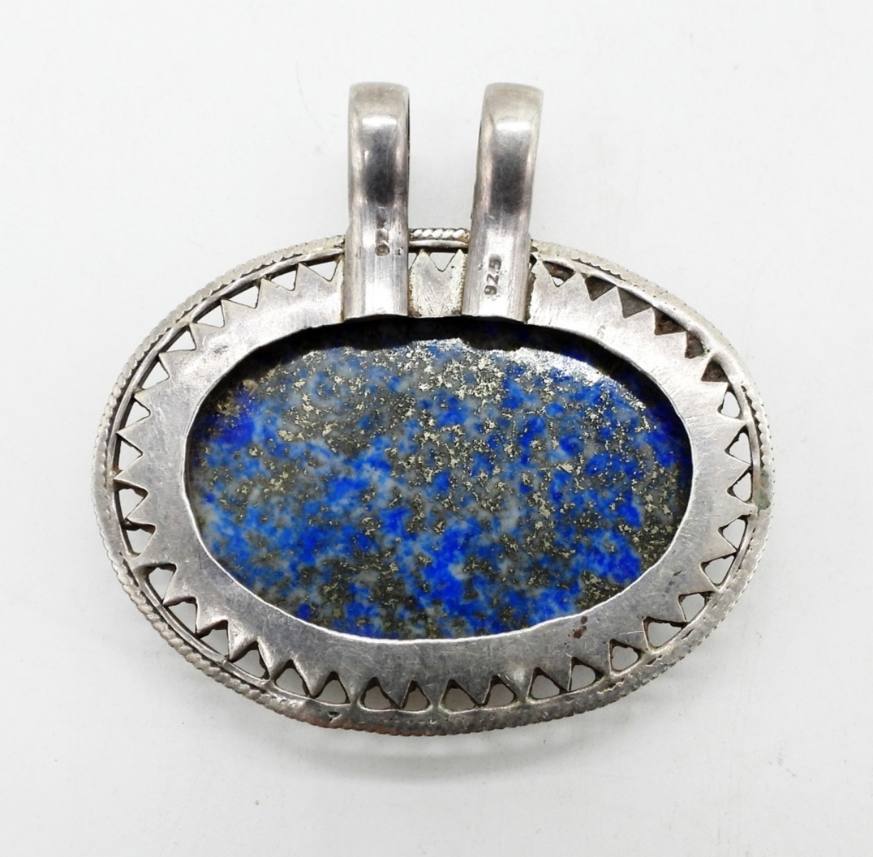 Large vintage sterling lapis lazuli pendant. 2.5″ x 2.5″ (20 DWT)