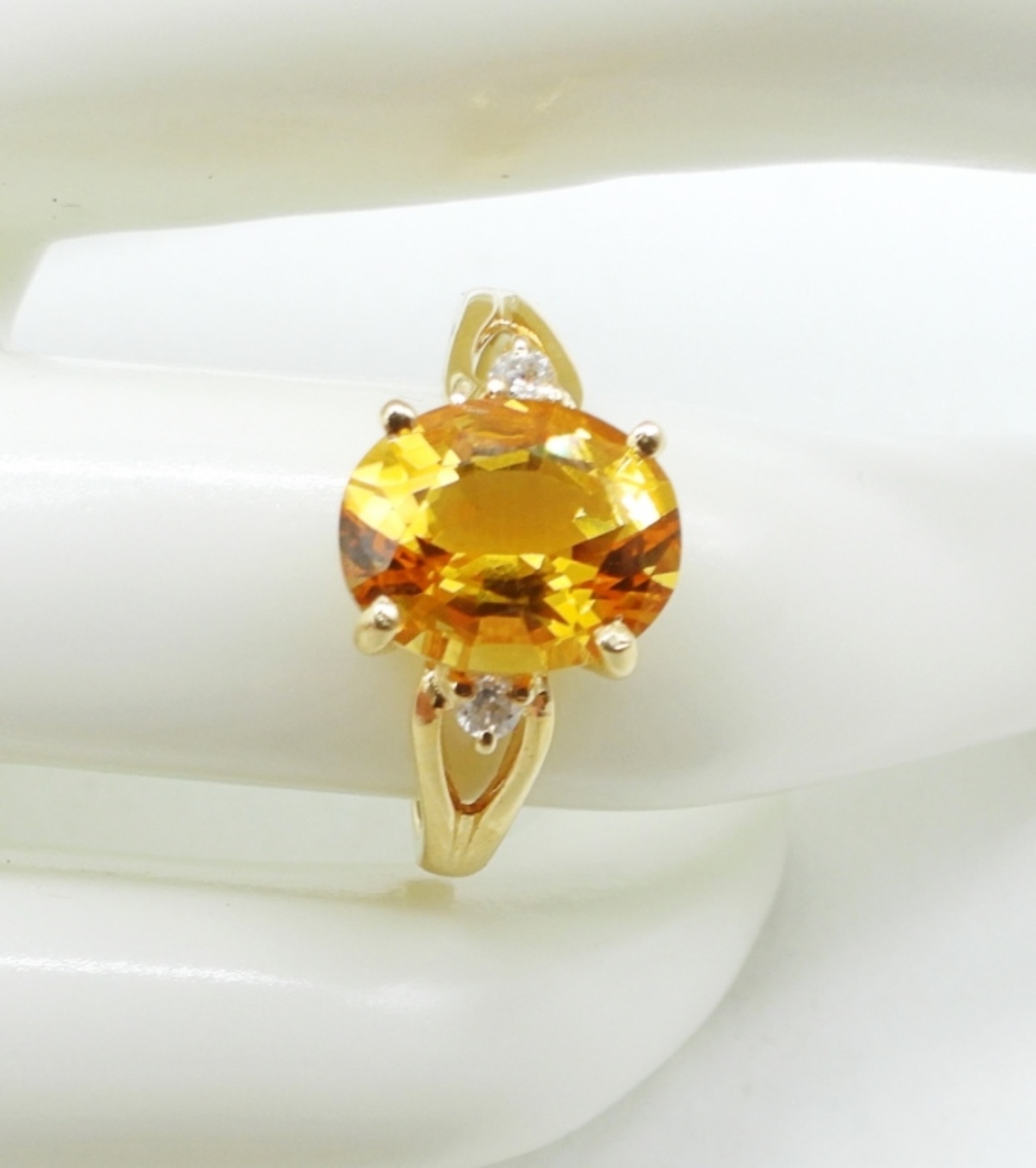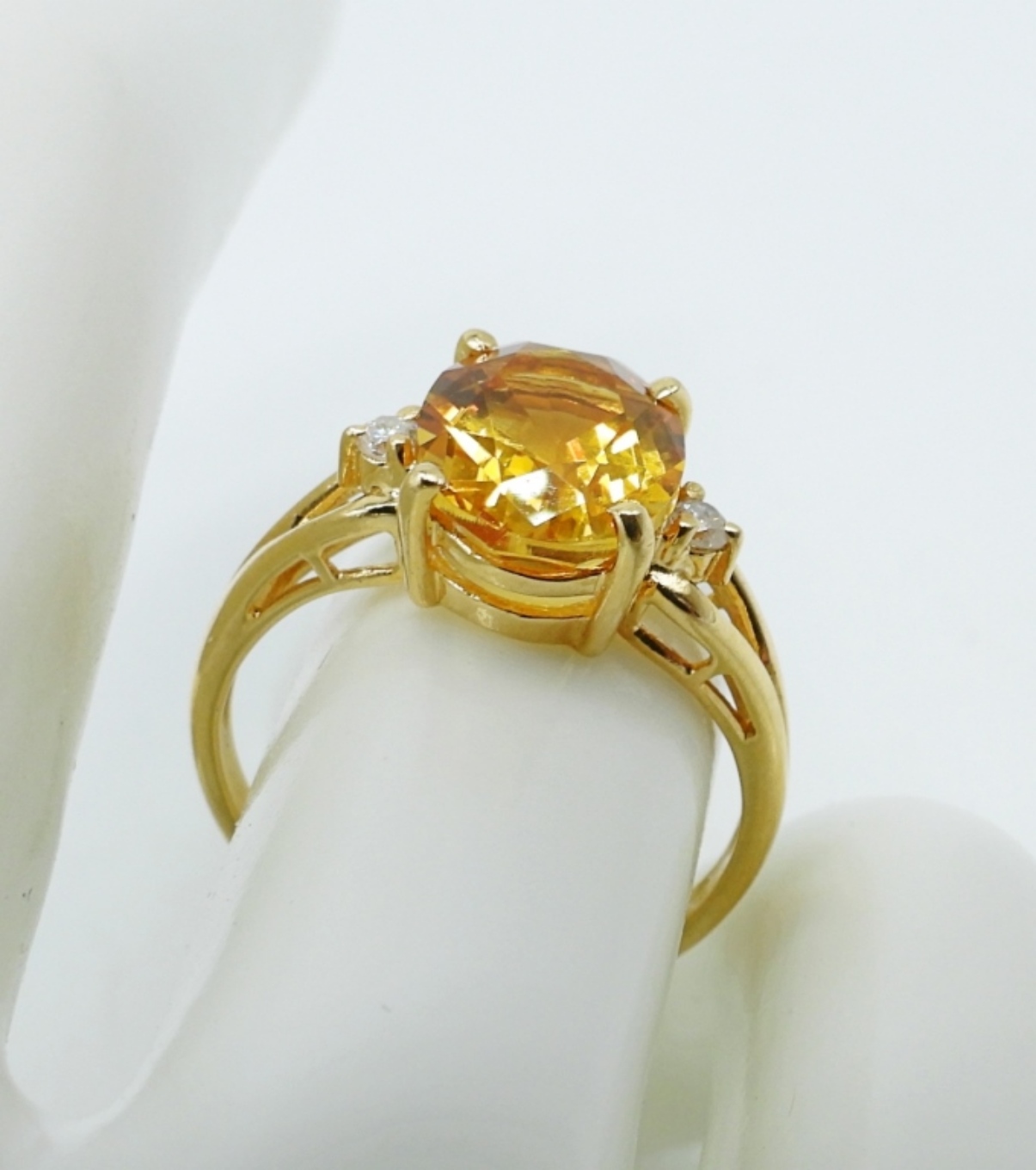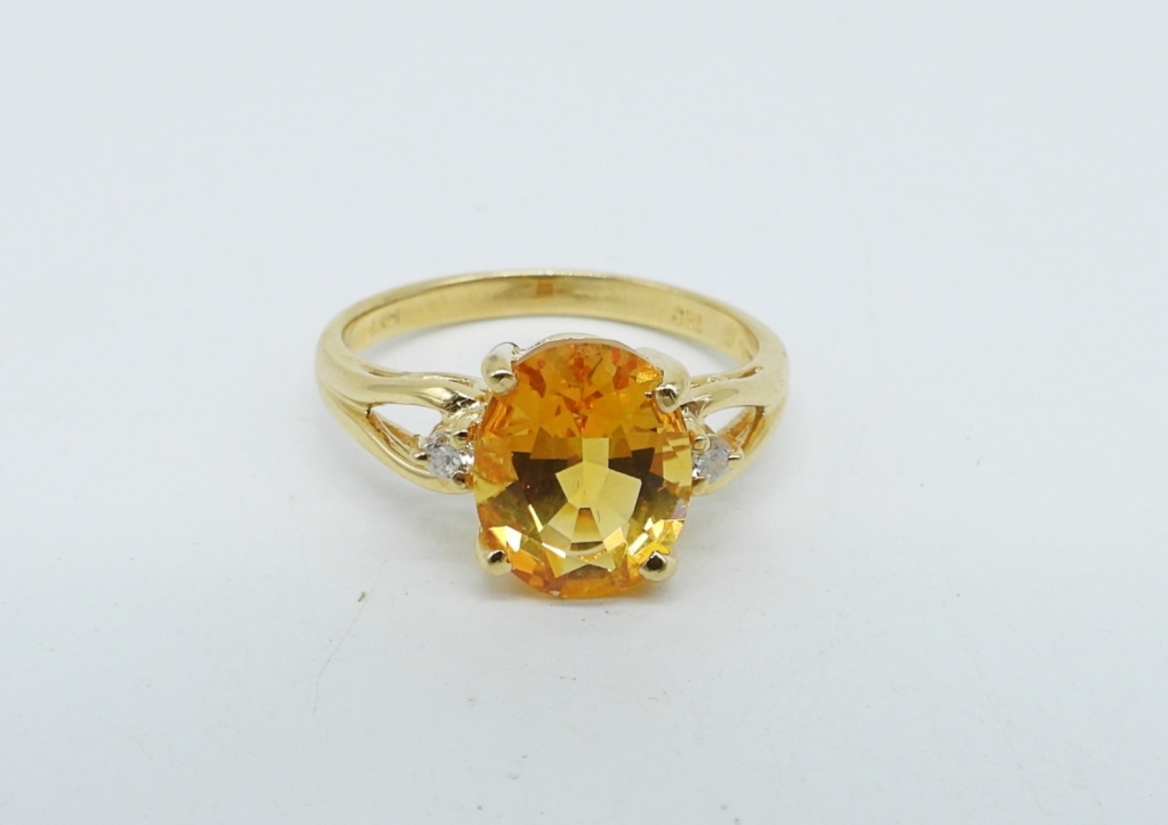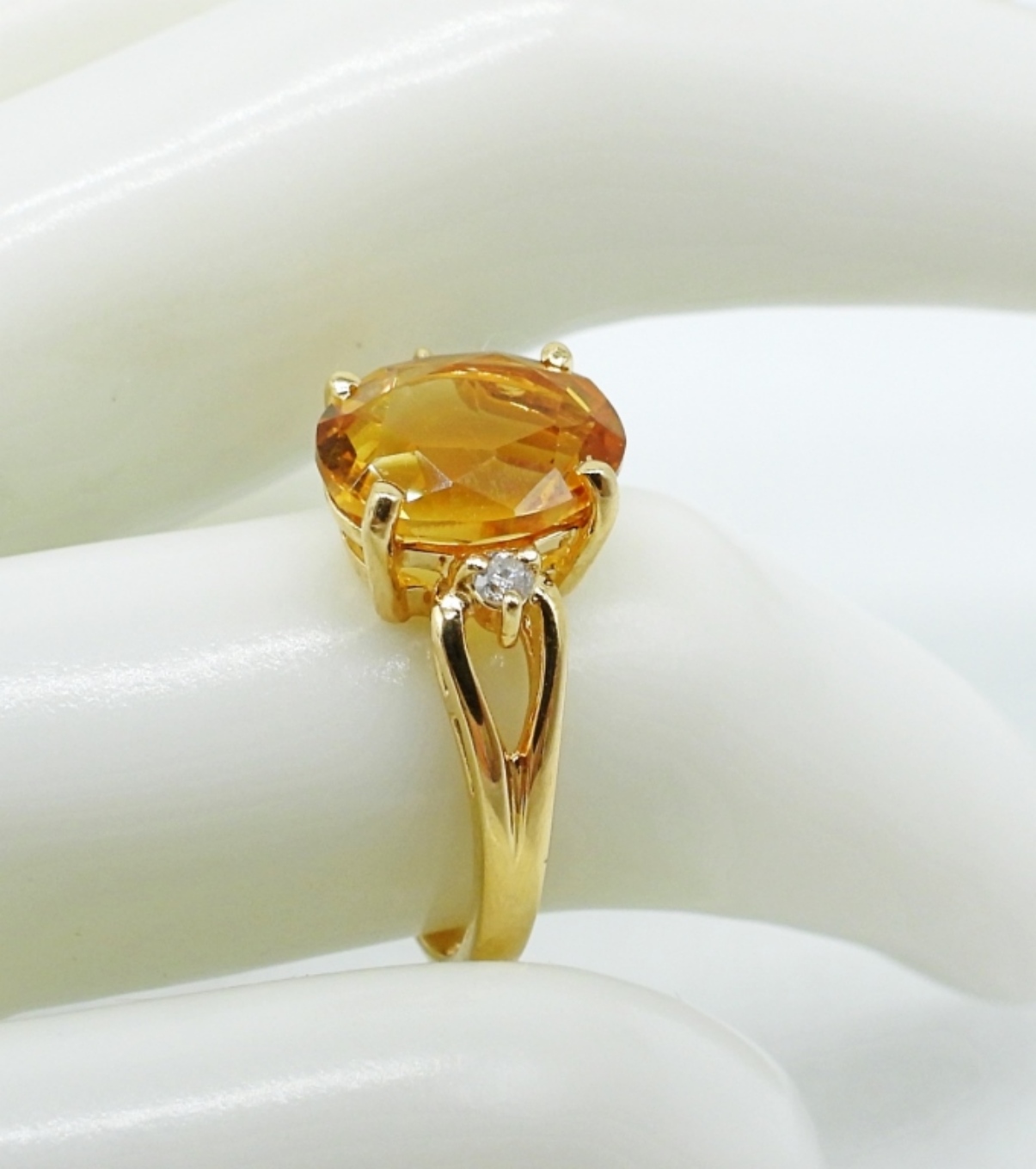14K Yellow gold, Citrine & Diamond ring. Size 6 1/4. Incredible Ring! (1.7 DWT W/ STONES)