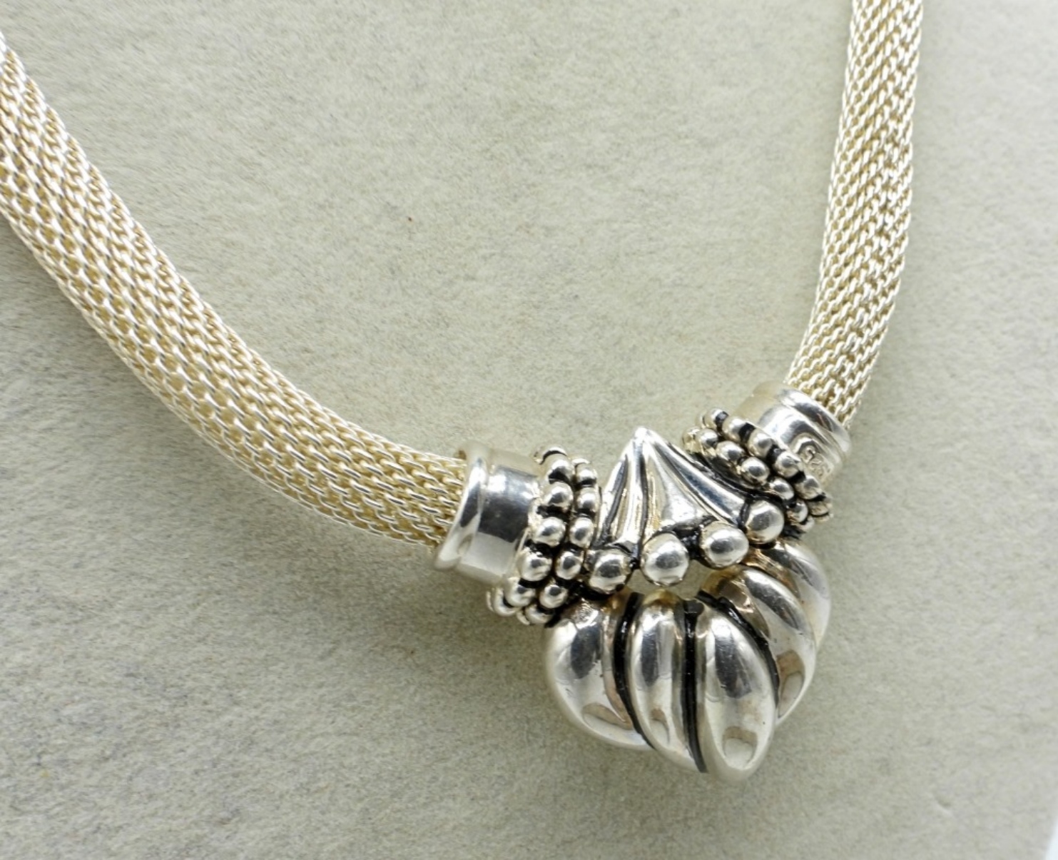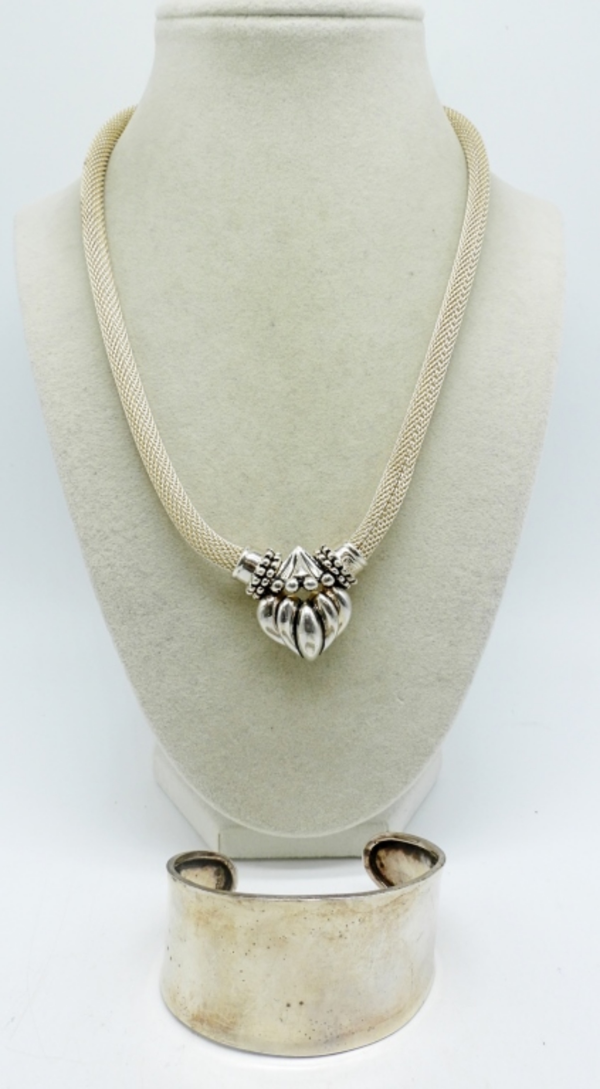 Espo sterling snap clasp necklace, 18″ & Sterling Cuff Bracelet. (42 DWT)