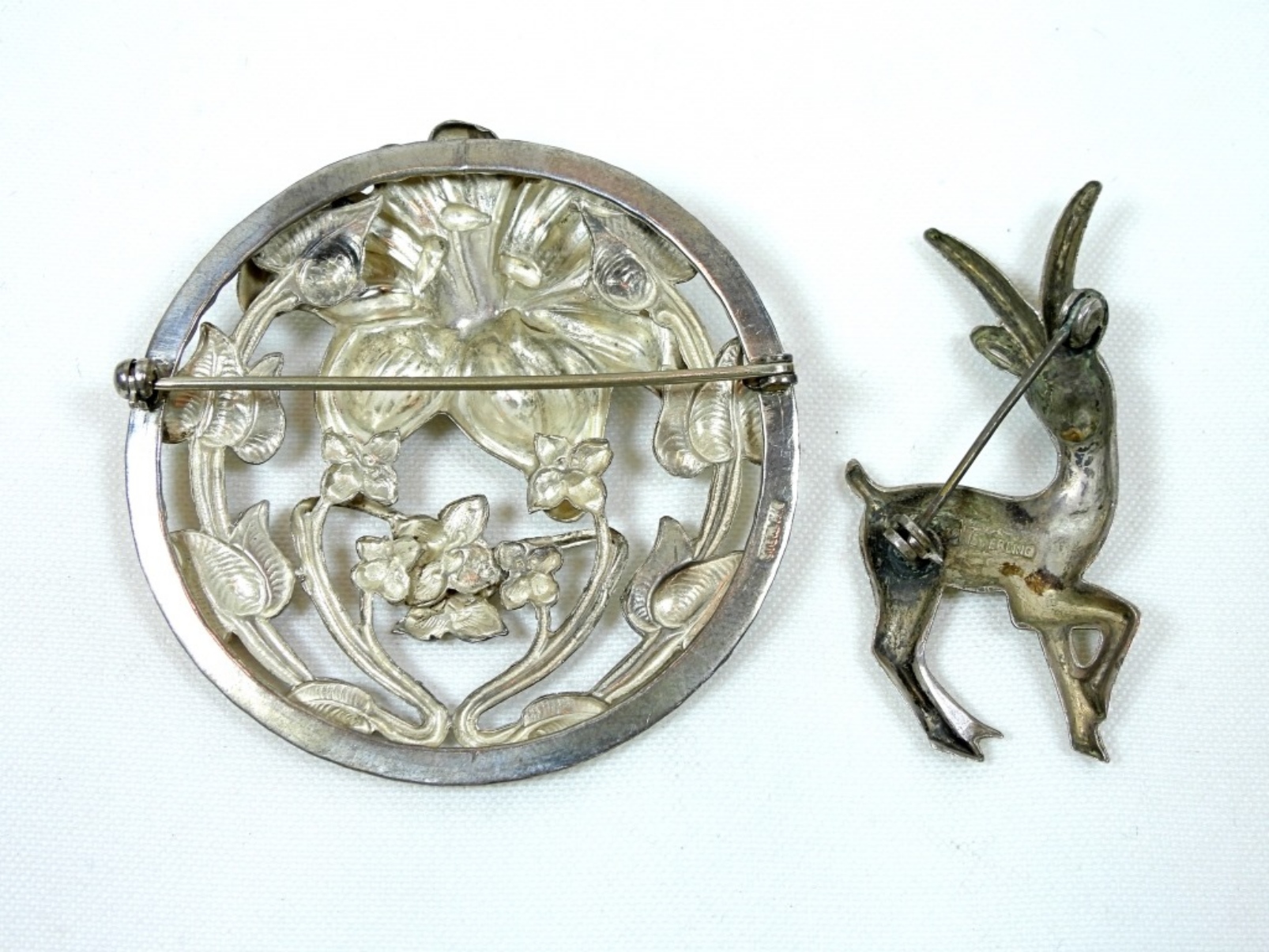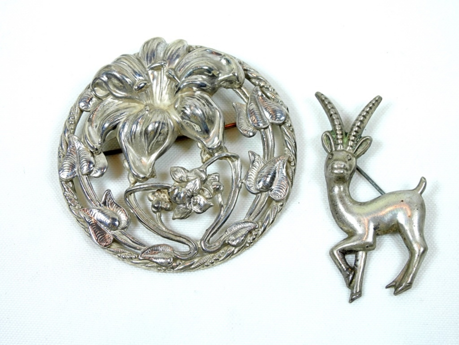 2 Sterling Pins, Gazelle 2”, Floral Style 1.5”, DWT (15.3)