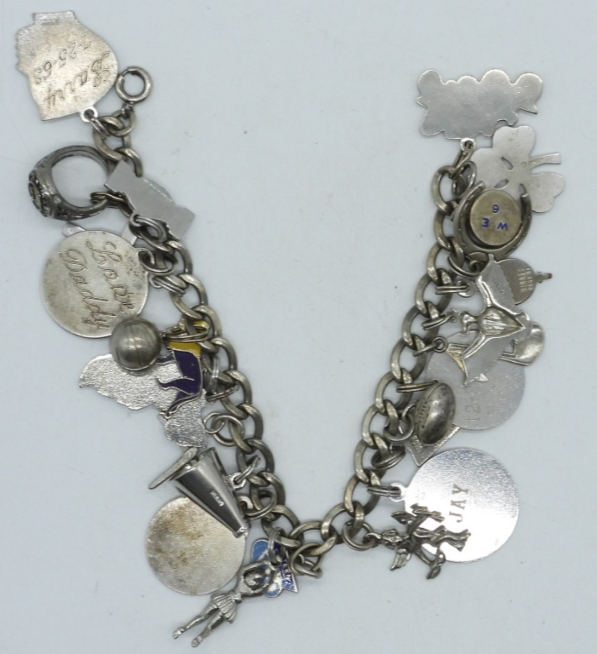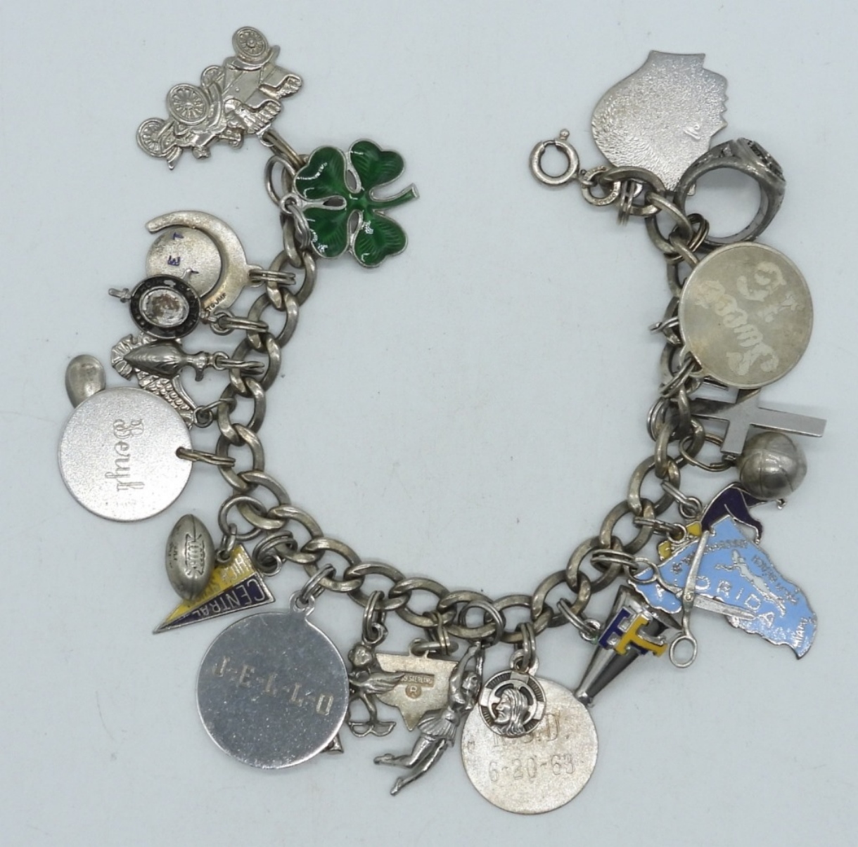 24 Charms – Not all are sterling. 7″ sterling charm bracelet.. (36.6 DWT)
