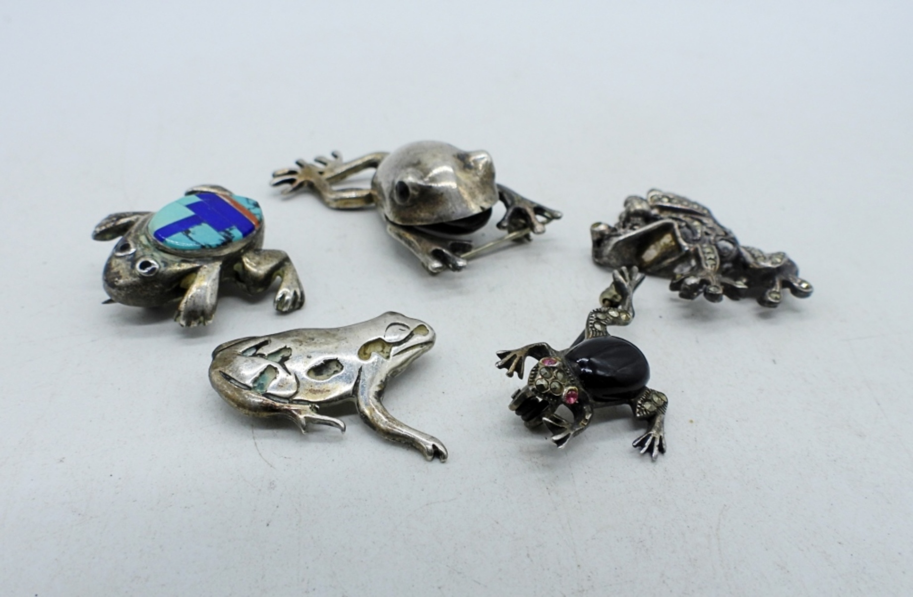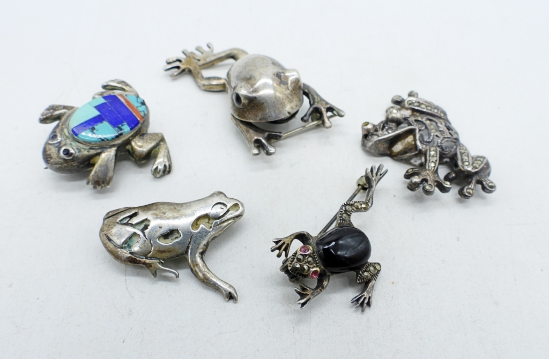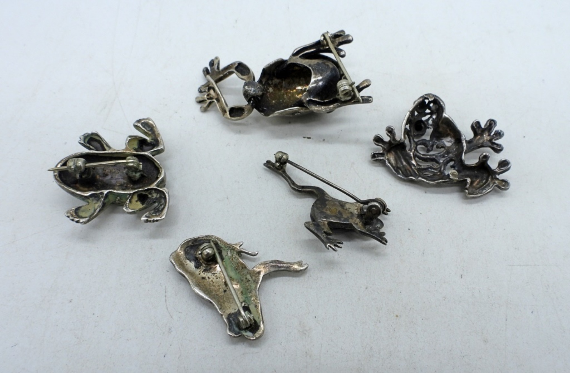 Five sterling frog pins. 1″ – 1.5″ (23.5 dwt)