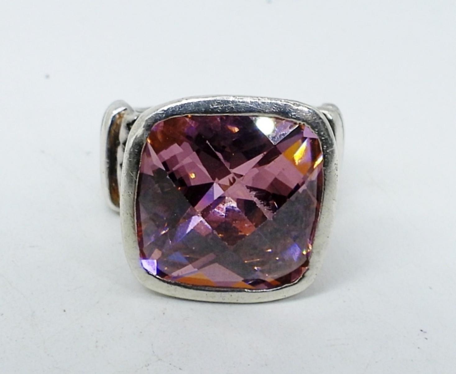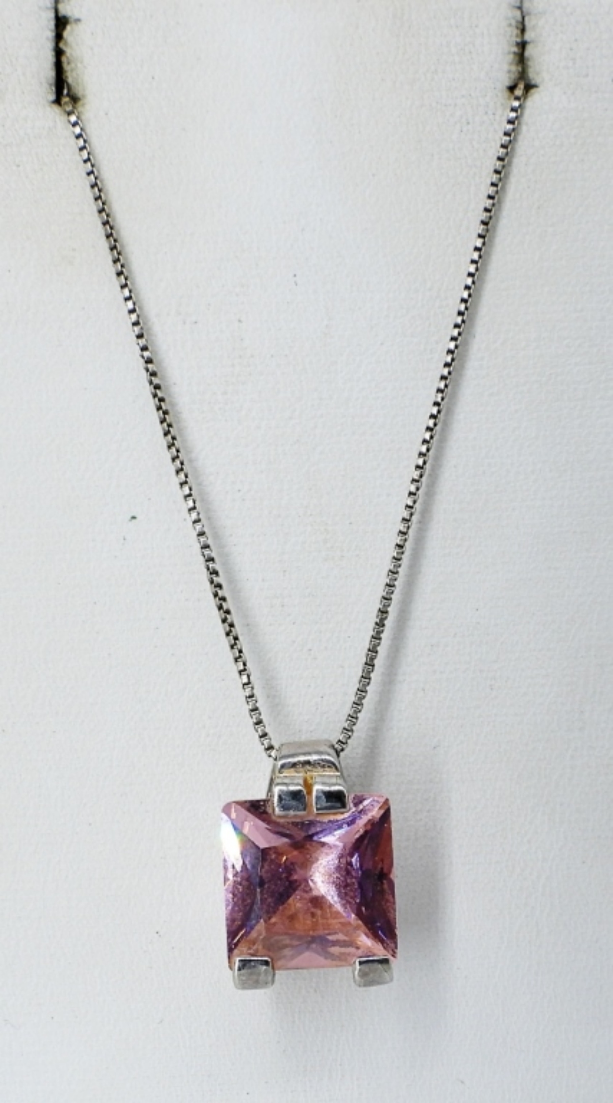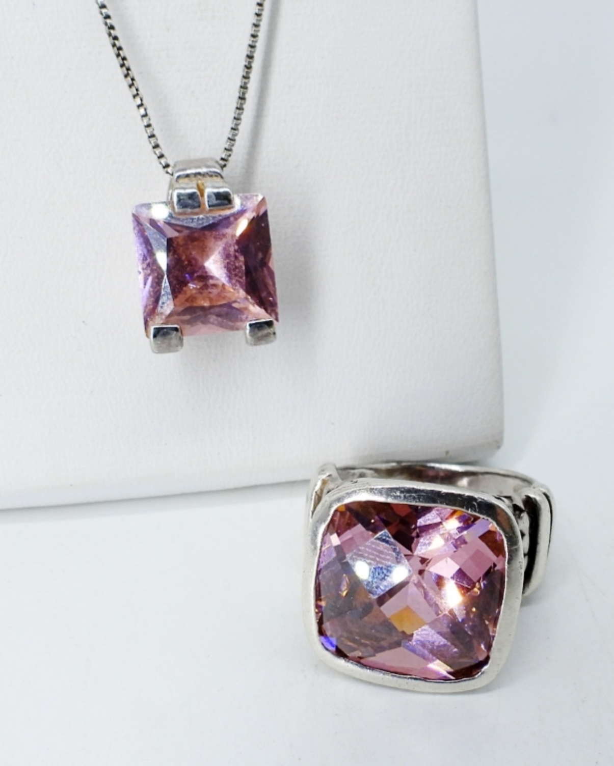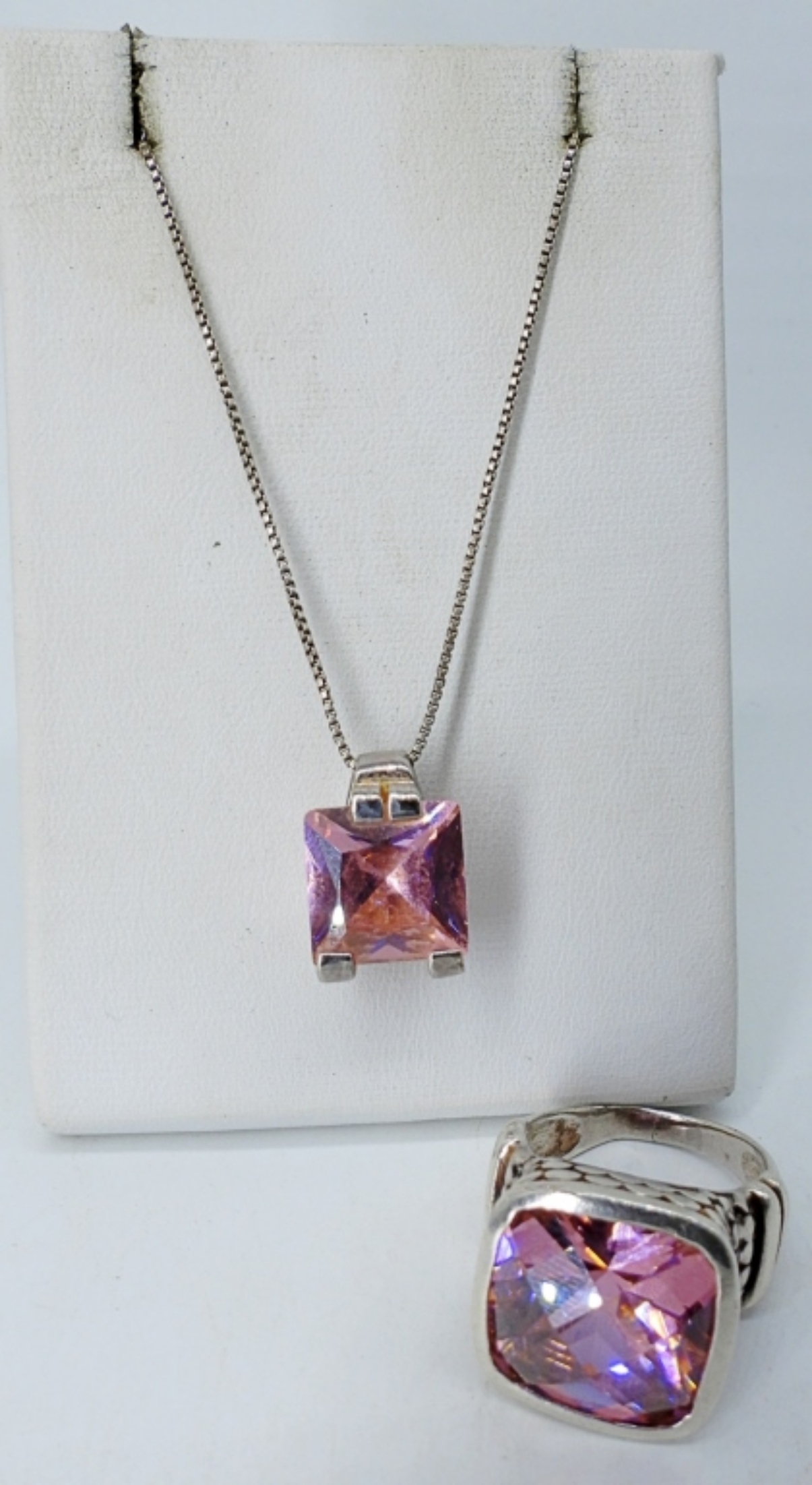 Pink CZ Sterling ring, Size 7. Pink CZ pendant on a 18″ sterling chain. (13 dwt)