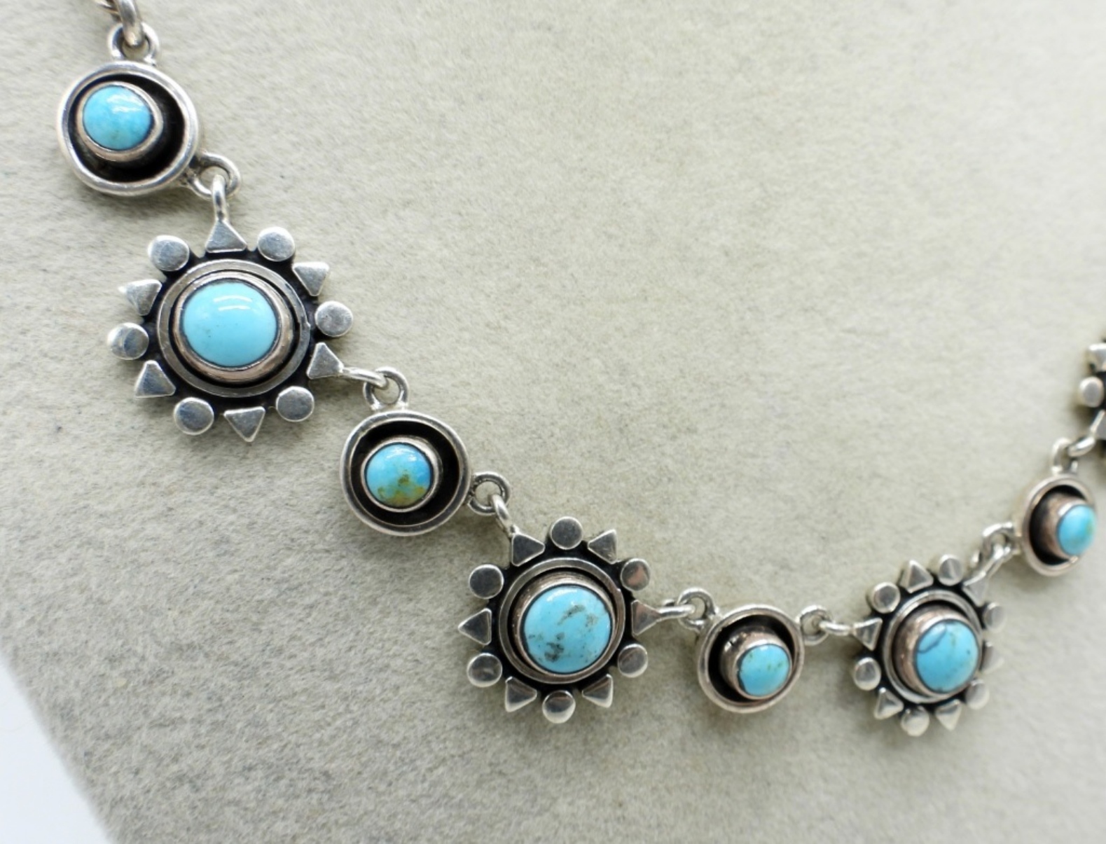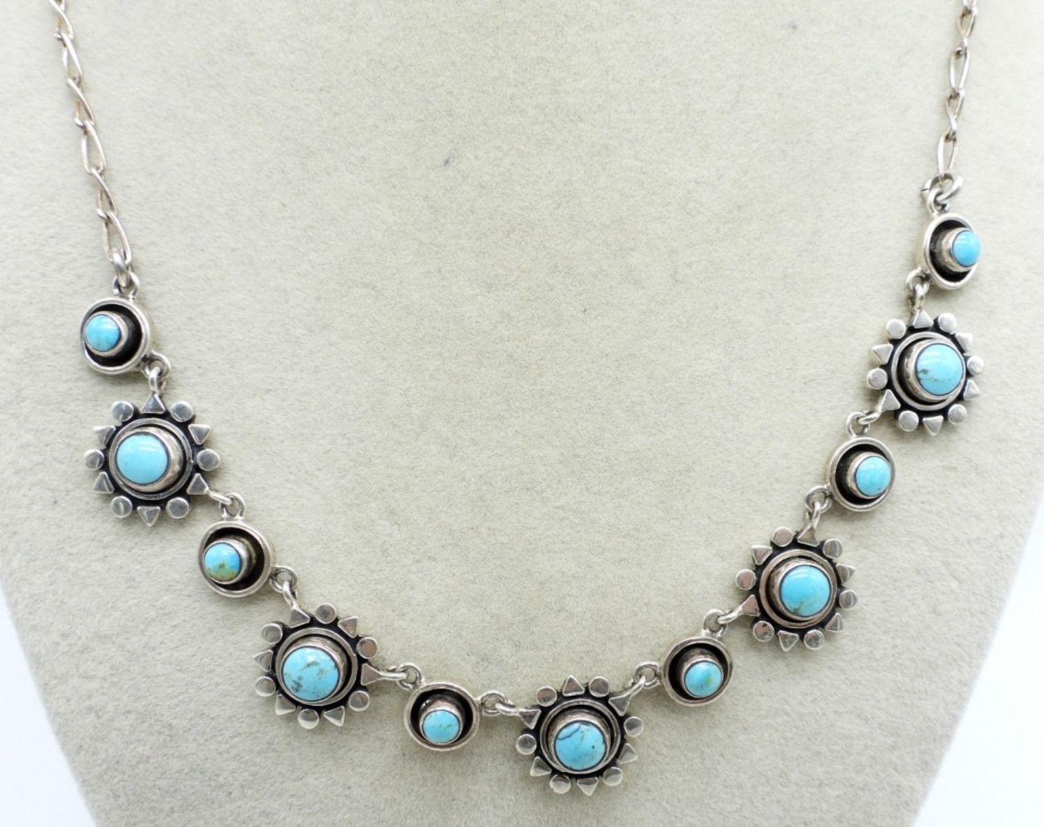 20″ sterling necklace with turquoise gemstones. Marked 925. (13.5 dwt)