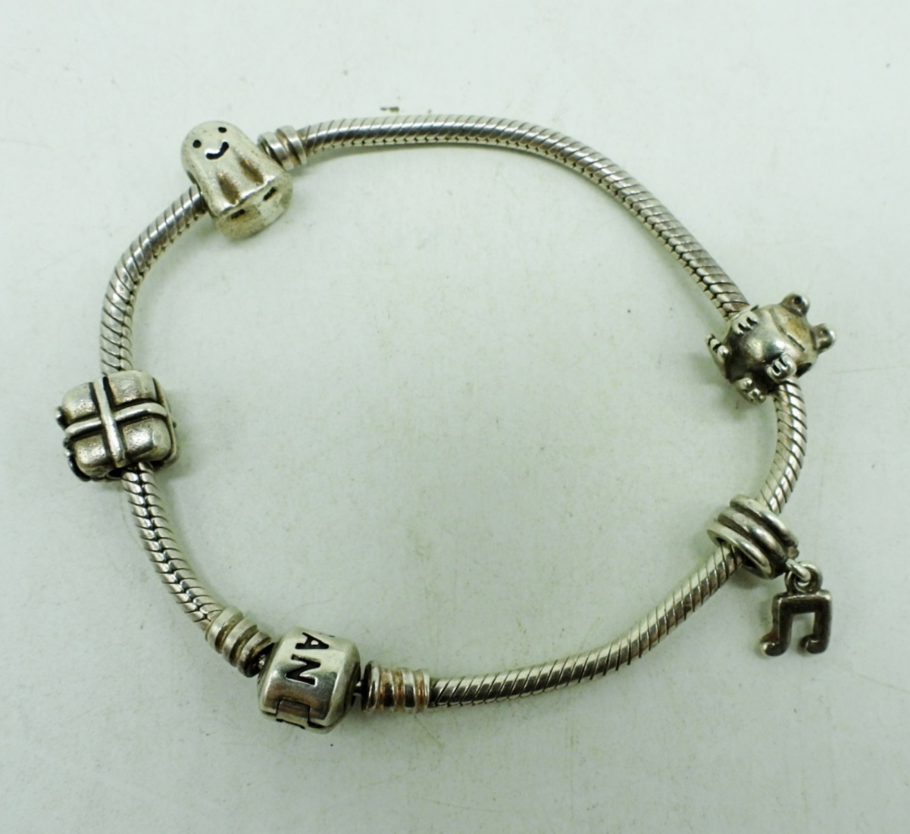 7.5″ Pandora Charm Bracelet with 4 Sterling Charms. (17.4 dwt)