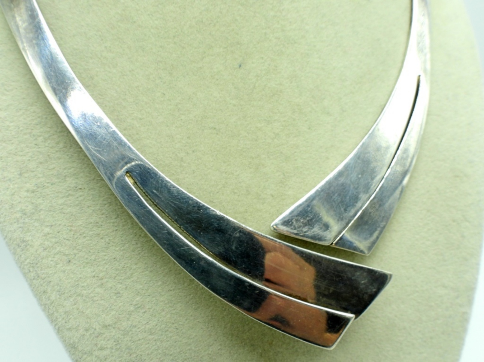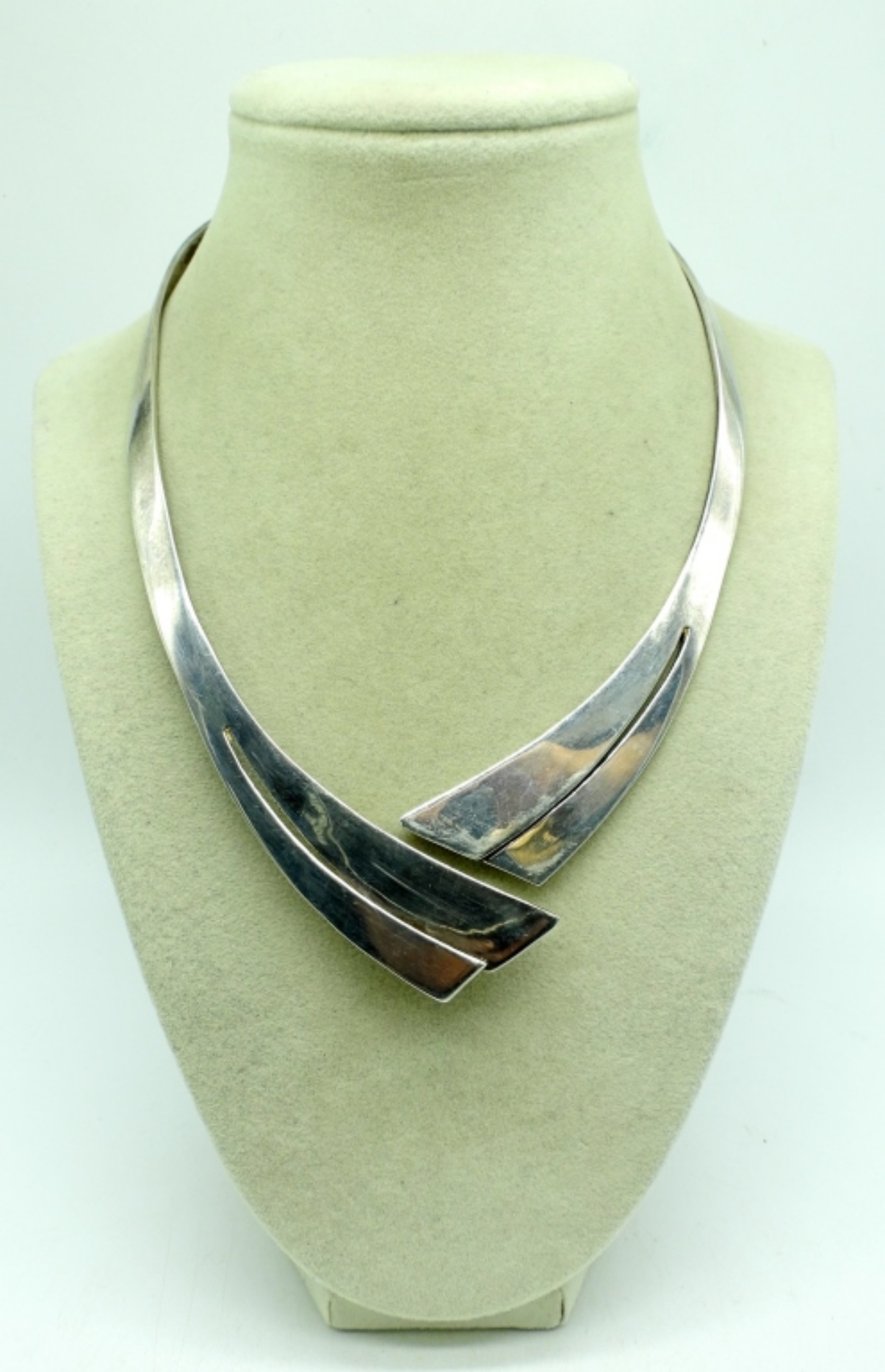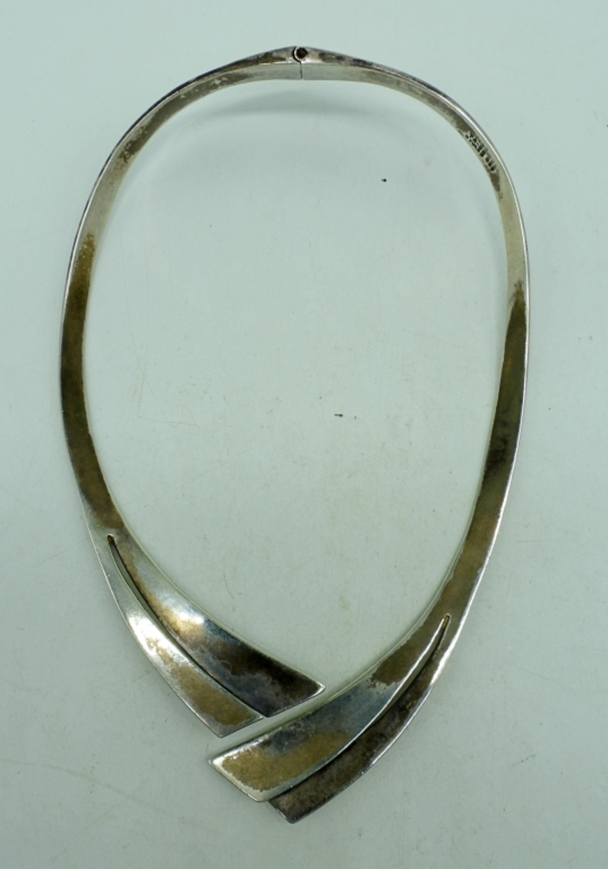 Taxco sterling collar hinged necklace. Marked “TA-98 Mexico 925”. Tarnished, needs a good cleaning. (54.8 dwt)