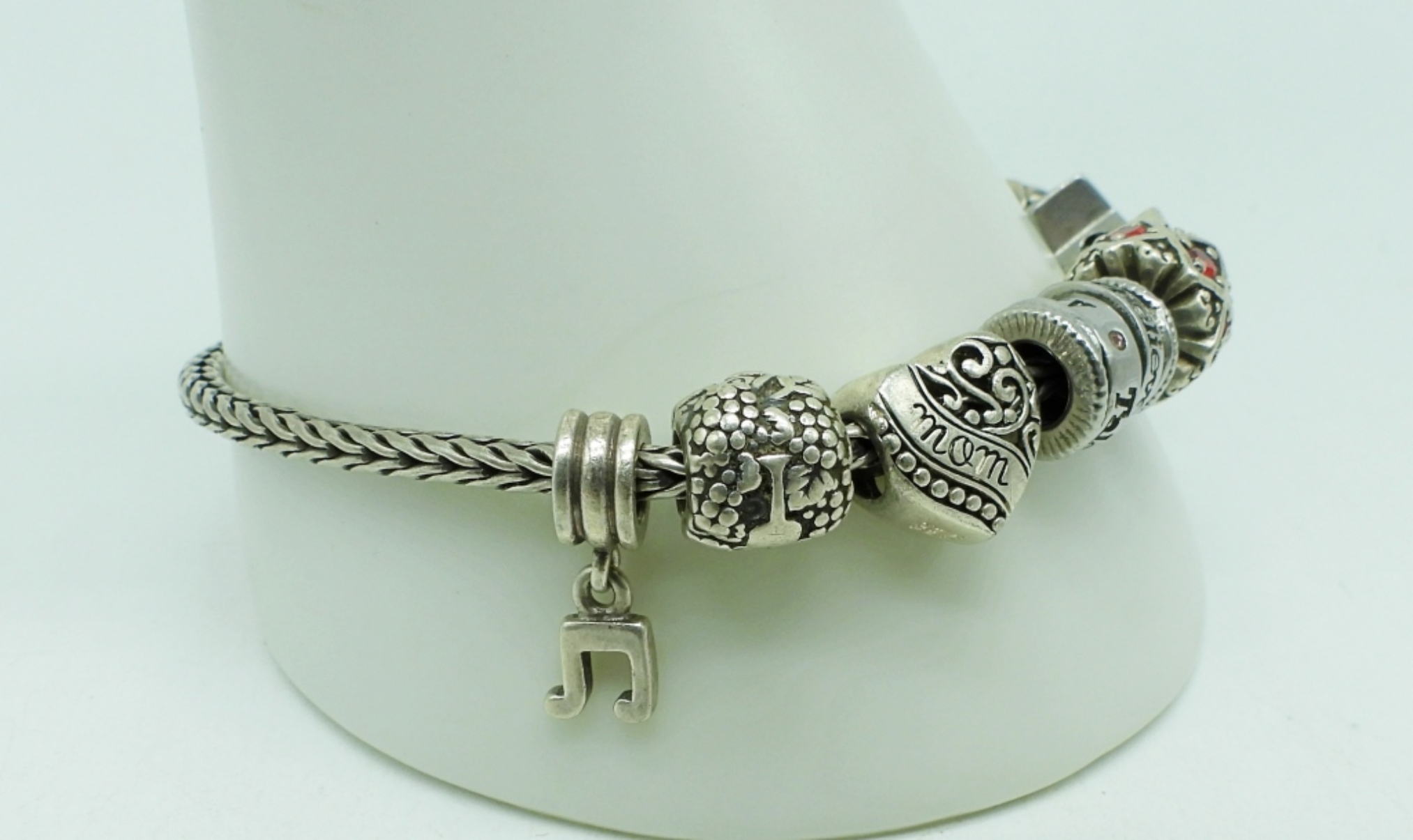 Sterling Troll Bead Charm Bracelet, 8″. 10 Sterling Charms (unknown makers). (27.2 dwt)