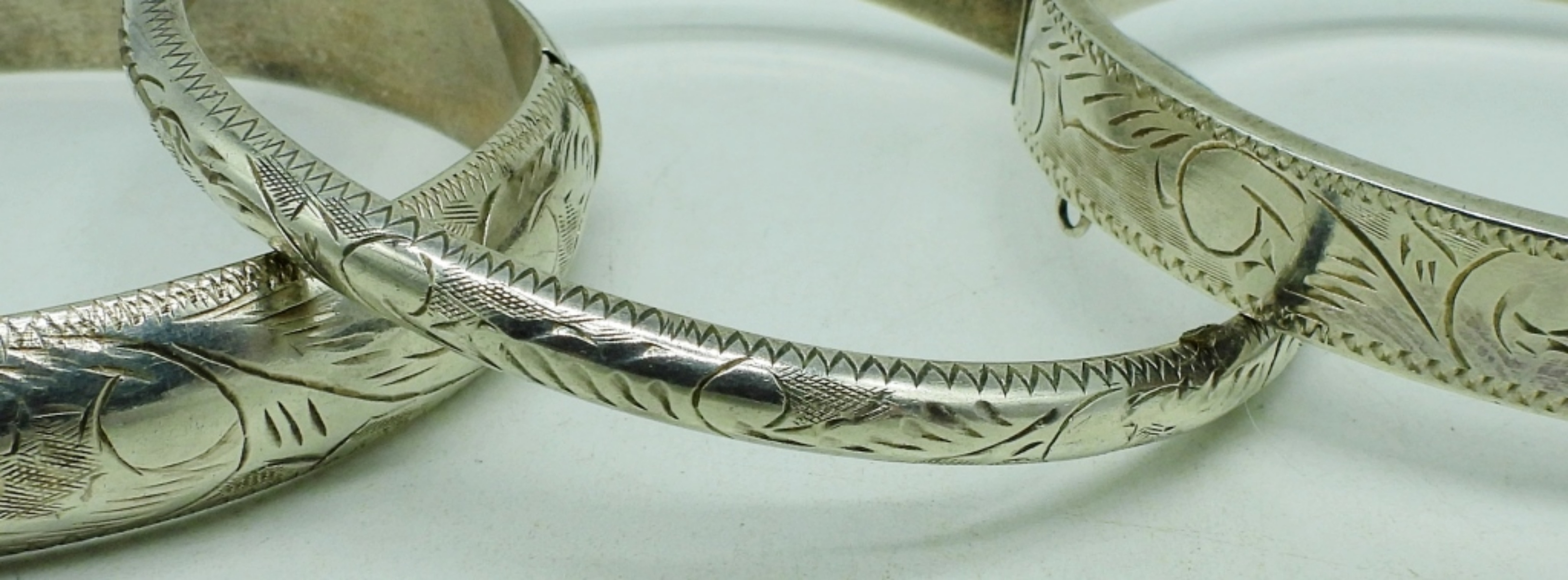 Three sterling hinged bangle bracelets, 7-8″. (23.3 dwt)