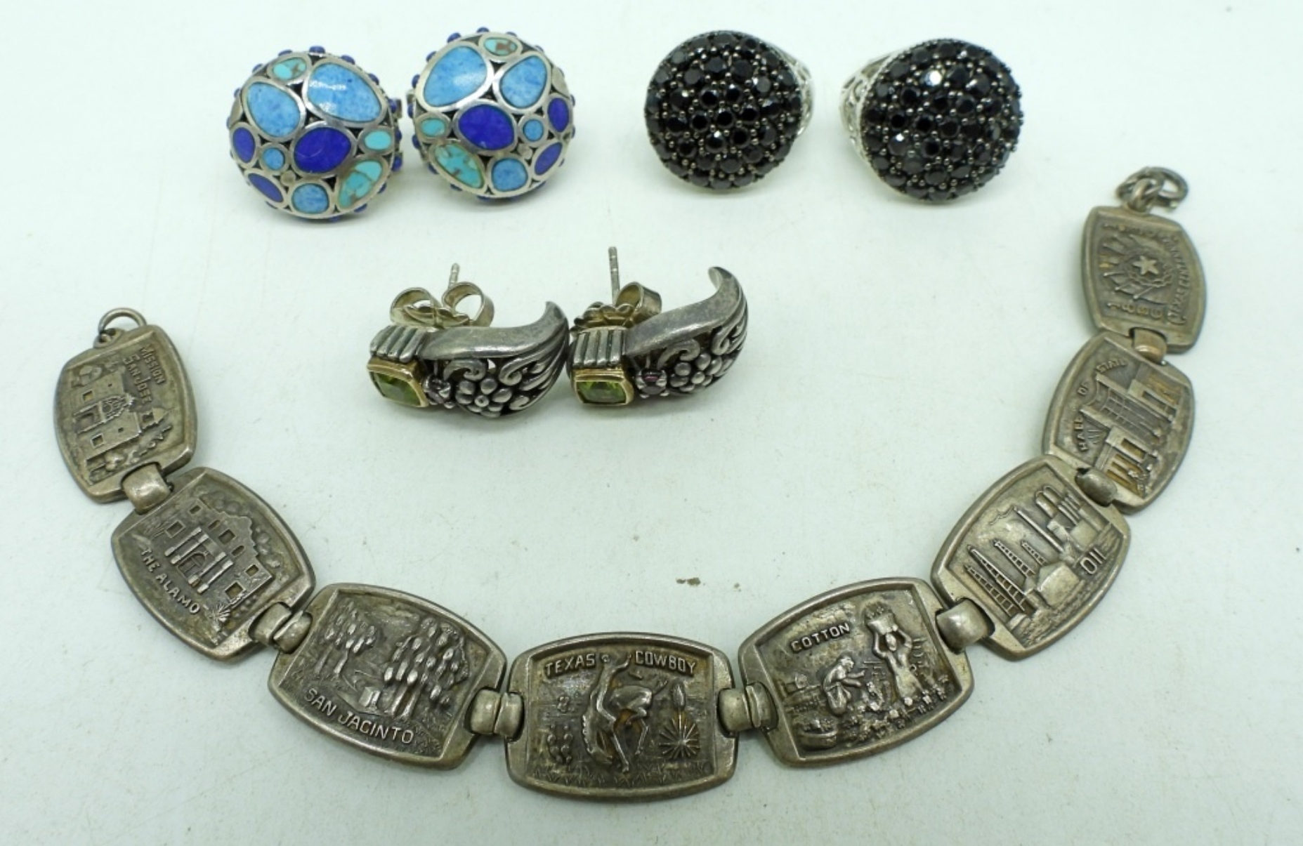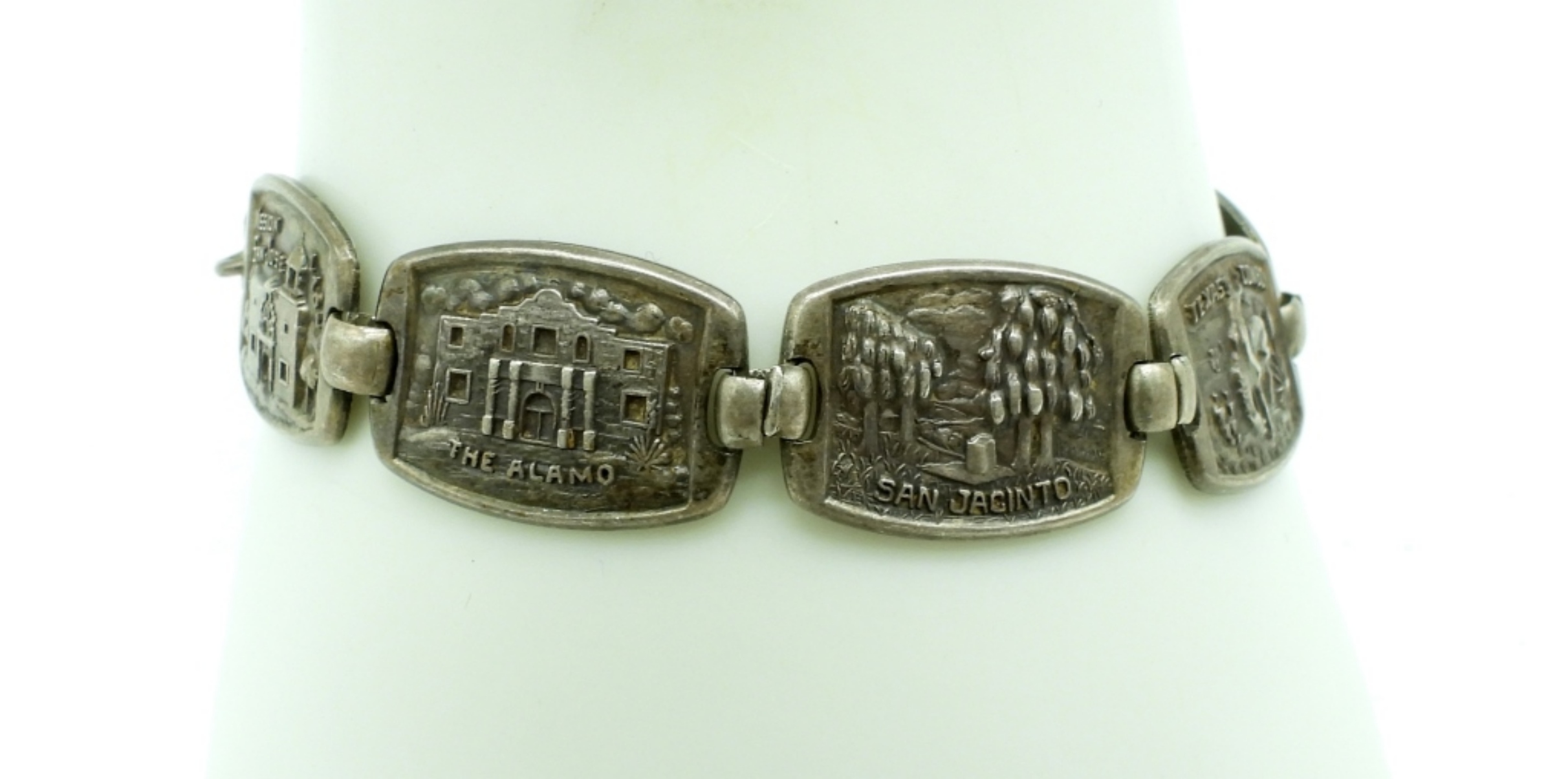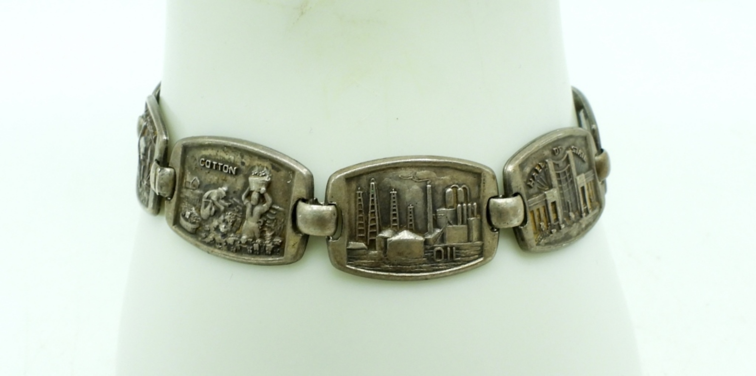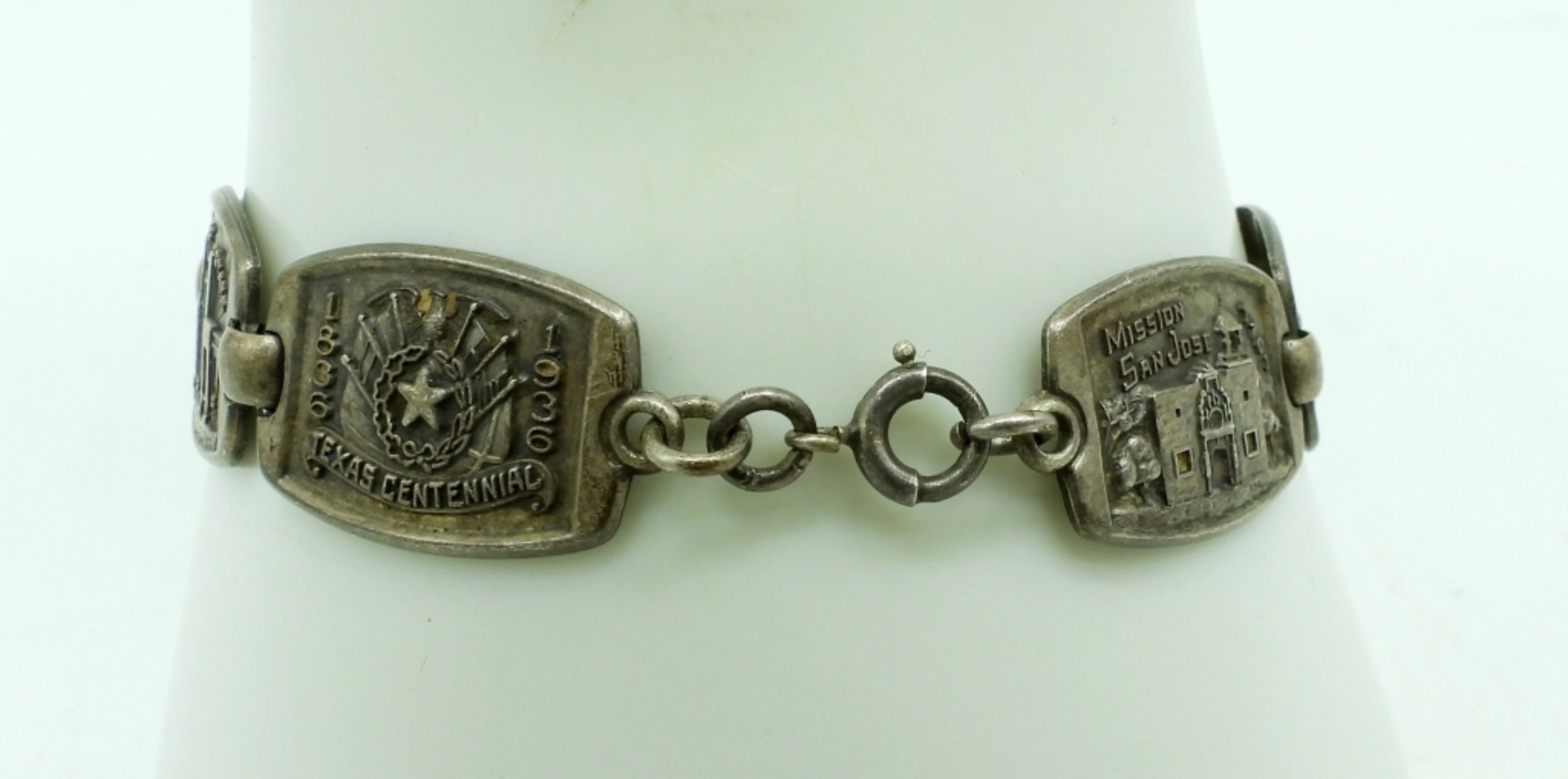 1936 Texas Centennial bracelet & Four pair of pierced earrings. Bracelet is 7″. (29.4 dwt)