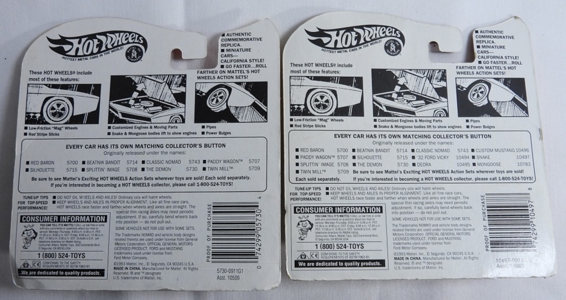 Two 1993 Mattel Hot Wheels, Authentic Commemorative Replicas. Red Line Series. New In Box. Snake & The Demon.