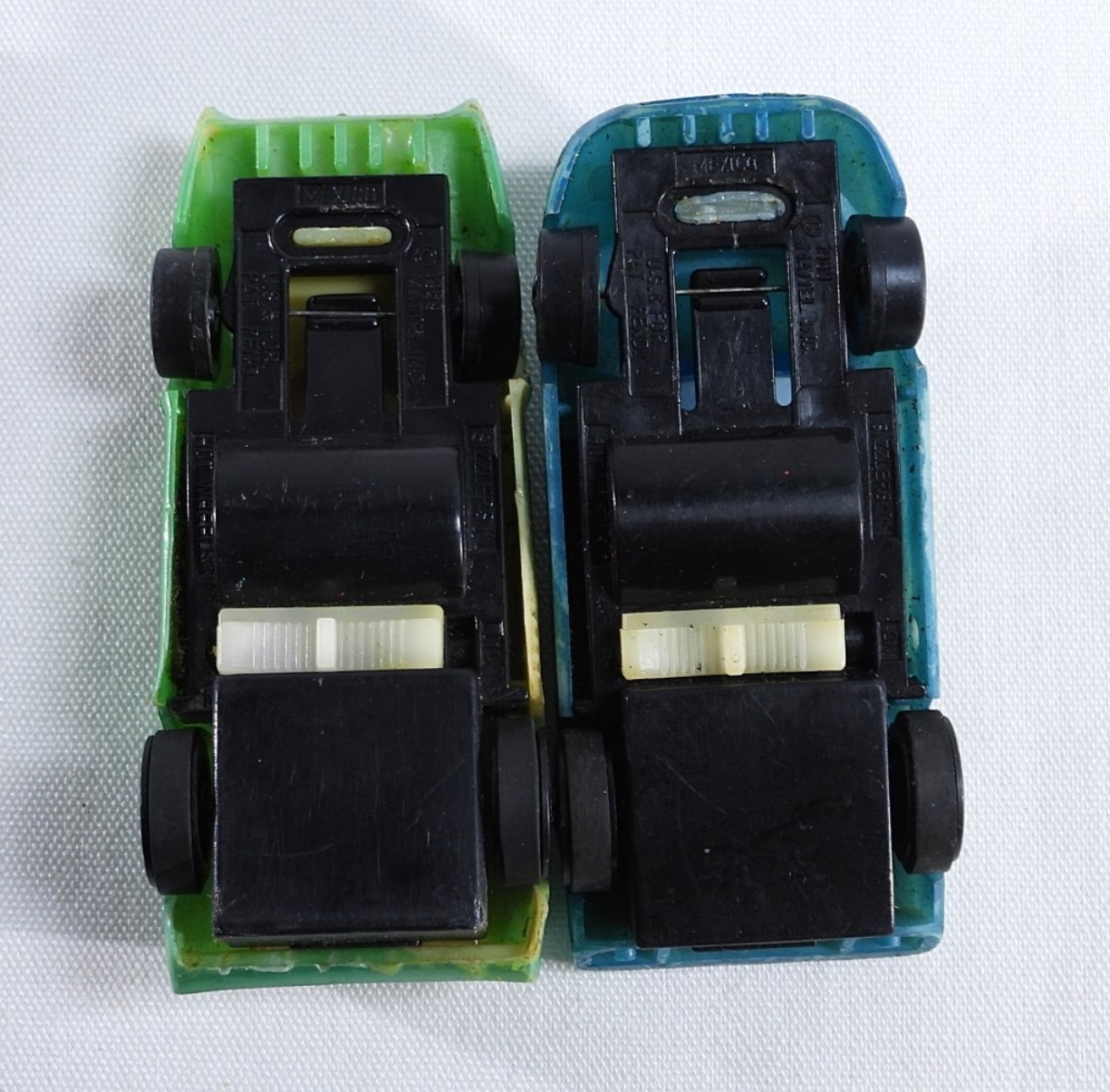 Two 1969 Mattel Sizzler Cars, stamped “Mexico”. Both are in very used condition.