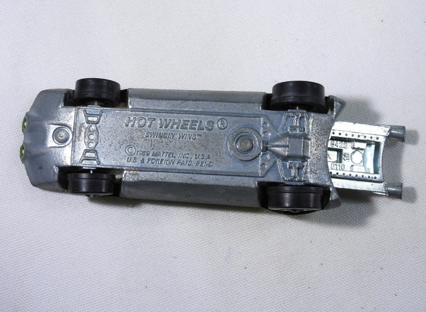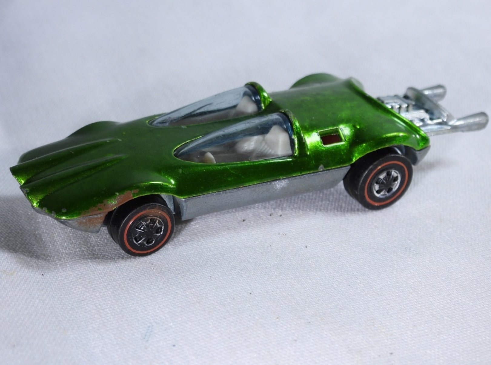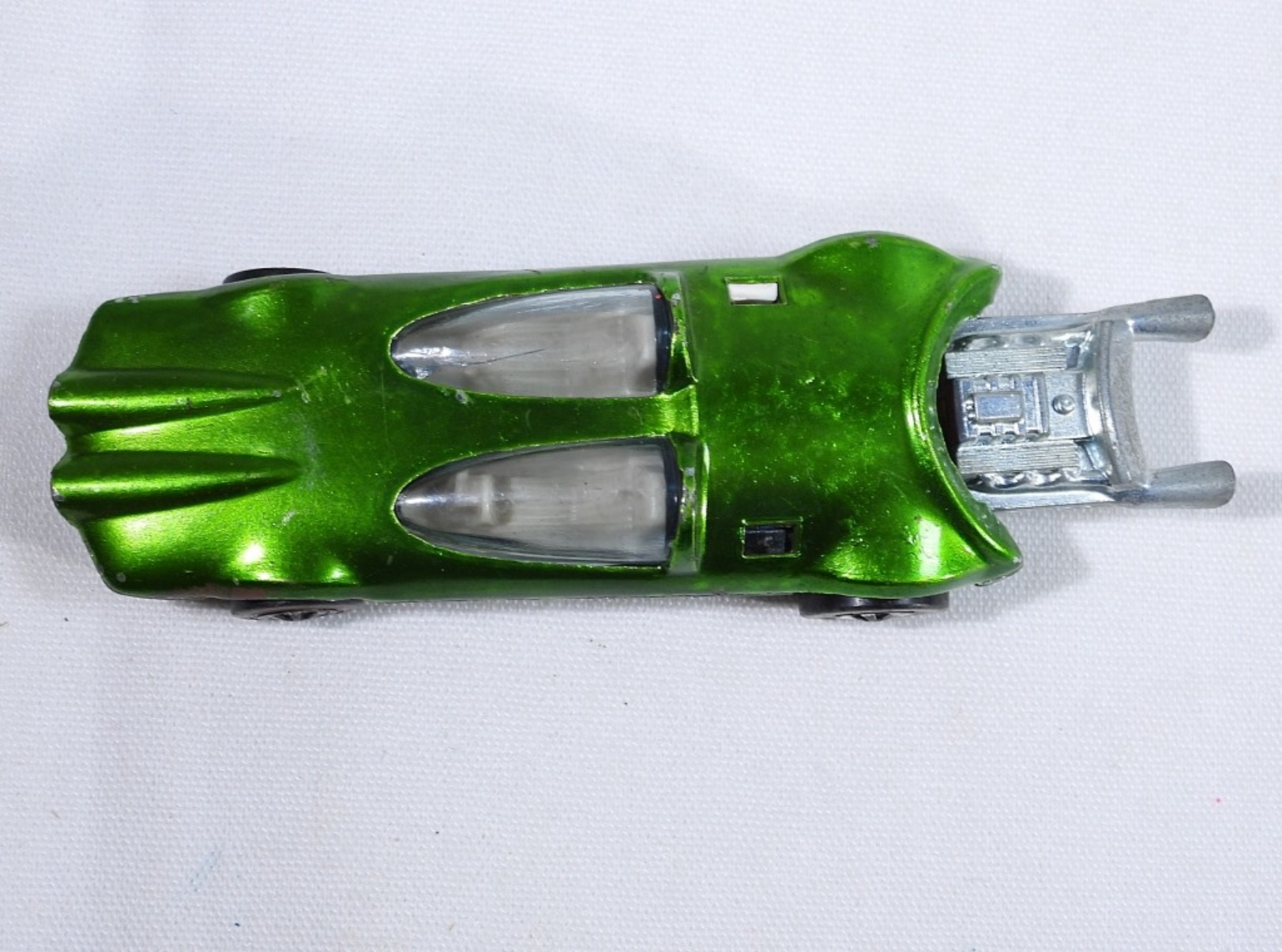 1969 Mattel Hot Wheels, Red Line. Swingin Wing car, missing the top piece. Bright Green.