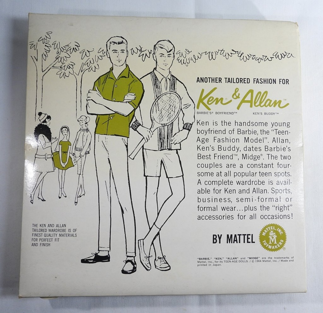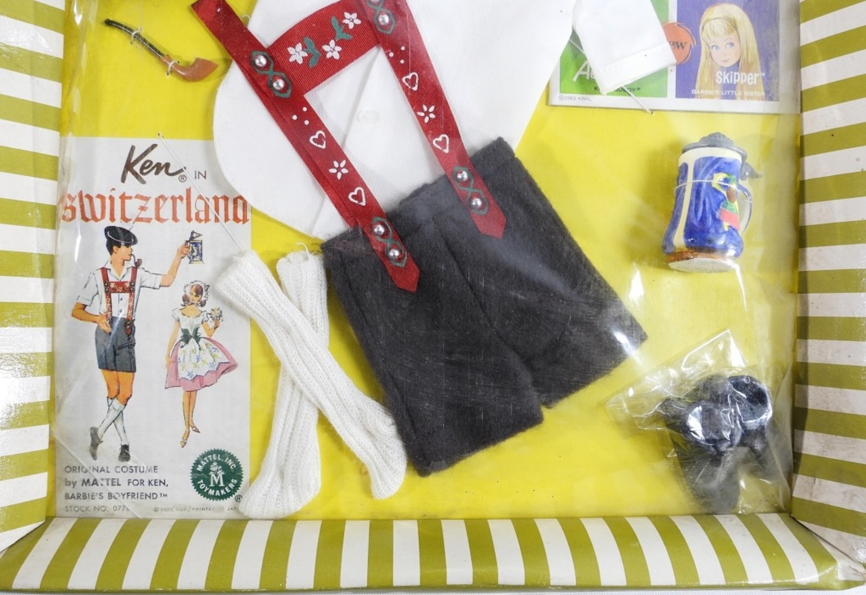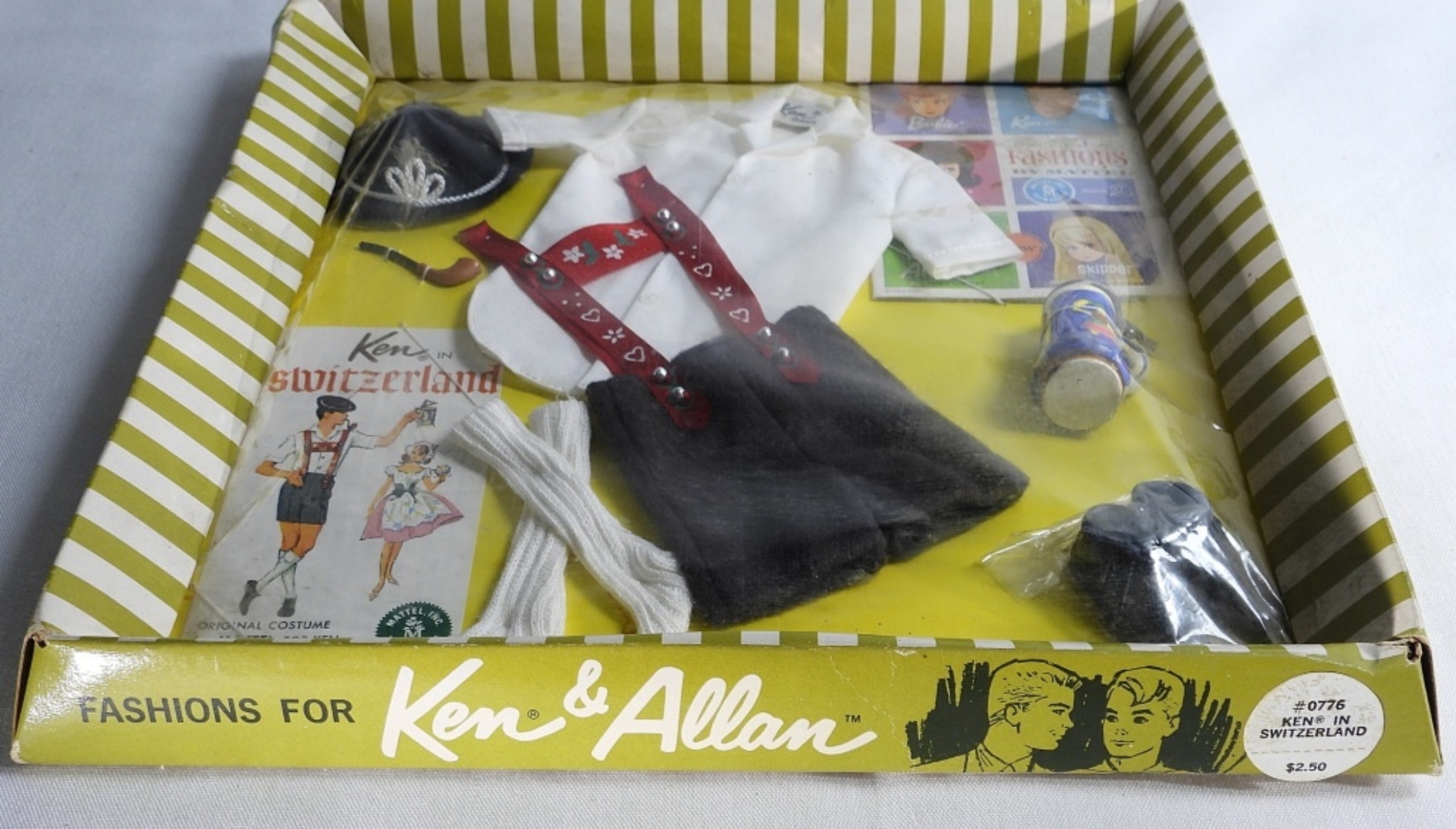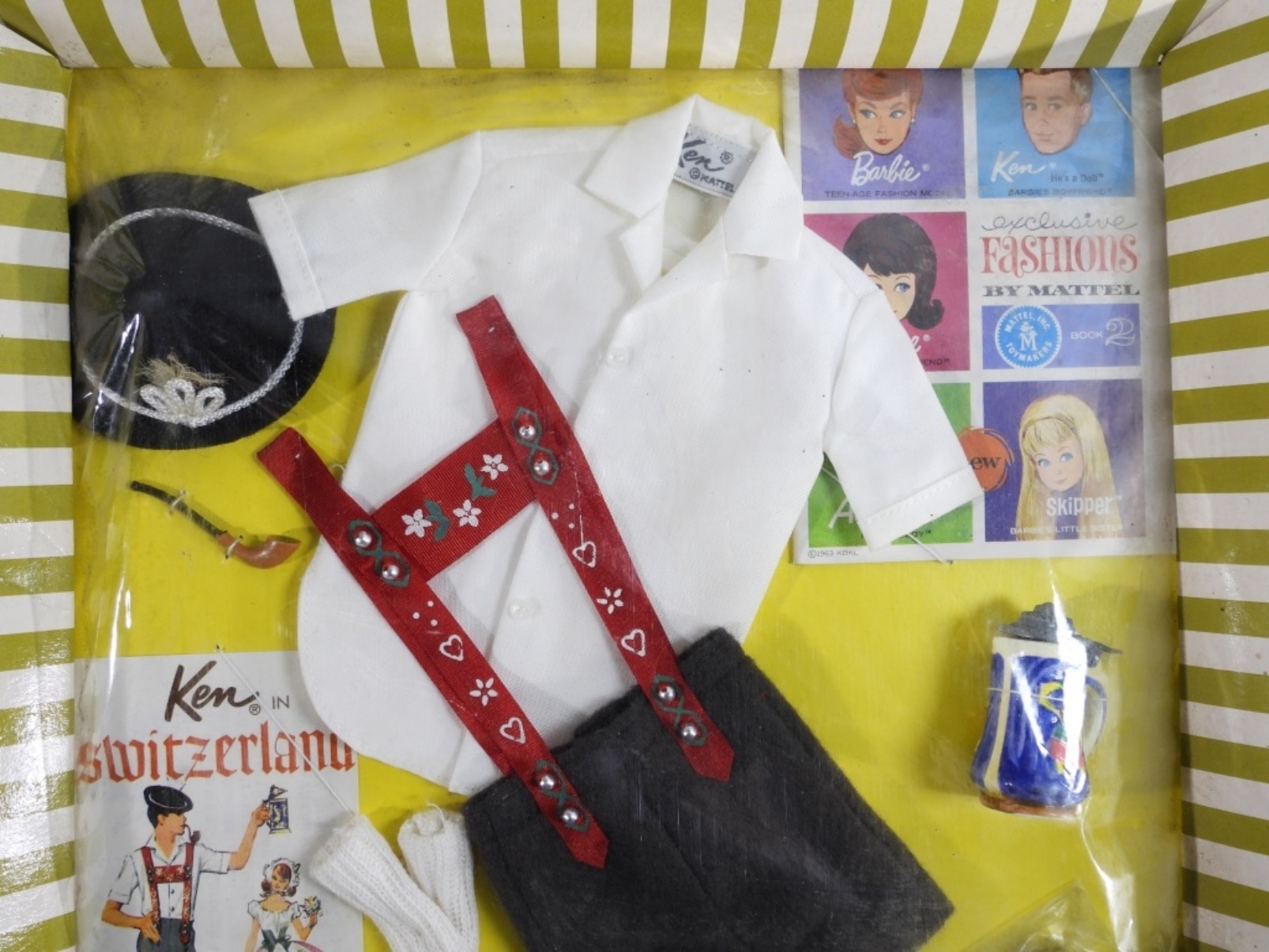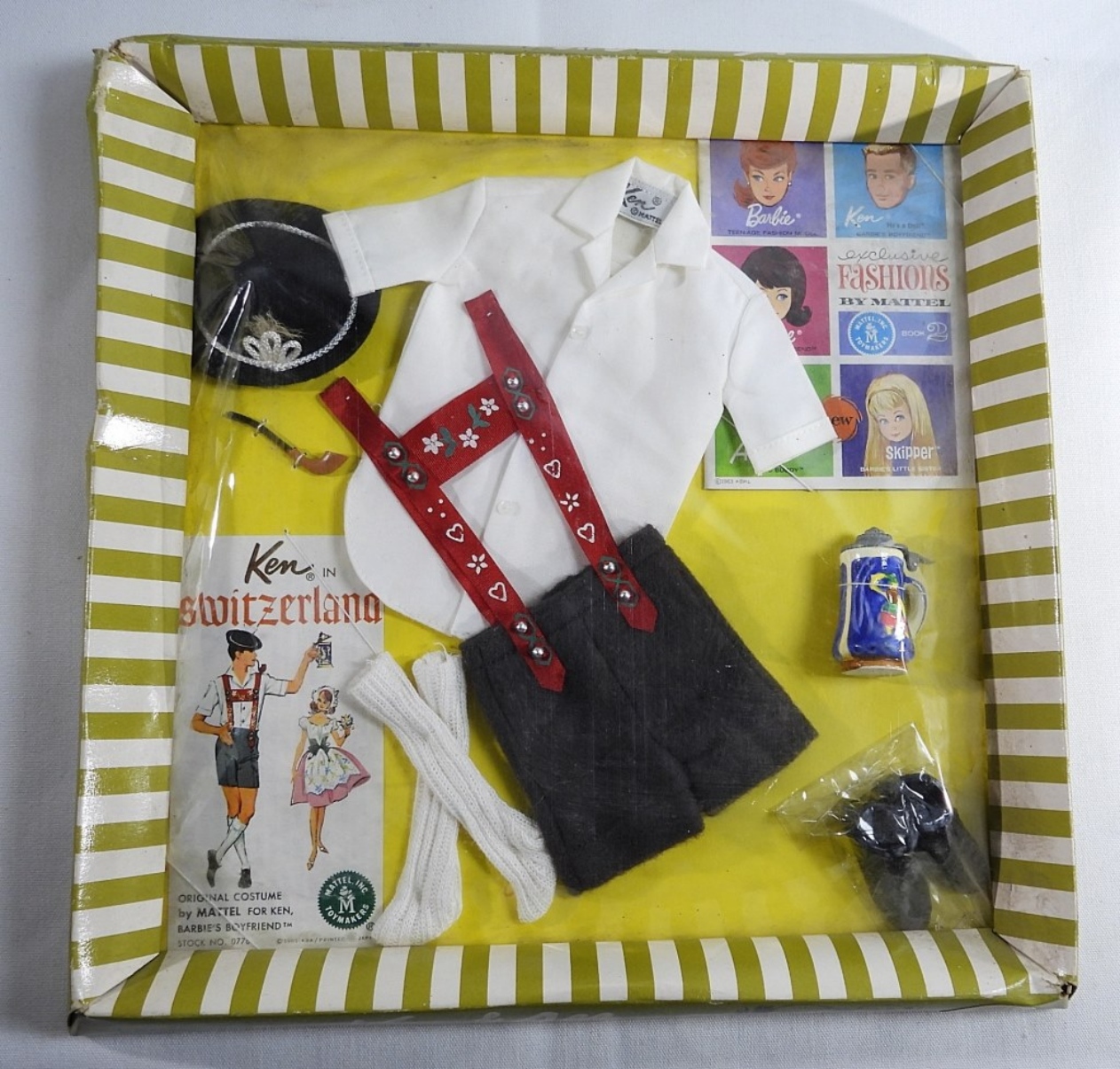 1964 Mattel, Fashions for Ken & Allan. Ken in Switzerland outfit NEW IN BOX! Plastic is intact, everything is included.