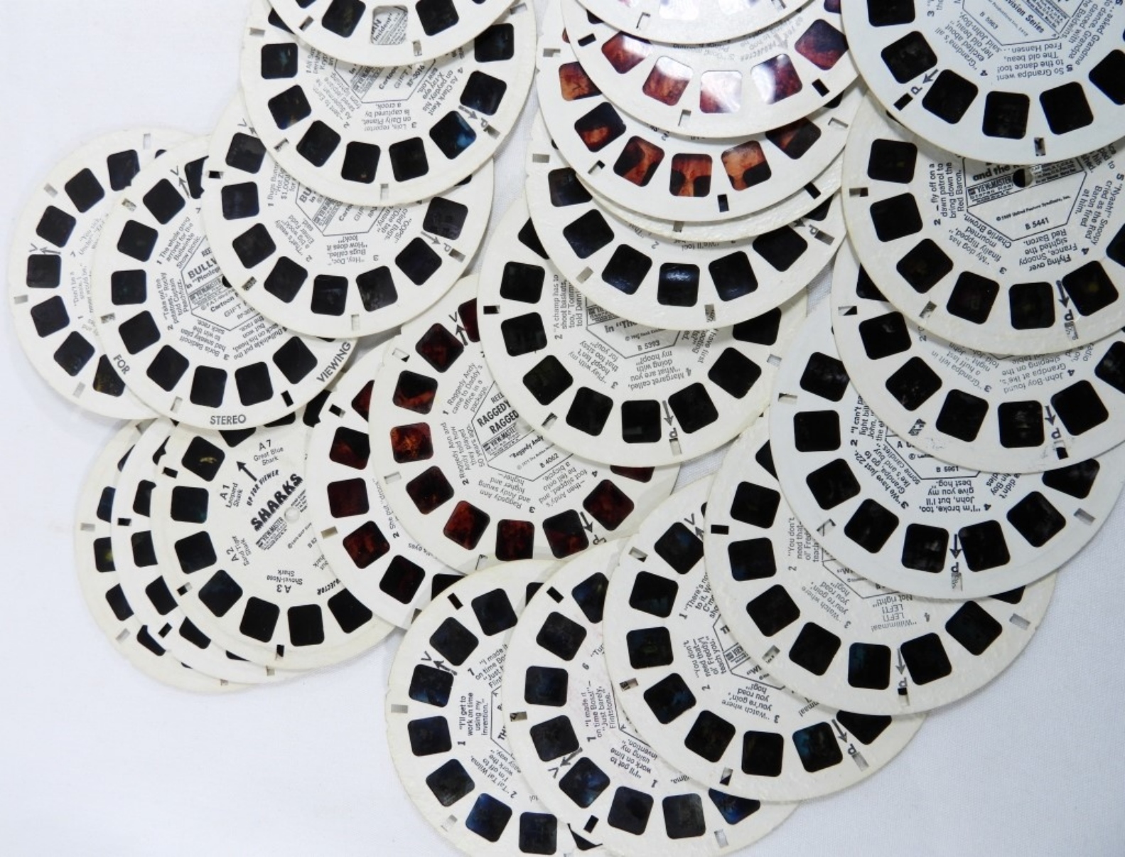 Still in working order. Emergency, The Waltons, Snoopy and The Red Baron, Meet Jim Henson Muppets, Winnie The Pooh and Tiger Too, Sharks all have 3 slides each. Other slides include BAMBI, The Hardy Boys,