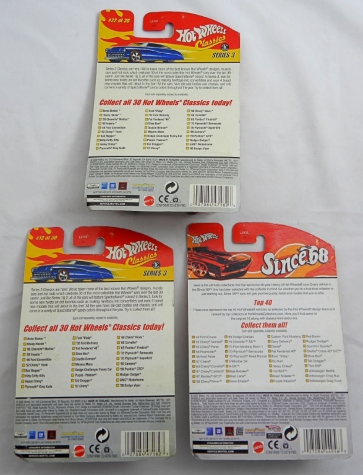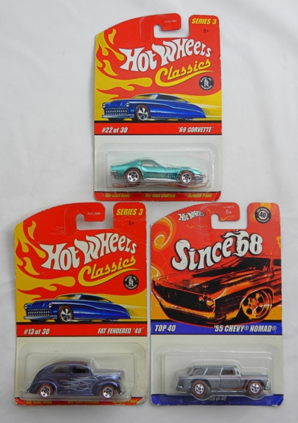 2006 &2007 Hot wheels – 69 CORVETTE, ’40 Fat Fendered & ’55 Chevy Nomad