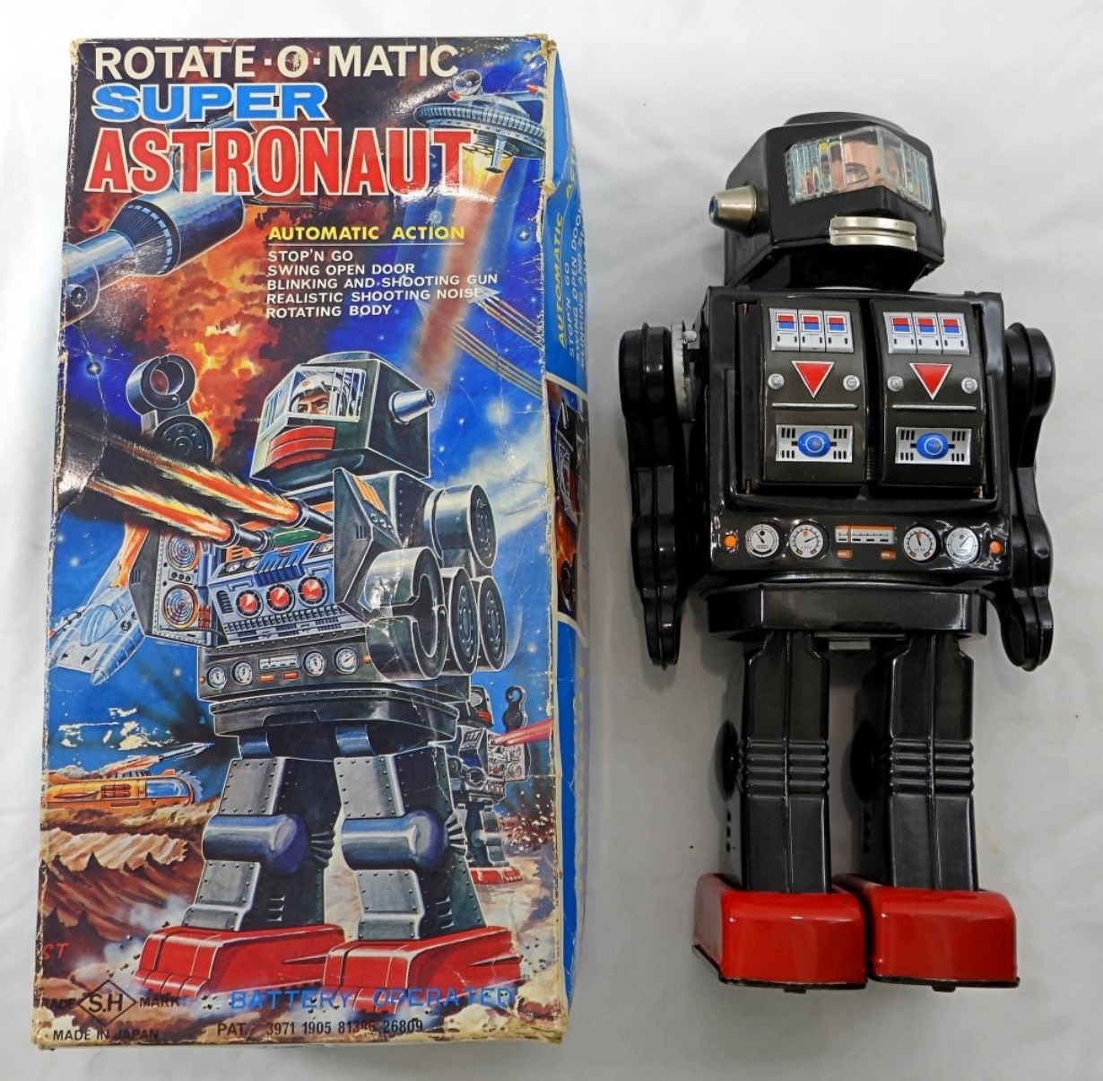 ROTATE-O-MATIC SUPER ASTRONAUT, COMES IN ORIGINAL BOX, UNTESTED WE DO NOT KNOW IF THIS TOY WORKS OR WILL STAY WORKING