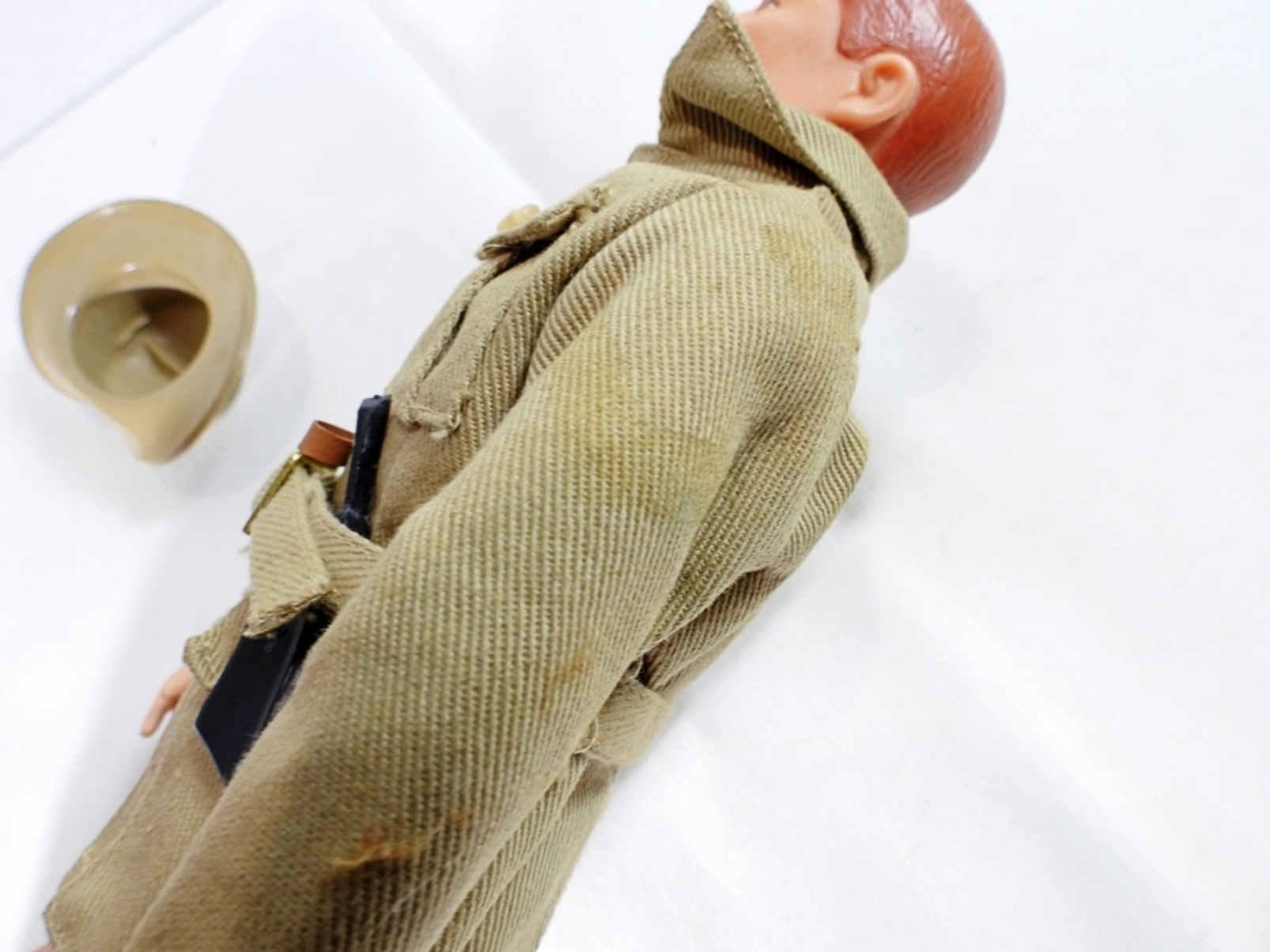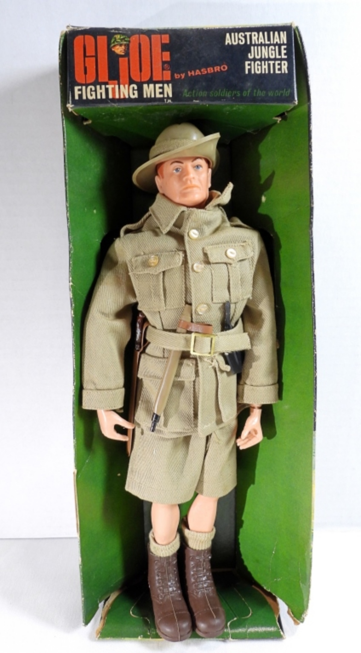 1966 G.I. Joe fighting men “Australian Jungle Fighter” by Hasbro. Comes with some accessories (has red hair, no scar). Patches from the jacket are one. Doll in great shape. The box is broken. In fair condition