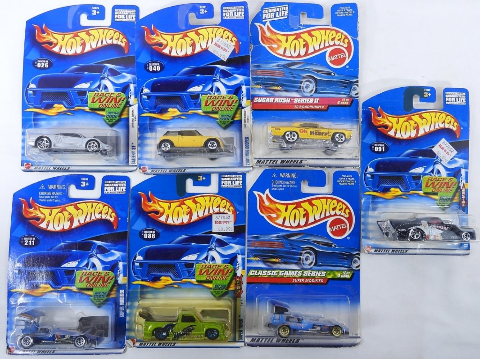 Seven Hot Wheels Cars, New In Box. 1998 & 2001.