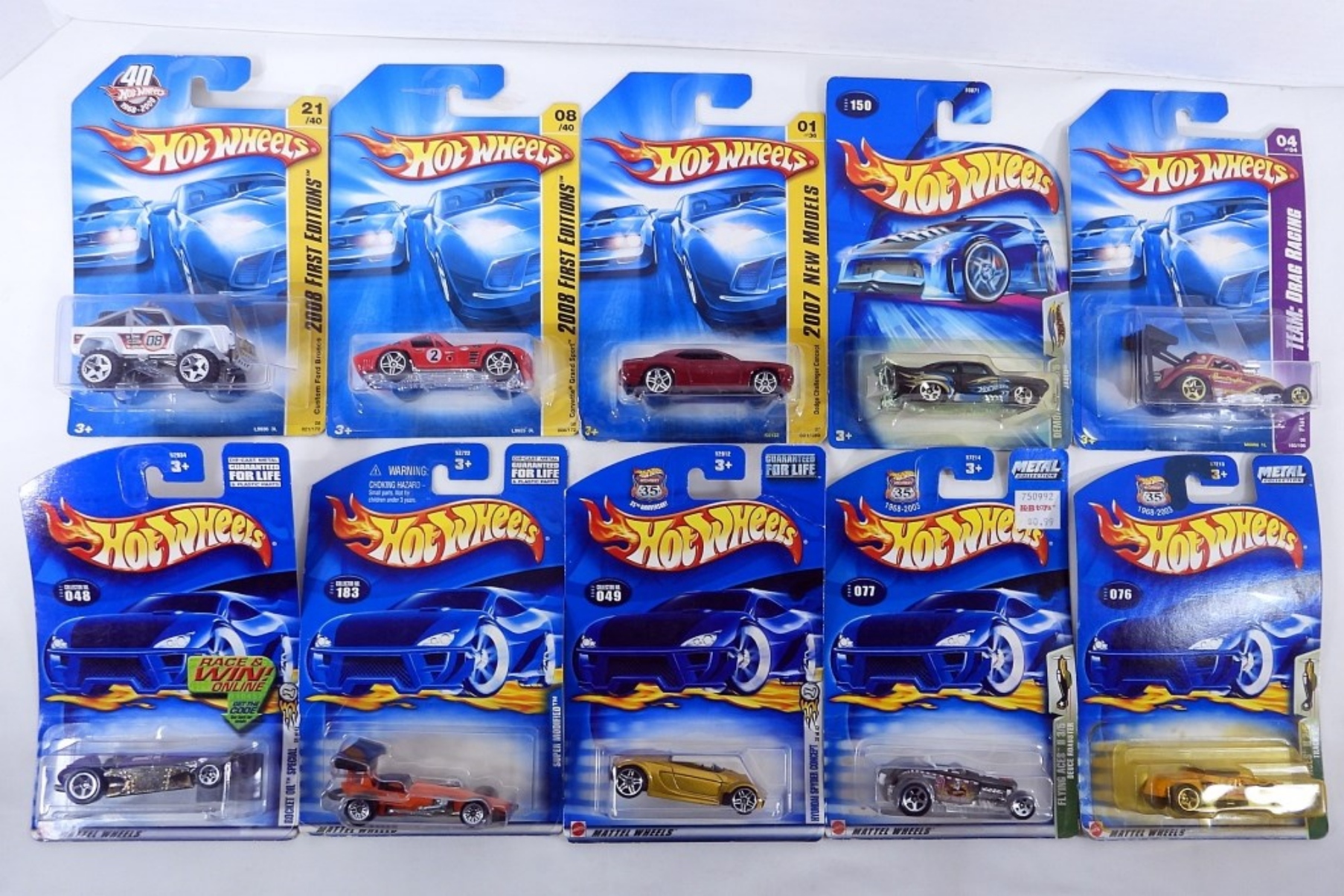 Ten Hot Wheels, New In Box. Years vary from 2000-2007. See Photos