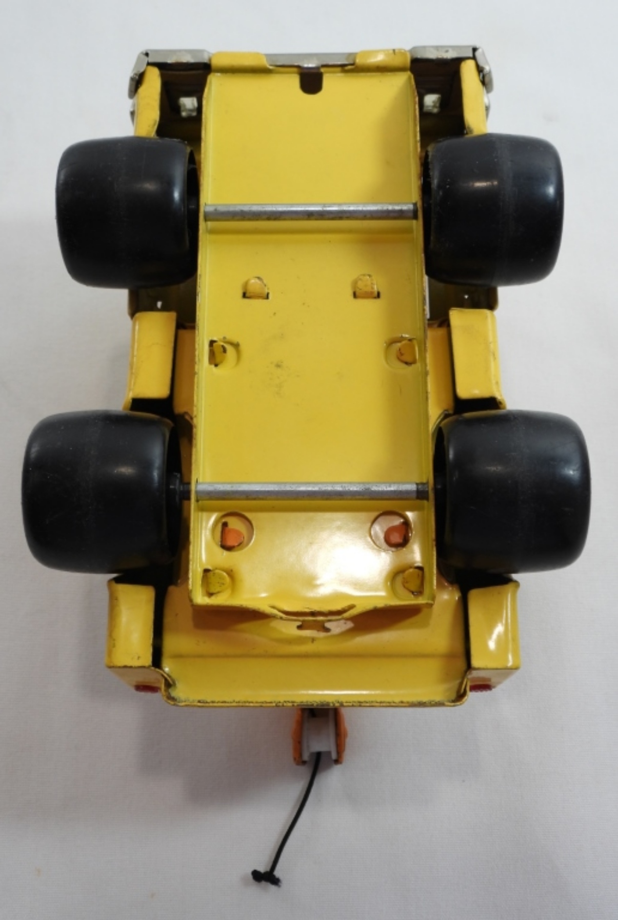 About 6 inches long. Top of the hood is missing lights. In fair to good condition, preowned.