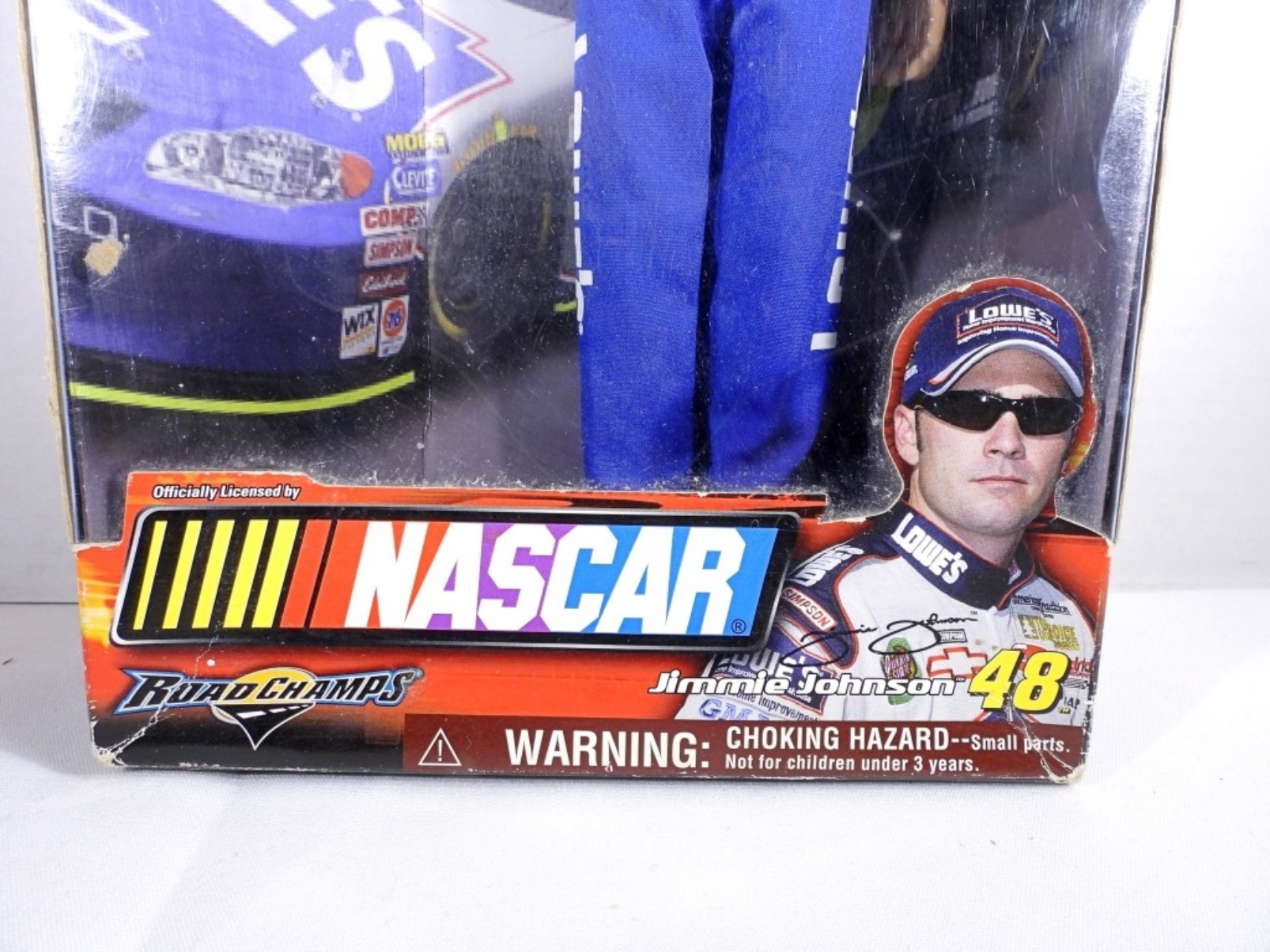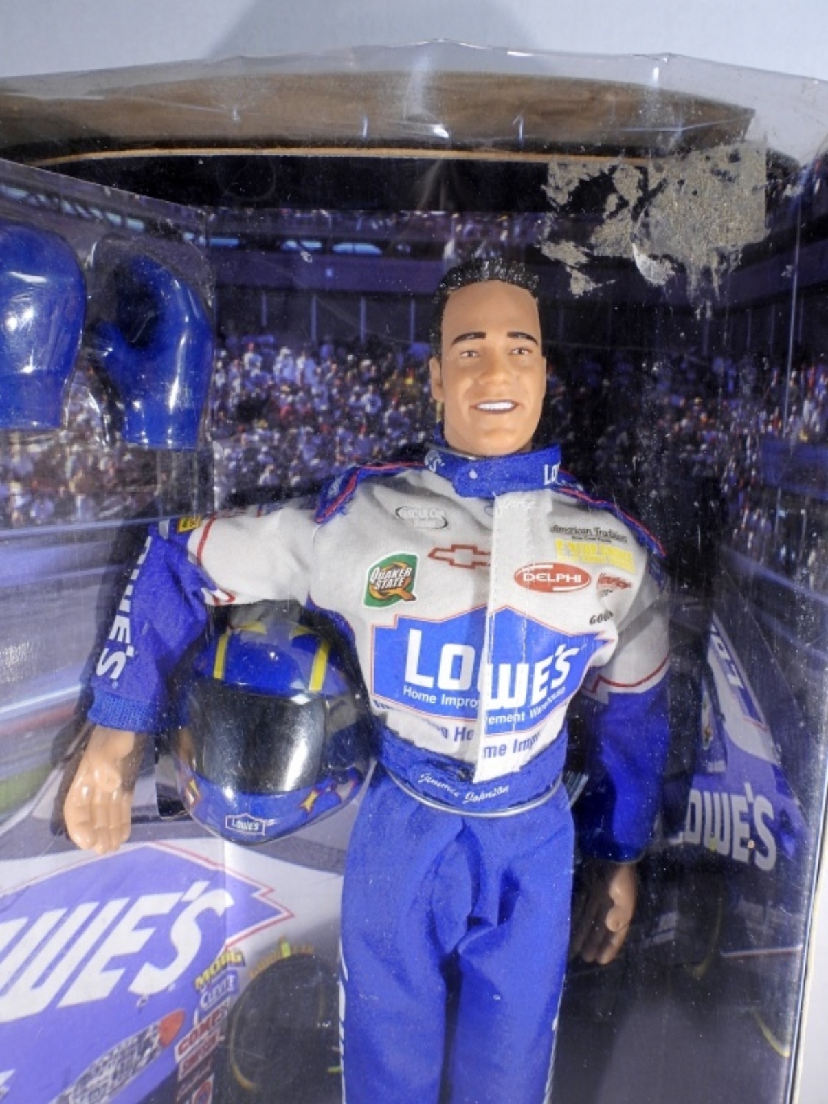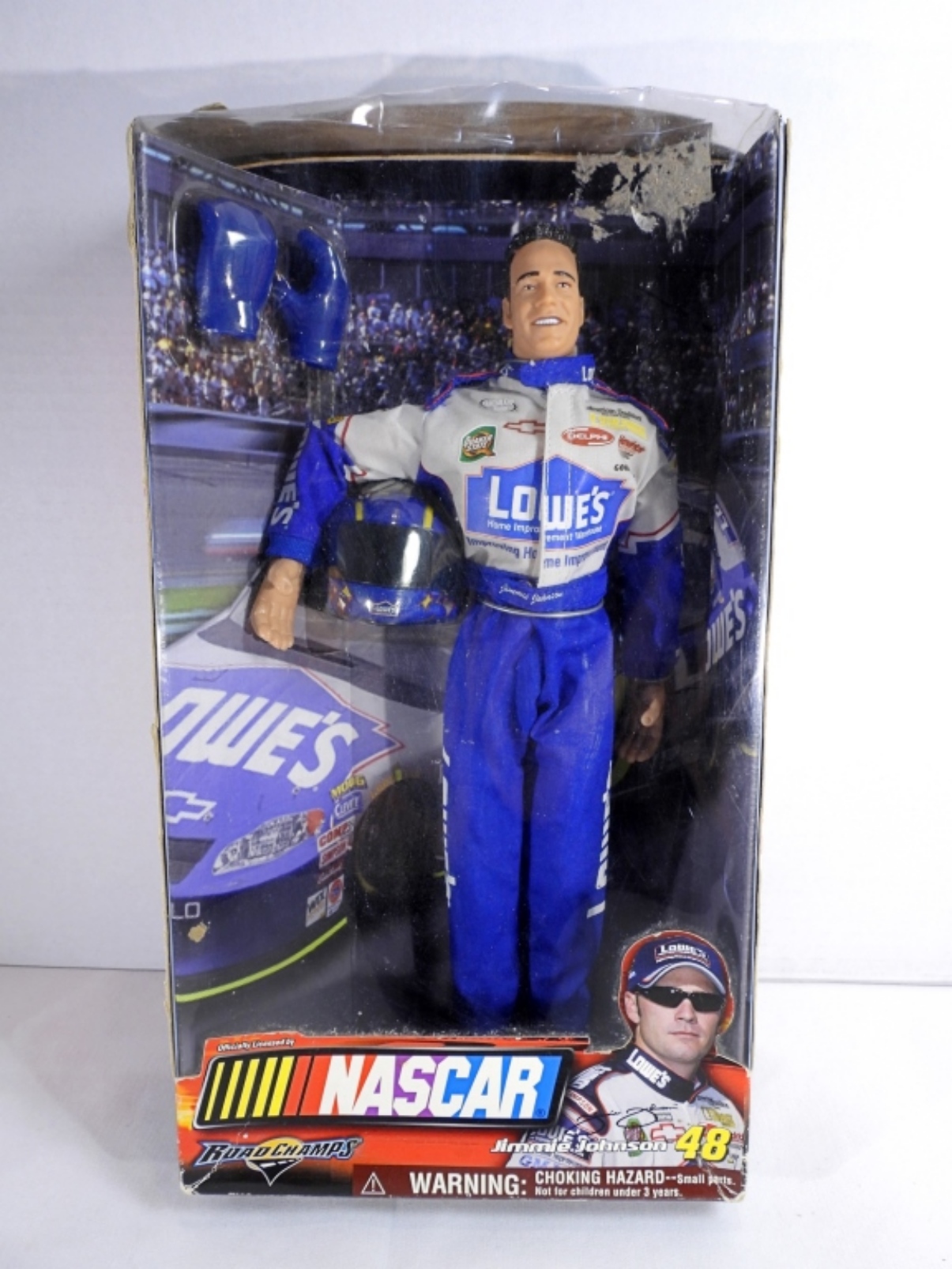 2003 NASCAR Jimmie Johnson figurine in fair condition has some dings and normal wear from the years. Preowned.