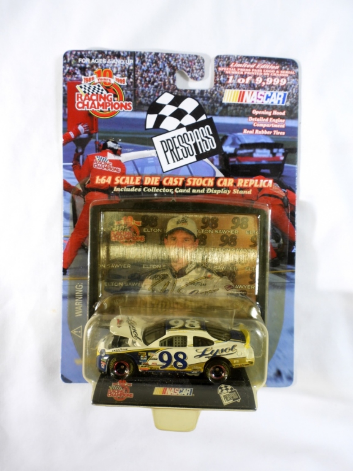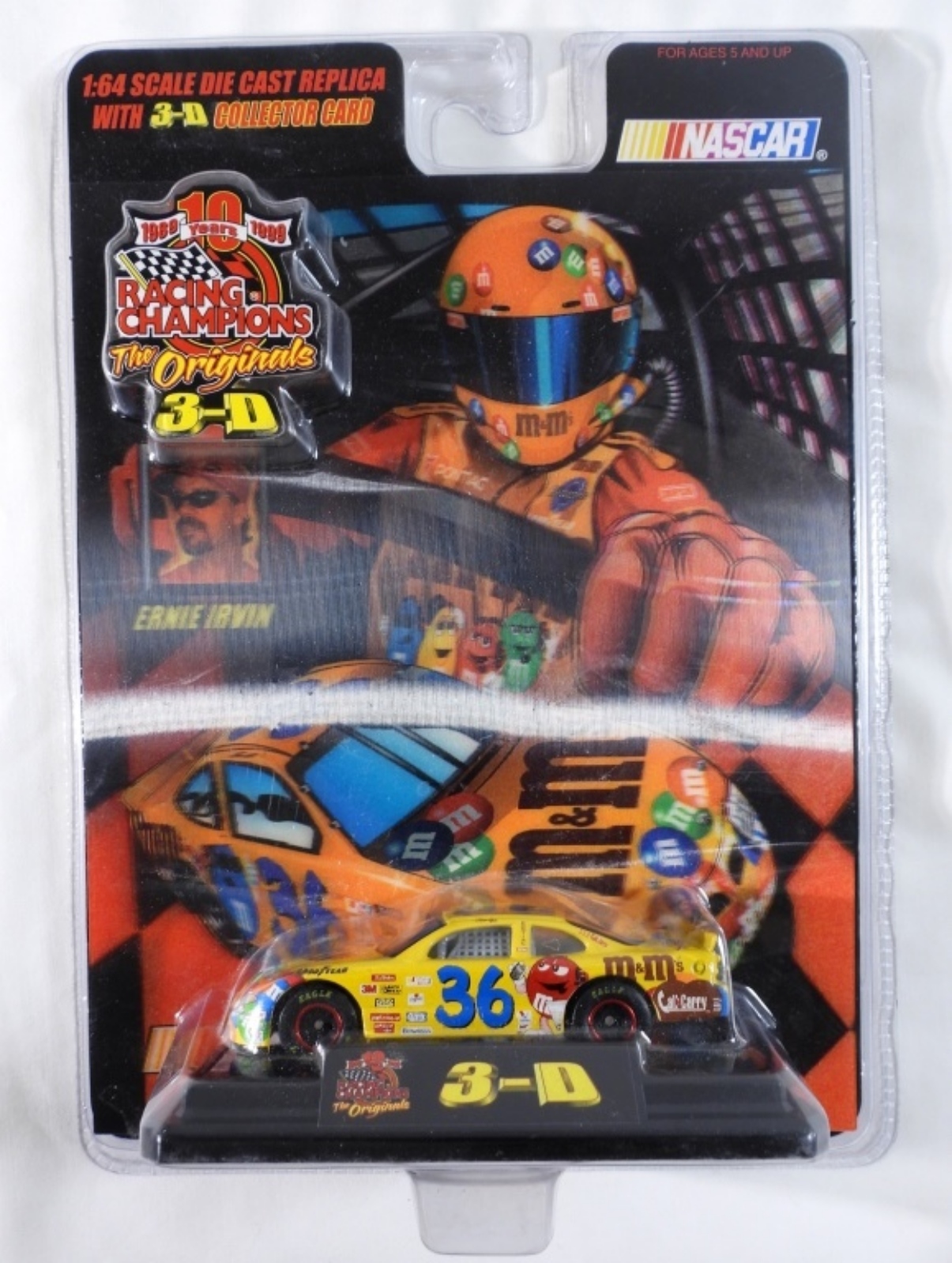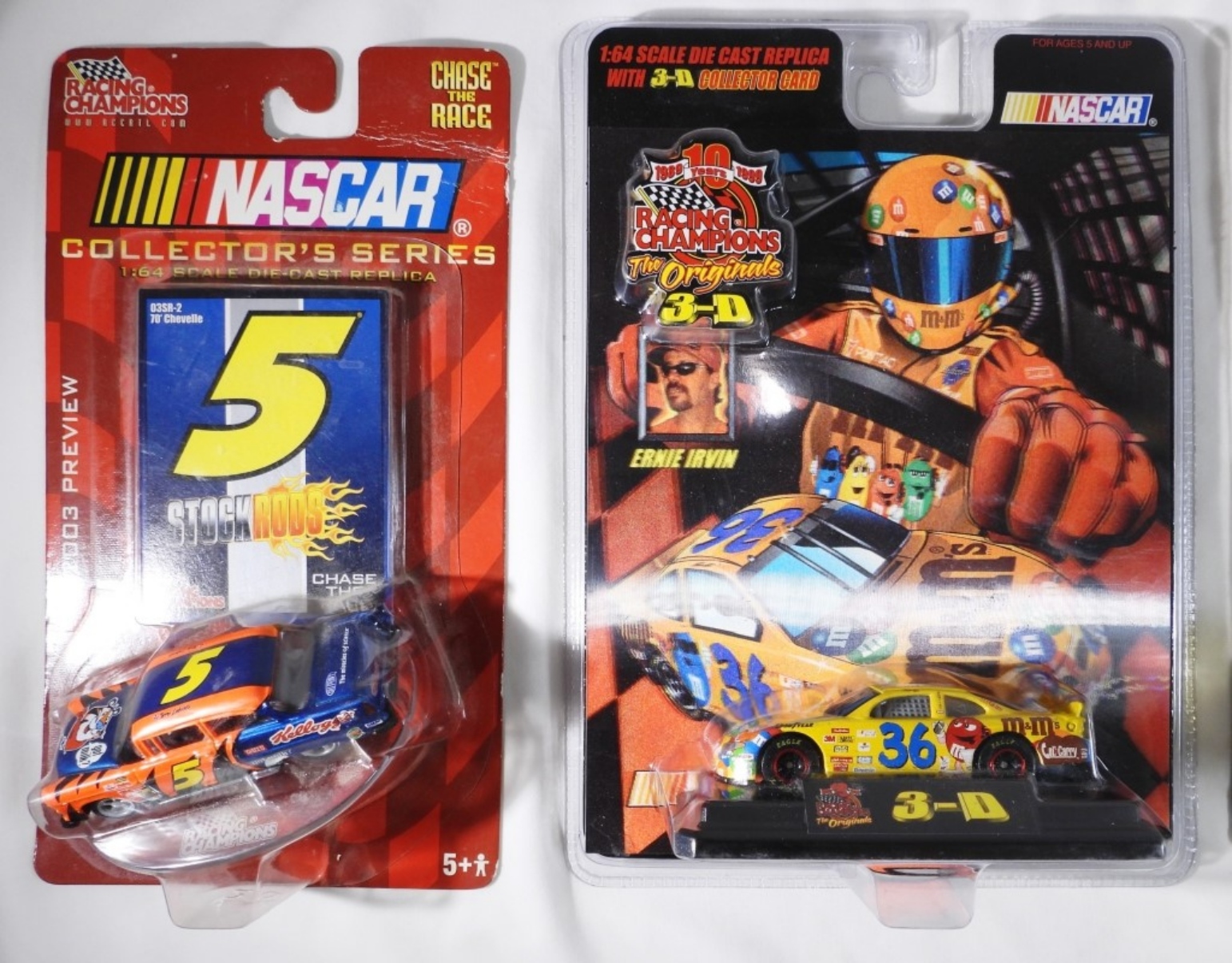 4 Nascar Collectors Cara. First car is A Nascar 1:64 Scale Die-Cast replica Ernie Irvins car with a 3-D Collectors Card made in 1999 (box is still in good condition). Second car Nascar 1:64 Scale Die Cast Stock