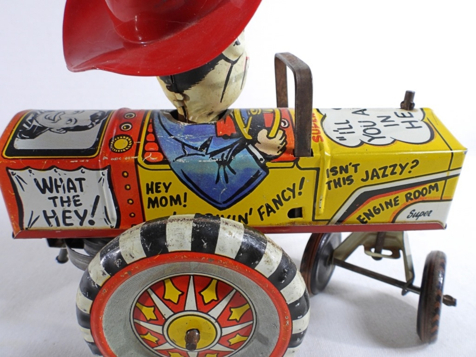 The tin toy made by Marx from the 1950s does wind up and move as it should. Normal wear from the years