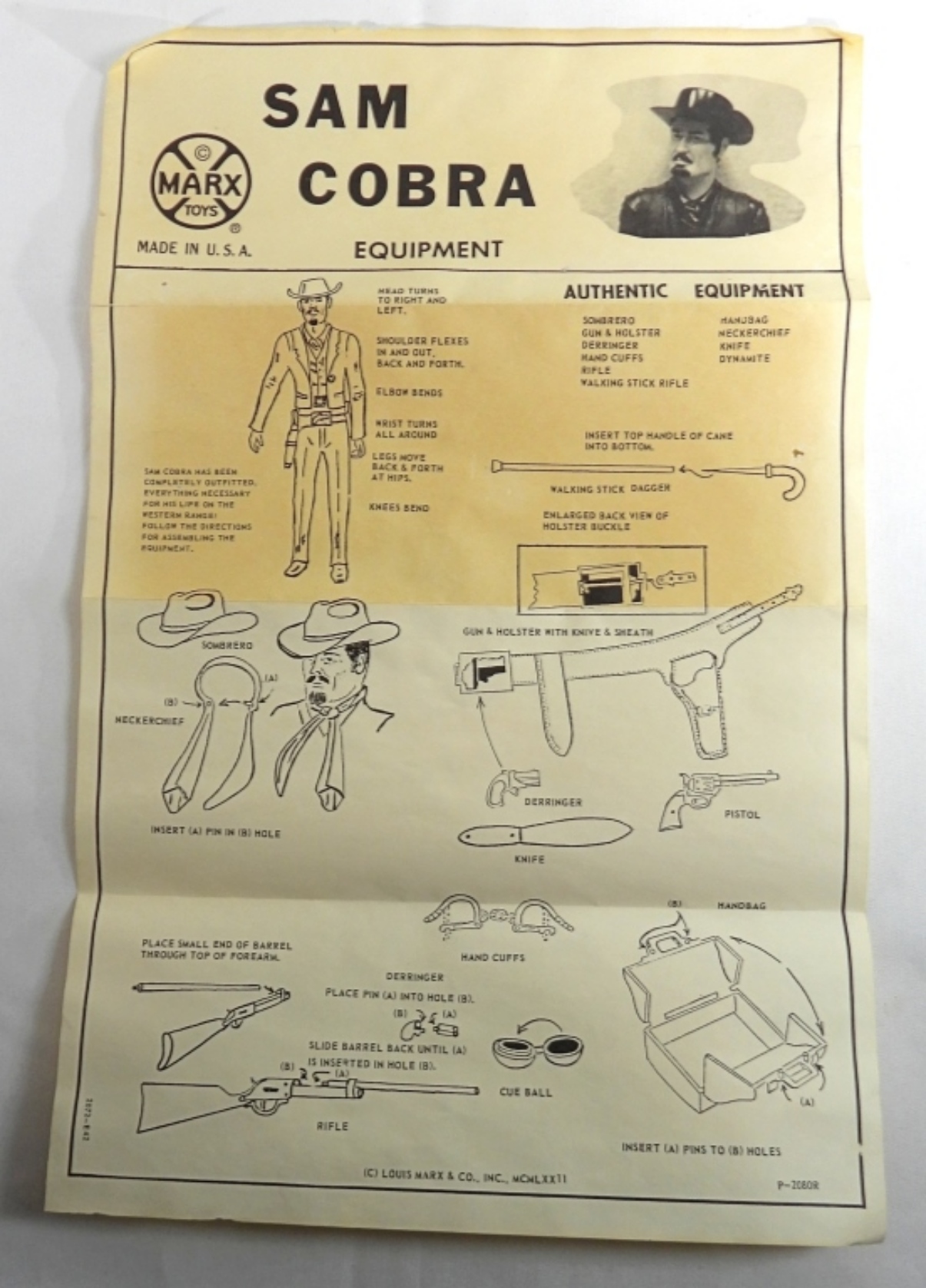 1972-1975 2072 series Sam Cobra from Johnny West Territory, great condition, fully movable joints, includes some of his original accessories and some extras, handbag is broken, equipment paper in good condition,