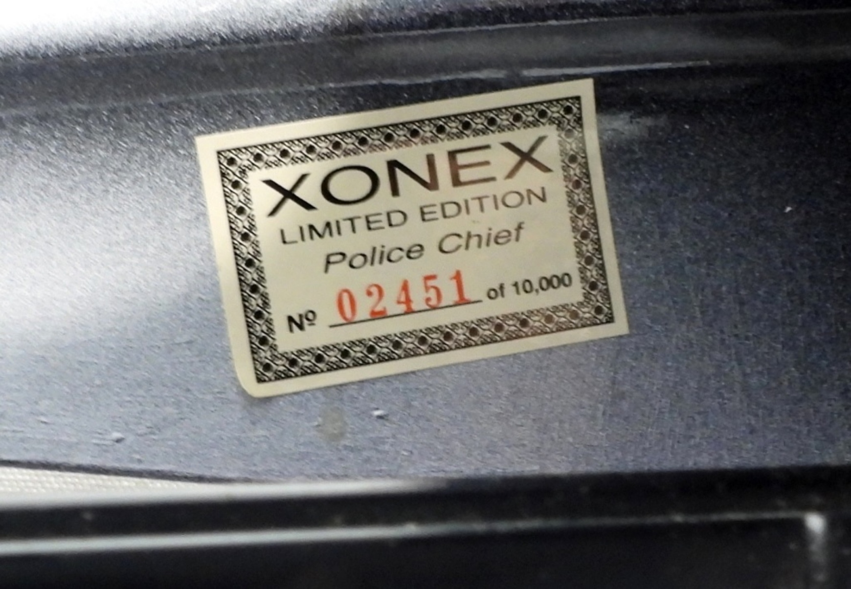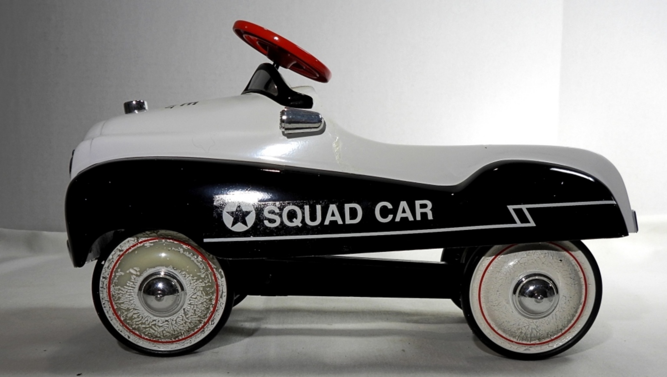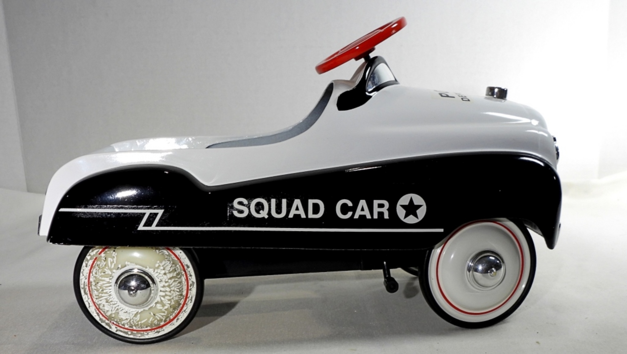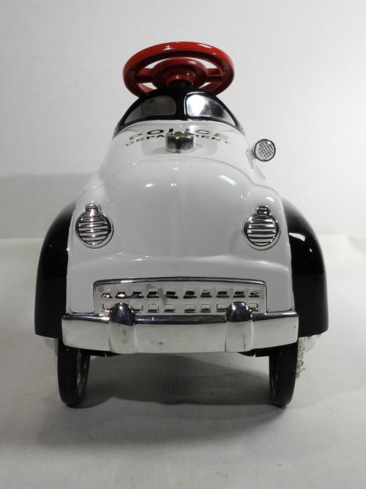 1993 die cast metal, 1:3 scale model, good condition, paint coming off of three wheels, some small scuffs to the car, steering wheel works well, pedals turn with ease, missing red light on top of the hood, certificate of