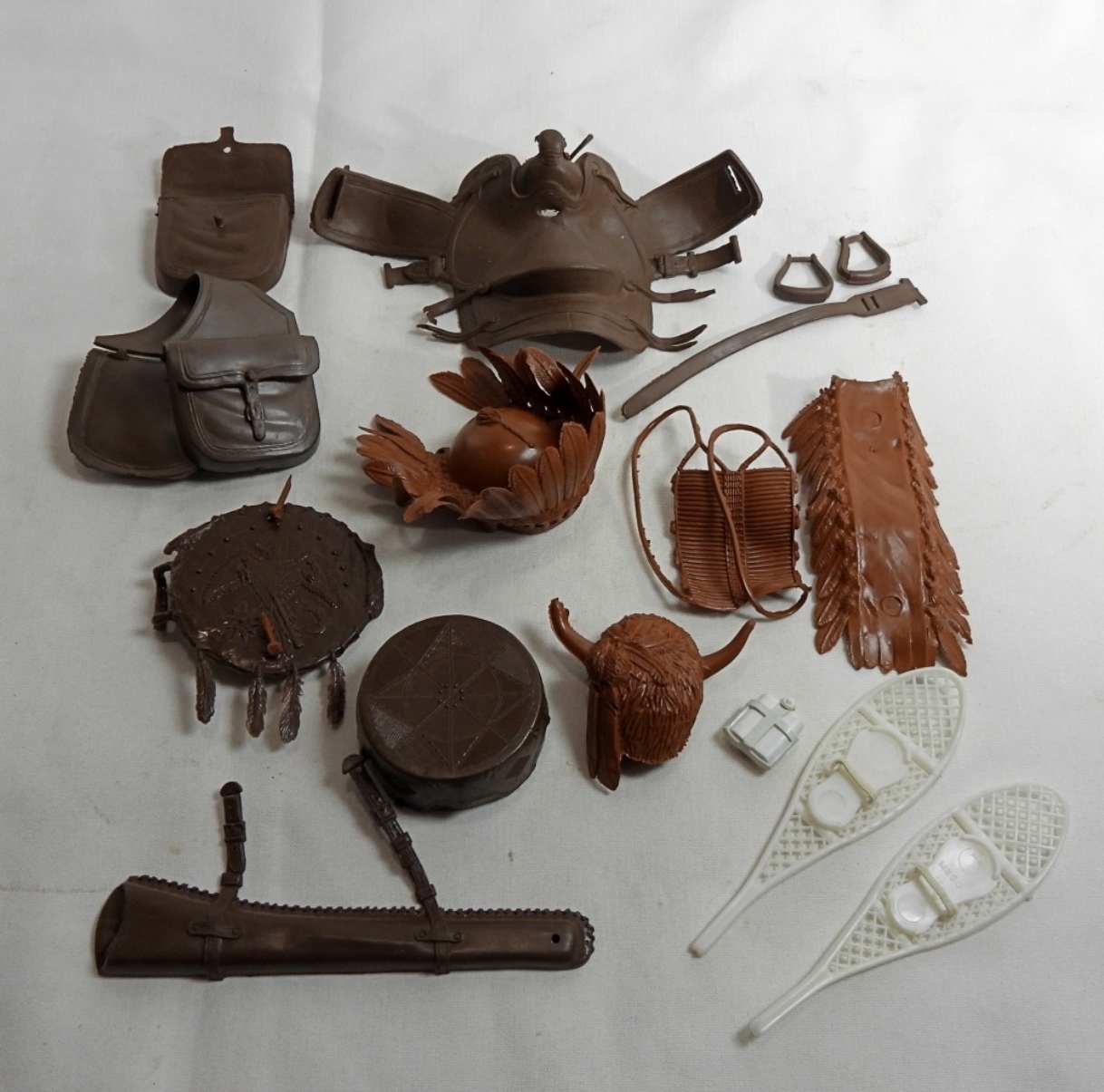 mostly native American accessories, Mego snowshoes, saddle is missing pieces