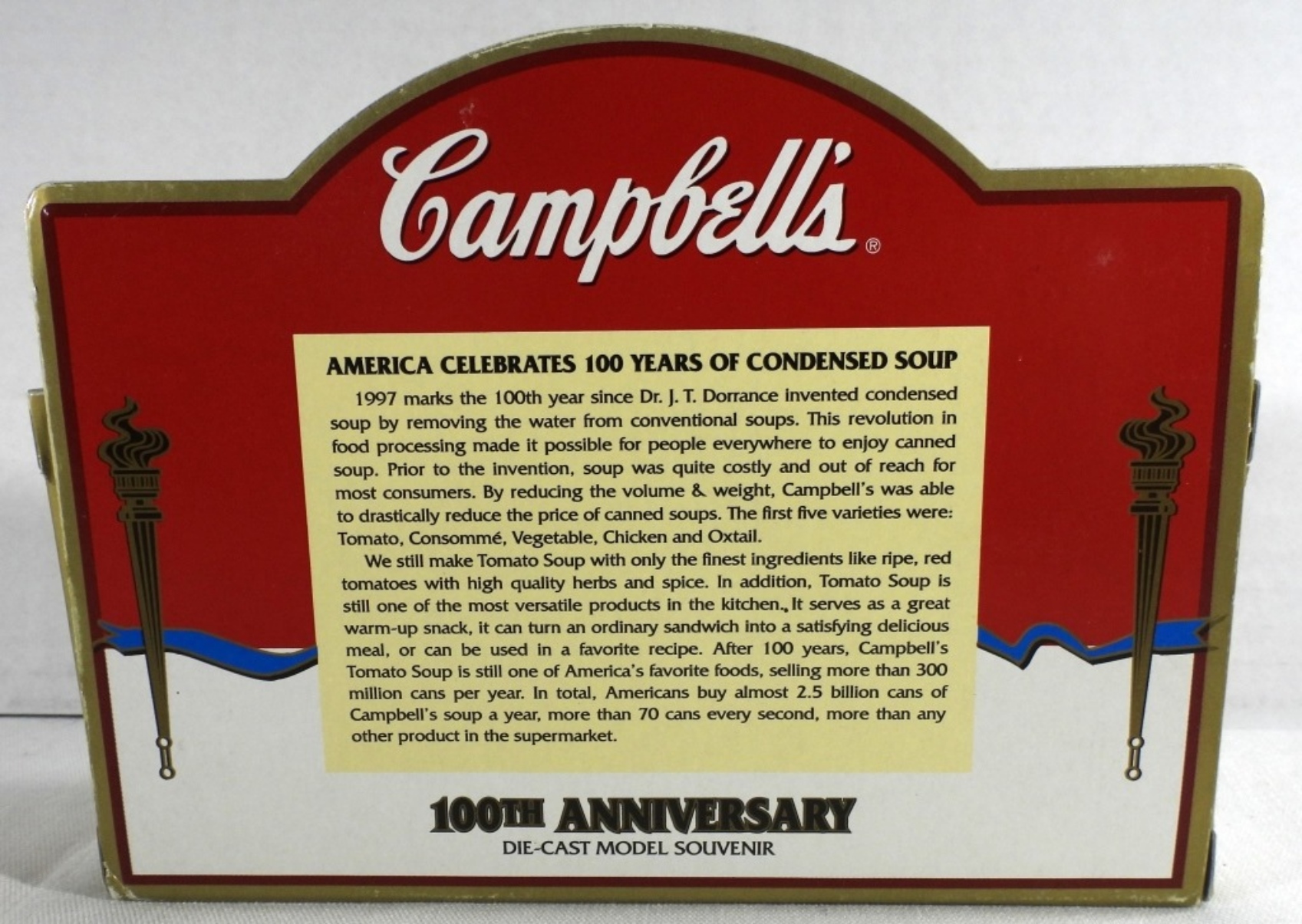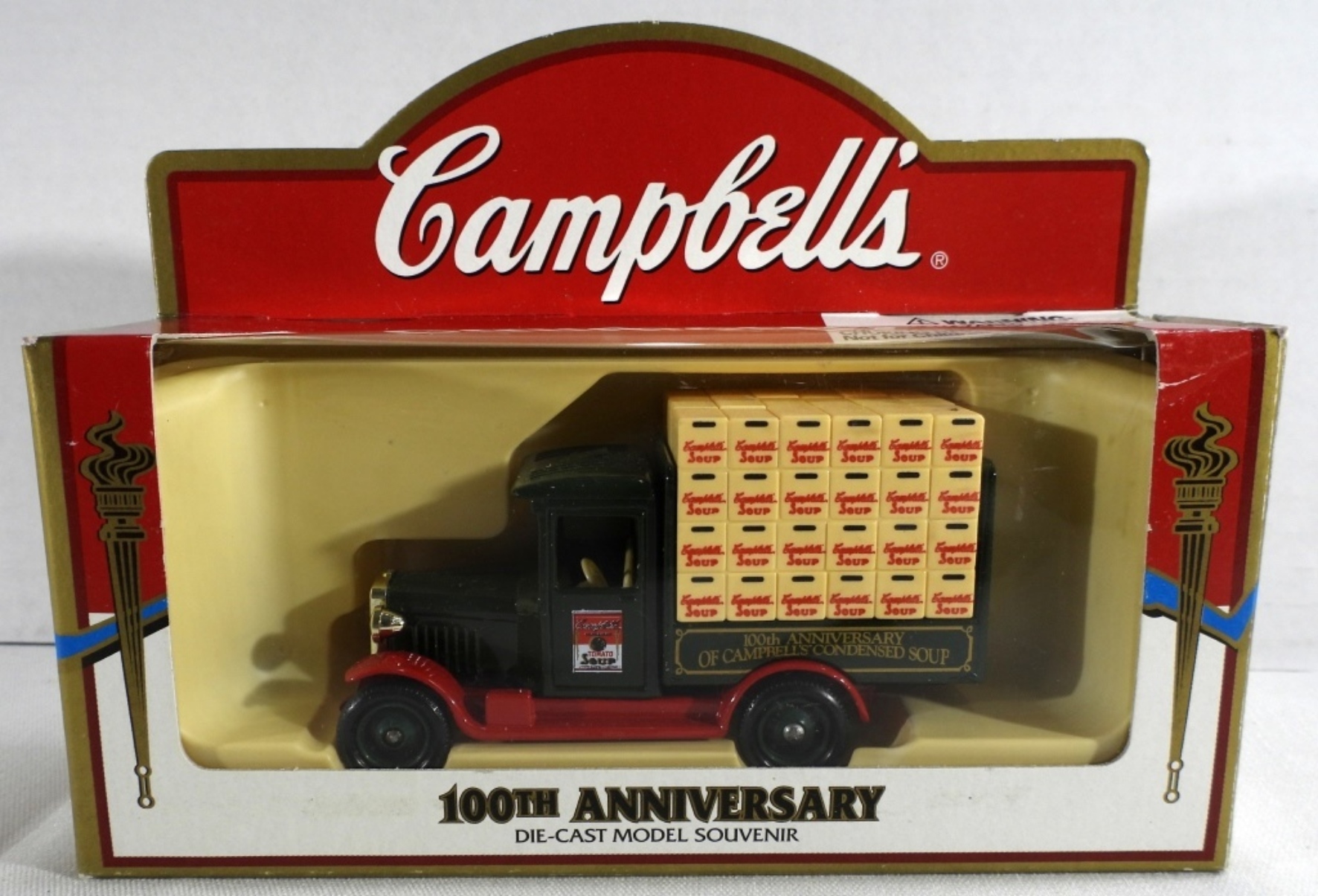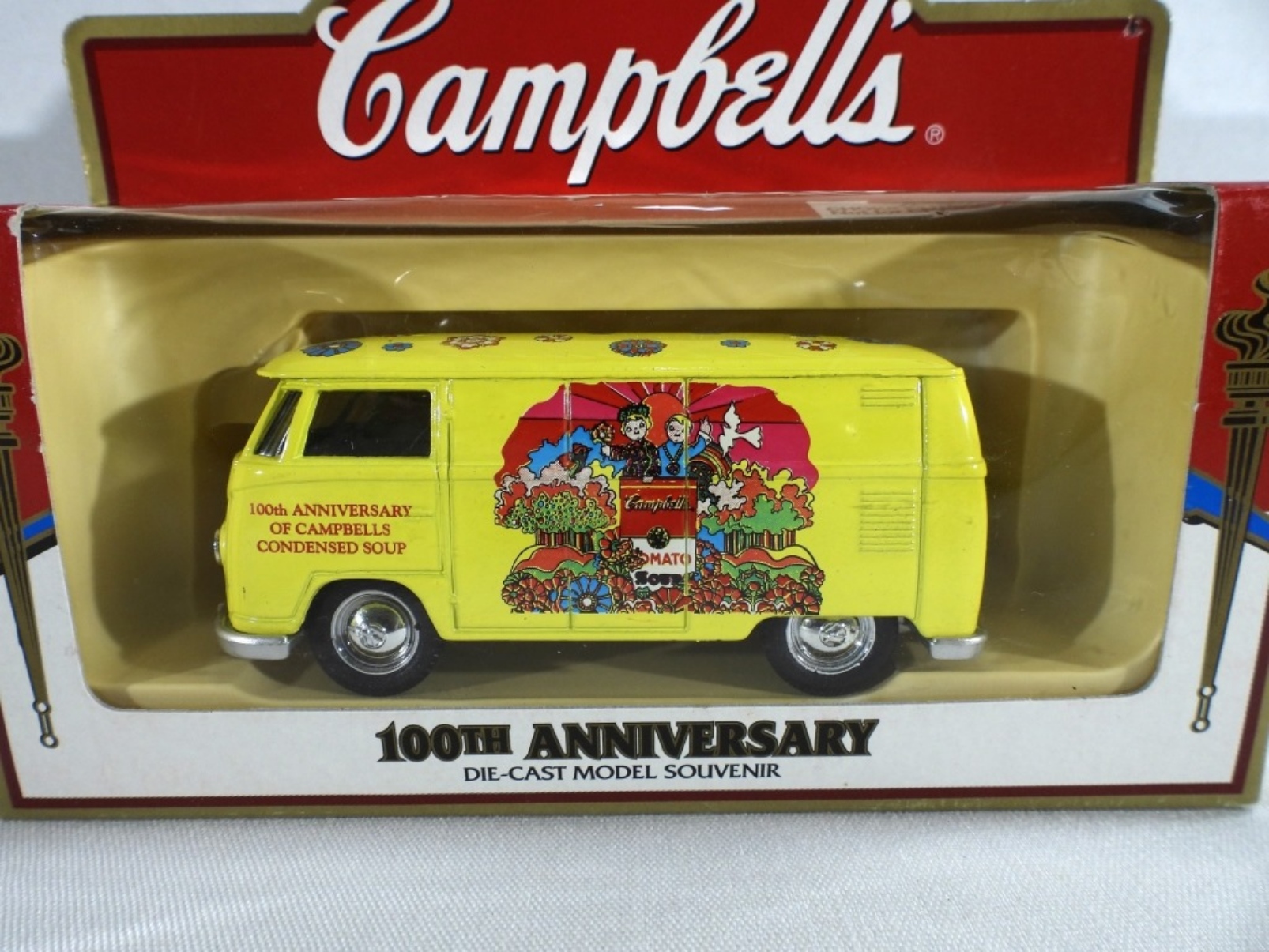 All new, still in original boxes. Campbell Soup Co.’s Tomato, Campbell’s condensed soup hippy van, and old truck. Also, a Beefsteak Tomato Soup truck
