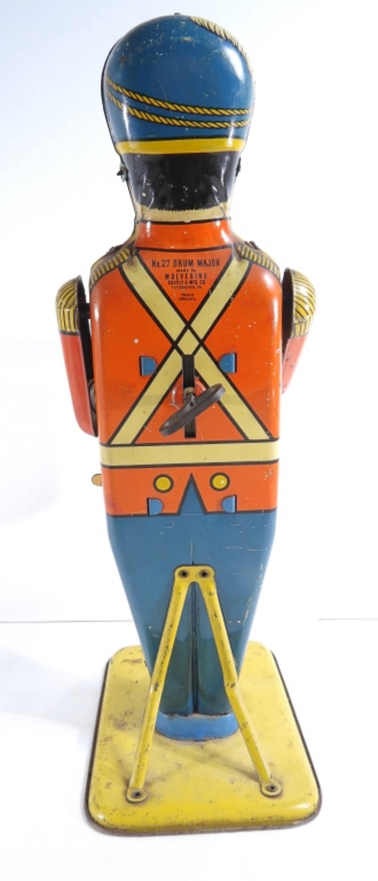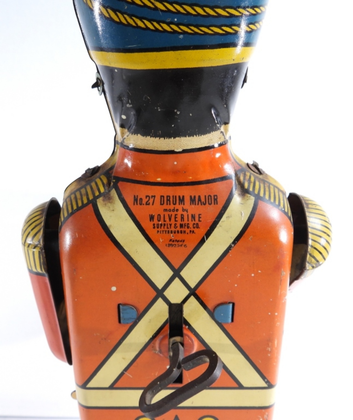 1950s, The toy still winds up and moves (one arm can pop out a little; it just needs to be pushed back in). Made by Wolverine Supply & MFG. Co, Patent 1892546