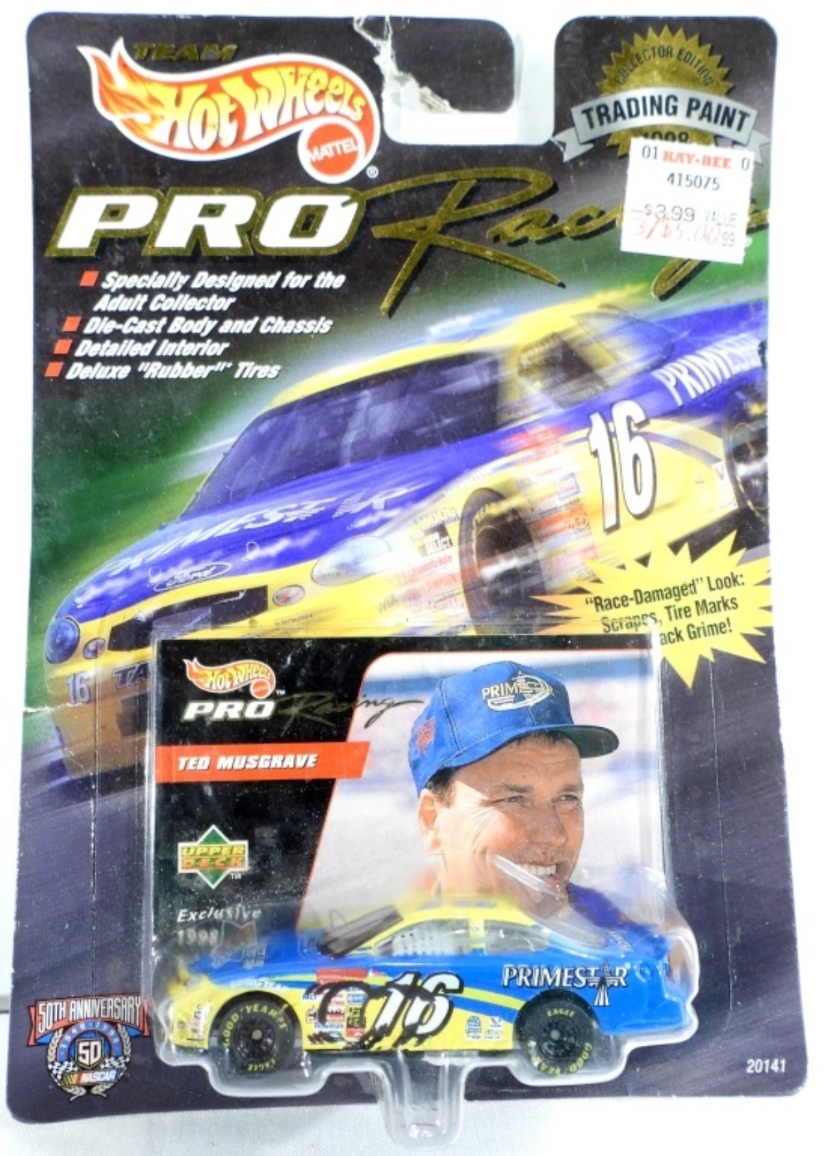All still in new packages. 1.1998 Ted Musgrave Ford Taurus. 2. 1997 #89 Dennis Setzer NASCAR Primestar sponsor, known as “Error Car” because it is packaged in a package for number 94 Bill Elliott,