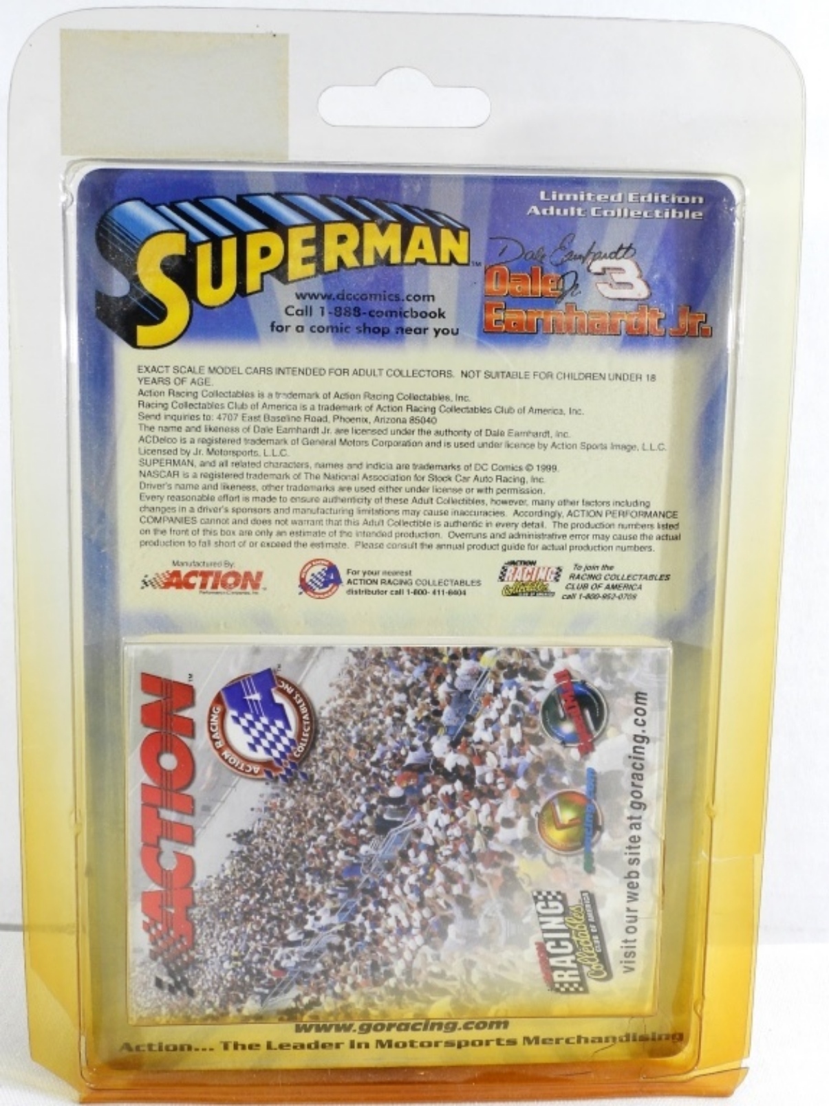 All still in original packages 1. Cop Rods Bismarck, ND The ultimate police cruisers. 2. Greenlight Indy Car Series Sam Hornish Jr. #6. 3. Dale Earnhardt Jr. #3 Superman 1999 Monte Carlo Limited Edition W649935215-2. The
