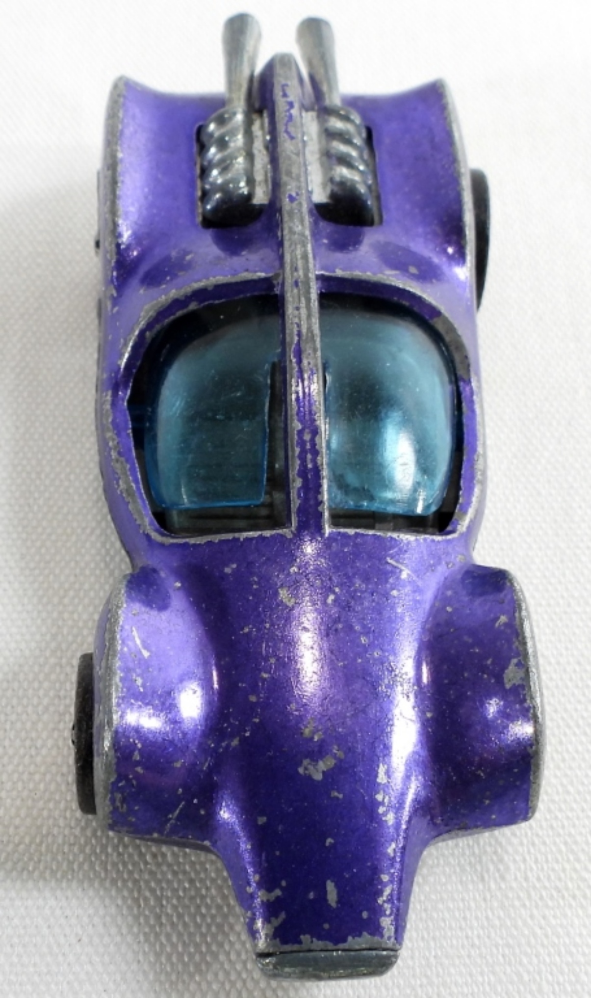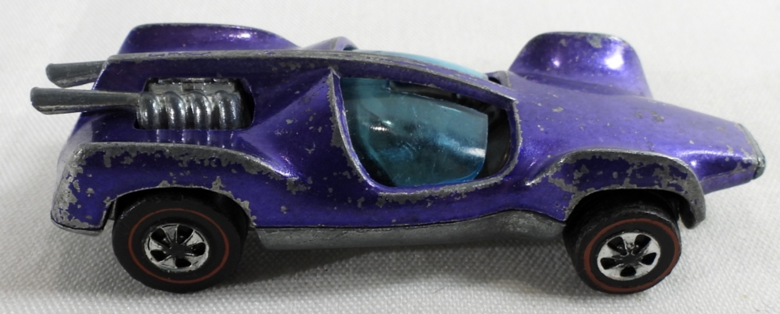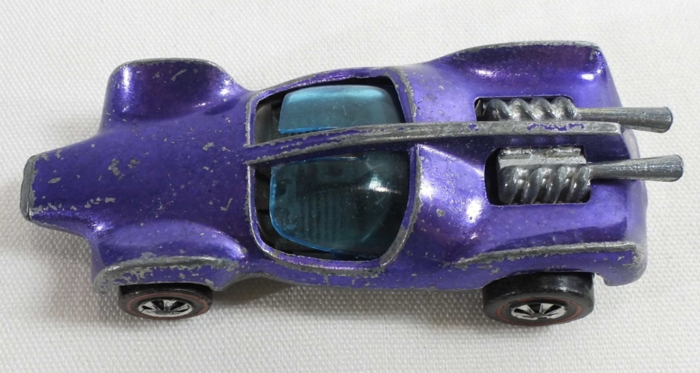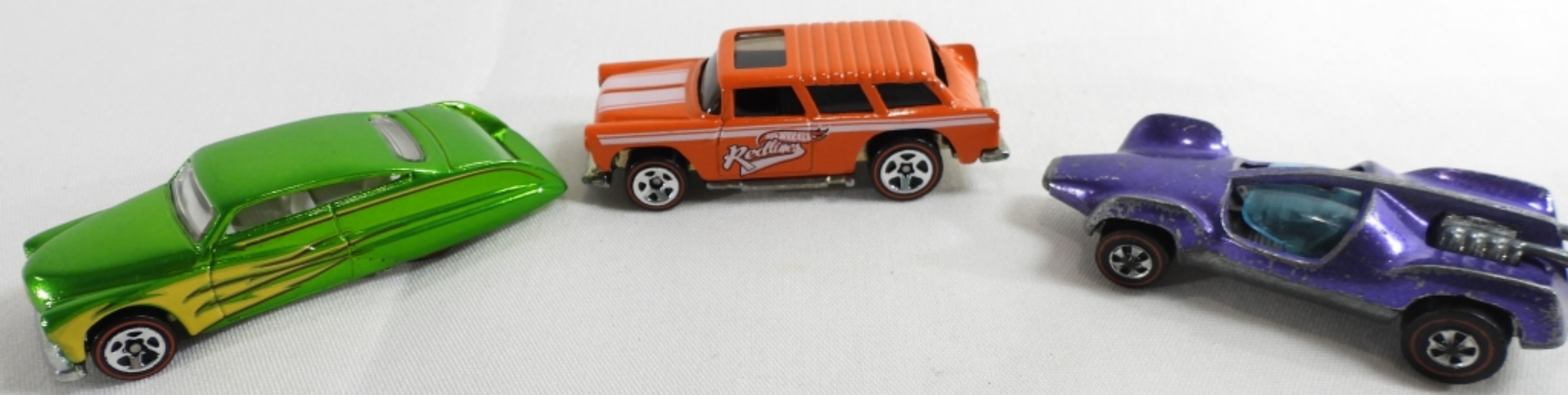 Not in packages. 1. 1969 Mantis purple Hong Kong. The window does not move. It’s off track. Silver inside. 2.1969 Orange Nomad Madein Malaysa. 3. Purple Passion Chrome green with yellow flames 1:64. White inside.