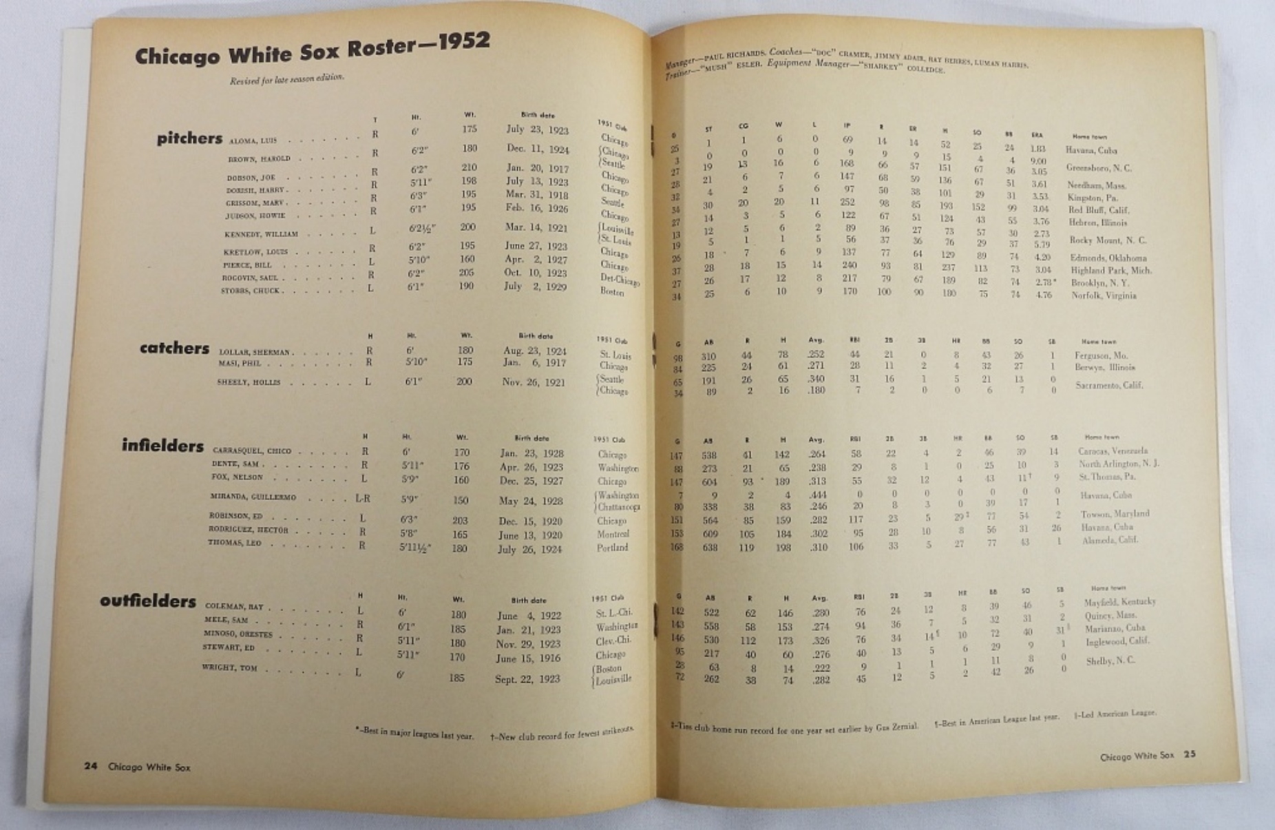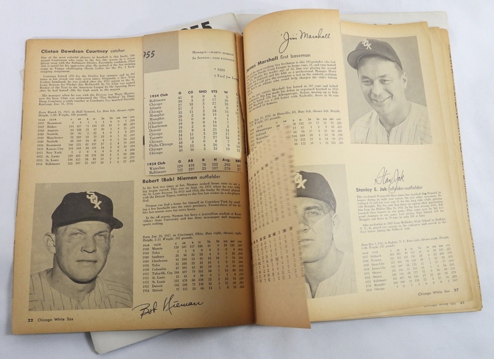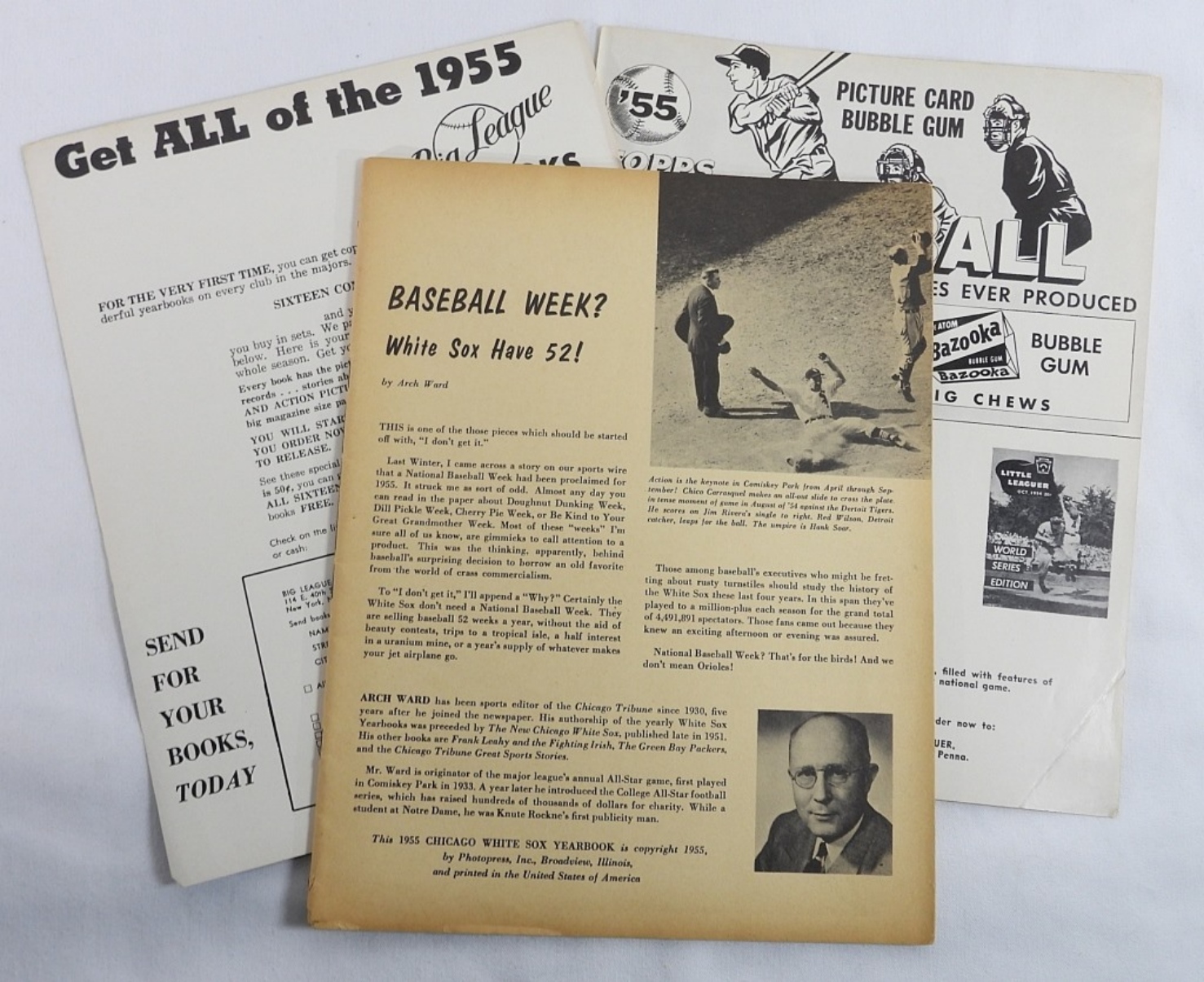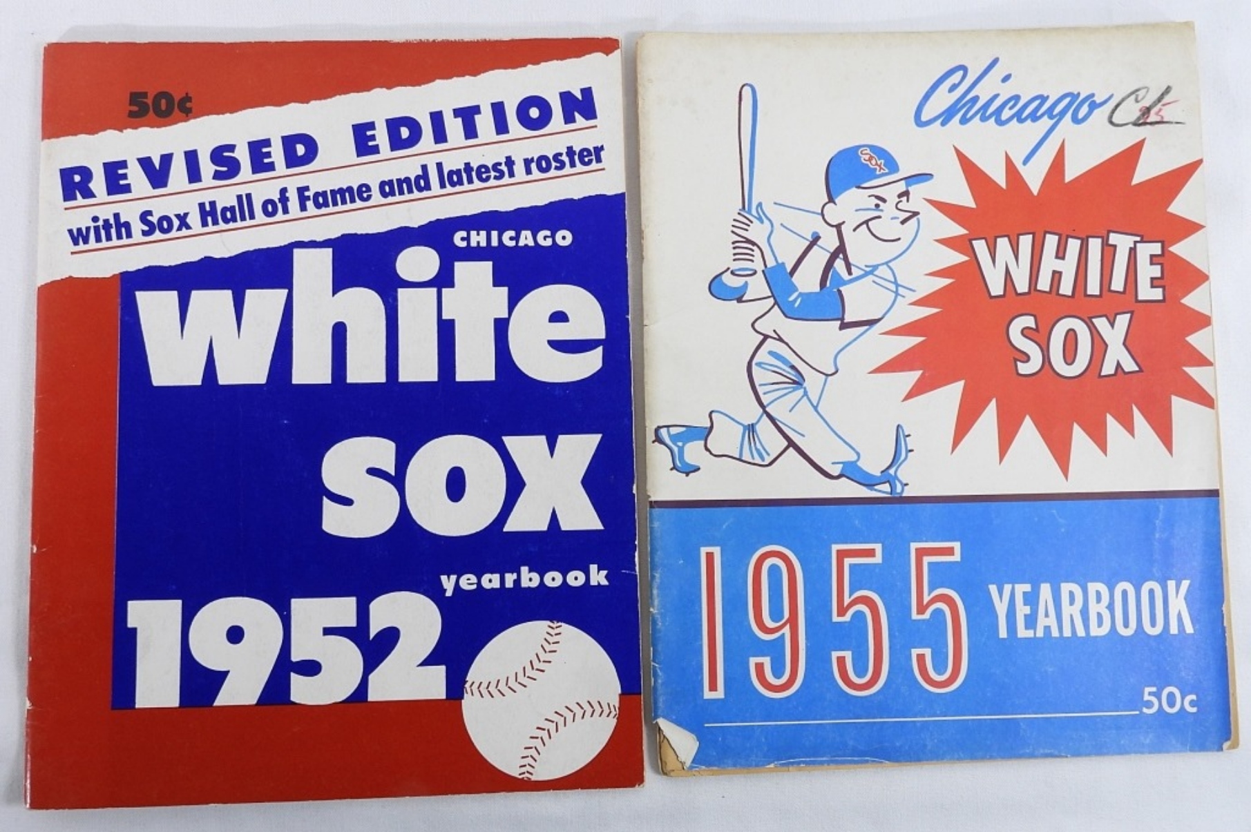 1952 & 1955 White Sox Yearbooks. 1952 is the revised edition. 1955 cover is detached and several players photos have been cut out of the book.