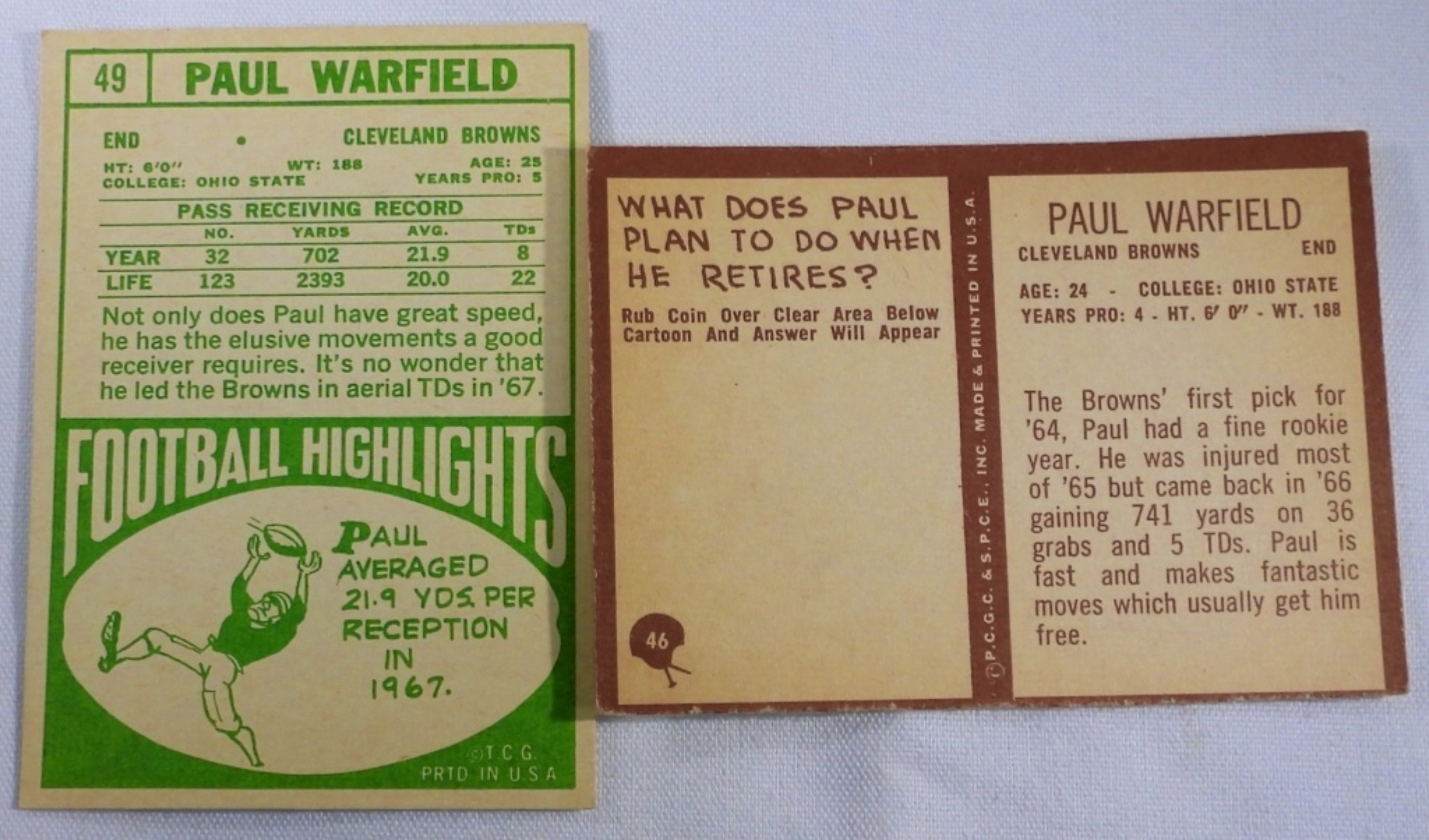 1967 Card 46, 1968 Card 49, Both in very good condition