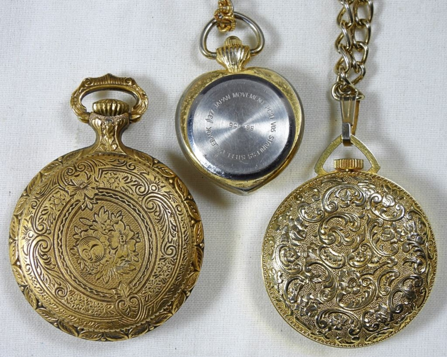 (3) Ladies pocket watches, untested to see if they work. Watches are not verified, authenticated, or tested in running condition unless otherwise specified.