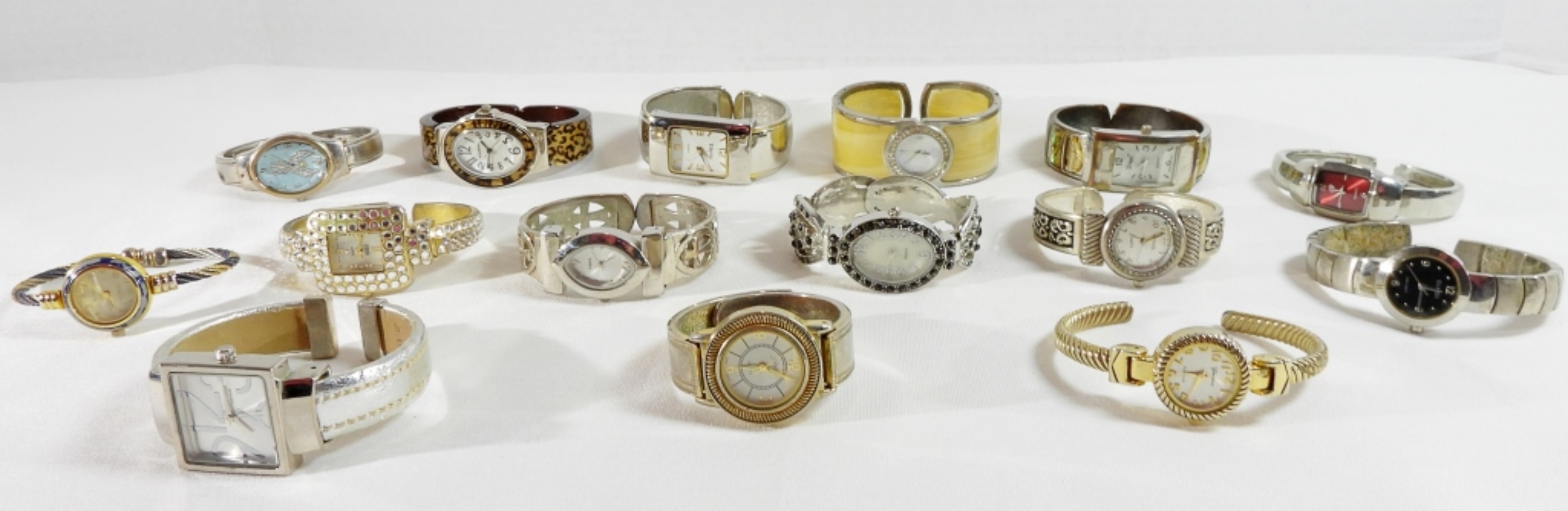 Watches are not verified, authenticated, or tested in running condition unless specified. 15 women’s cuffed watches in a variety of brands, all of which are very different.