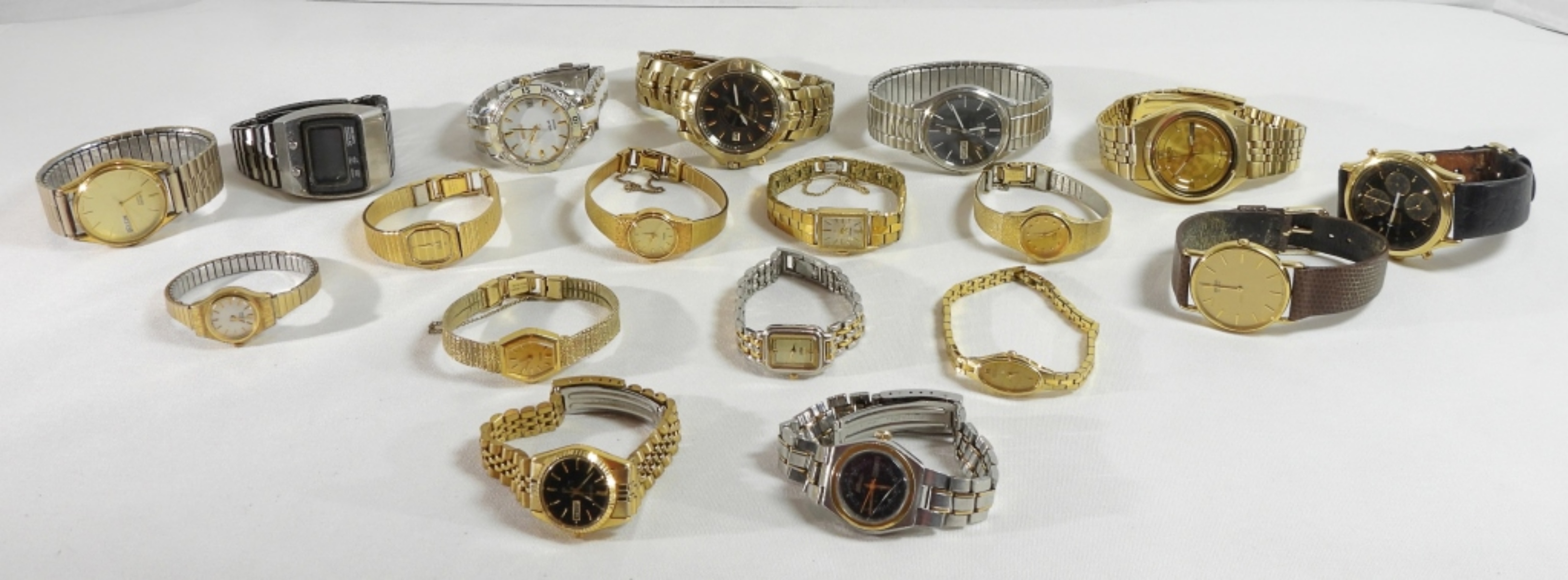 Watches are not verified, authenticated, or tested in running condition unless specified. A mixed lot of 18 men’s and women’s Seiko watches, in a variety of gold and silver-tones.