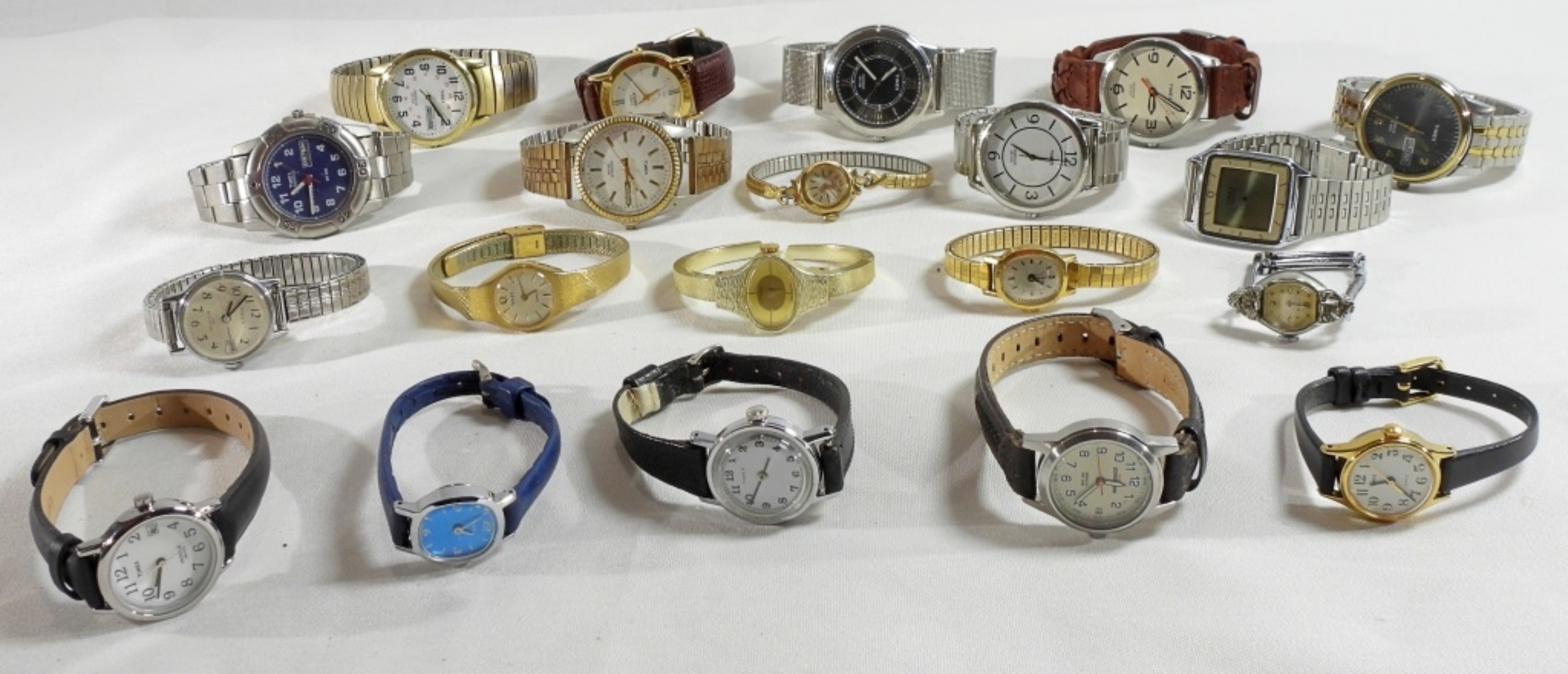 Watches are not verified, authenticated, or tested in running condition unless specified. 20 Timex men’s and women’s watches in a variety of styles.