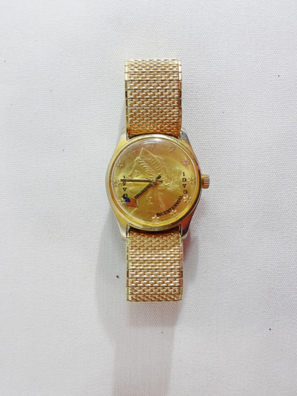 Watches are not verified, authenticated, or tested in running condition unless specified. 1776-1976 bicentennial men’s gold-tone watch.
