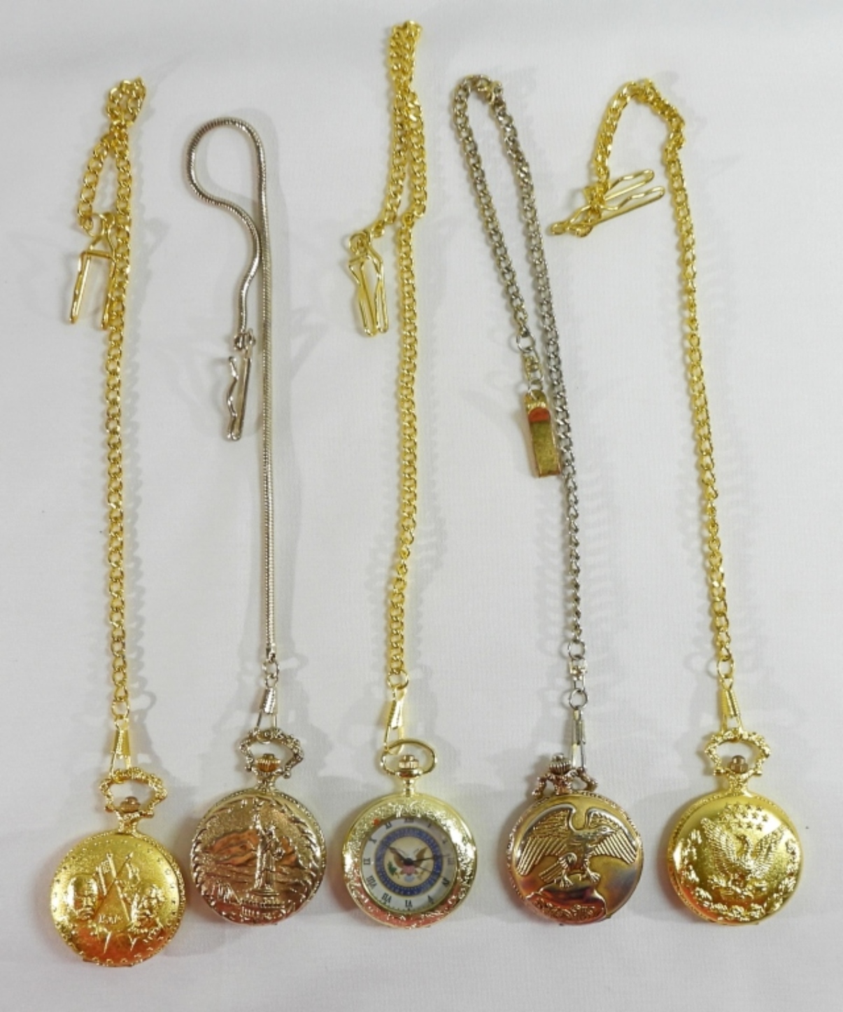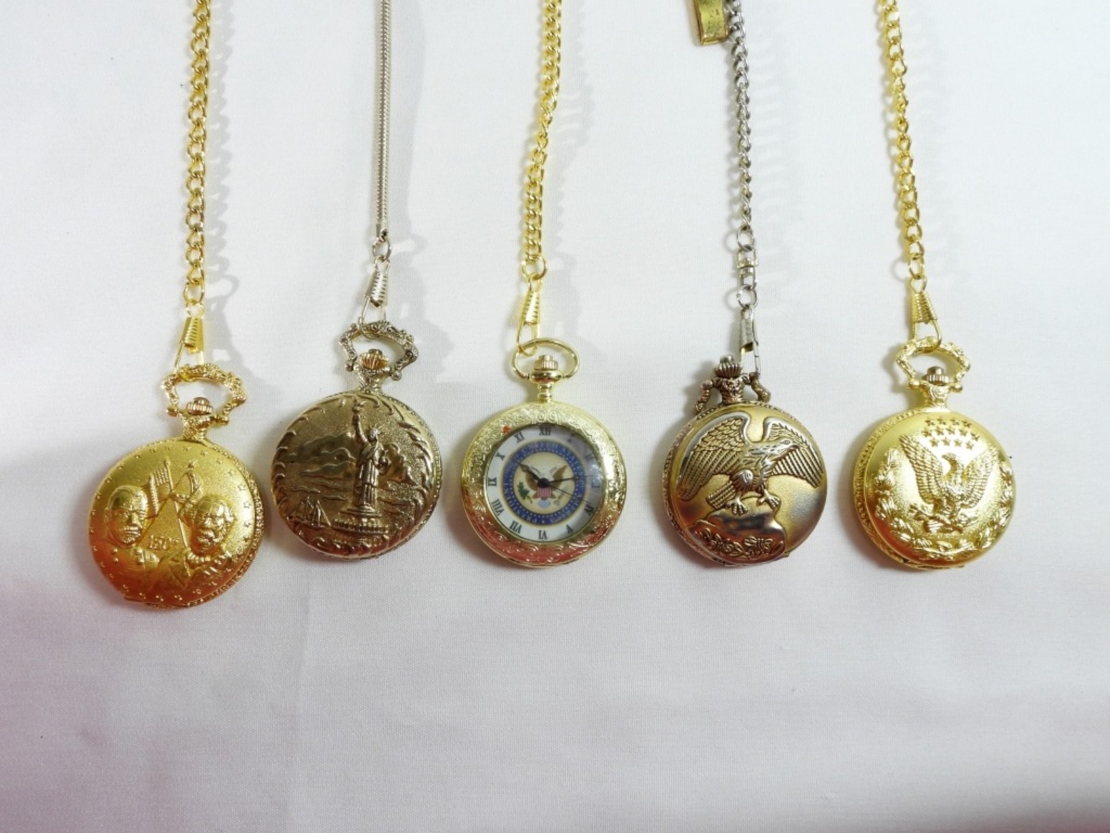 Watches are not verified, authenticated, or tested in running condition unless specified. 5 American-themed pocket watches, a president of the United States pocket watch, American Civil War 150th Sesquicentennial