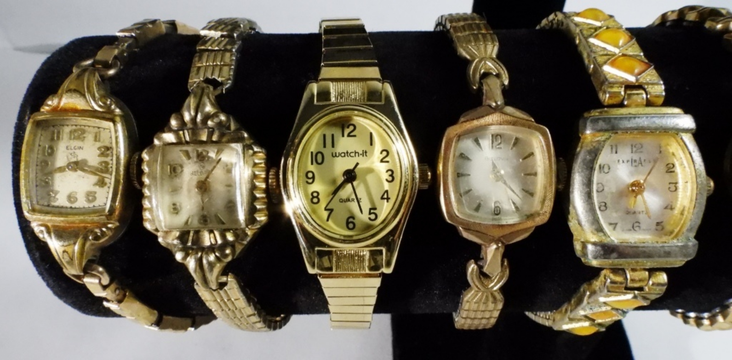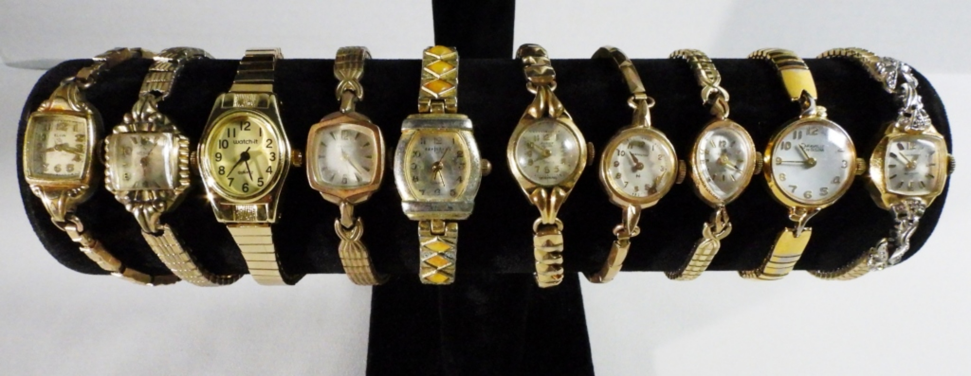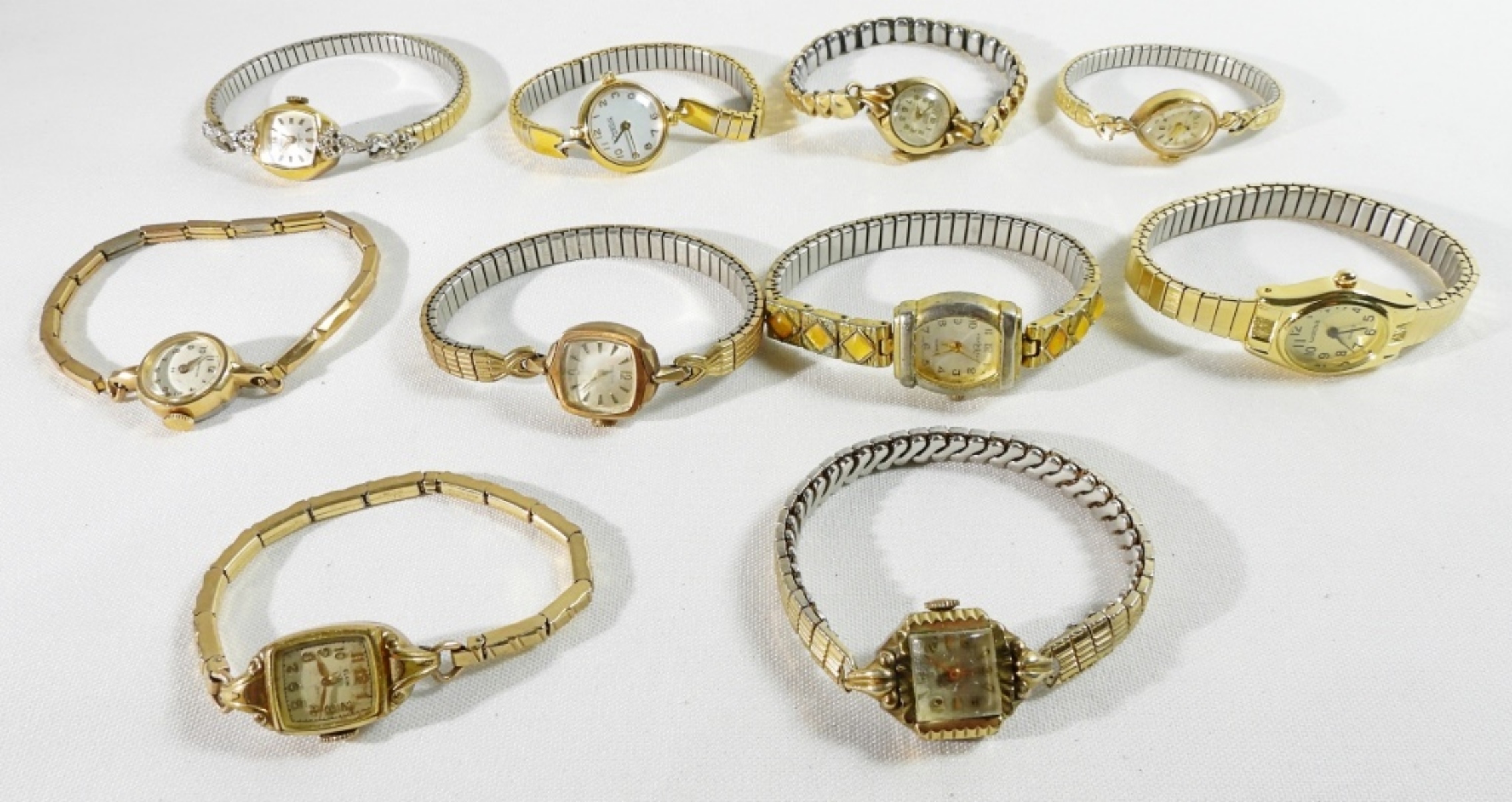 All different styles, all bands are stretchy, Gold-tone, and two-tones are mixed in this lot. Watches are not verified, authenticated, or tested in running condition unless specified. All different styles, all bands