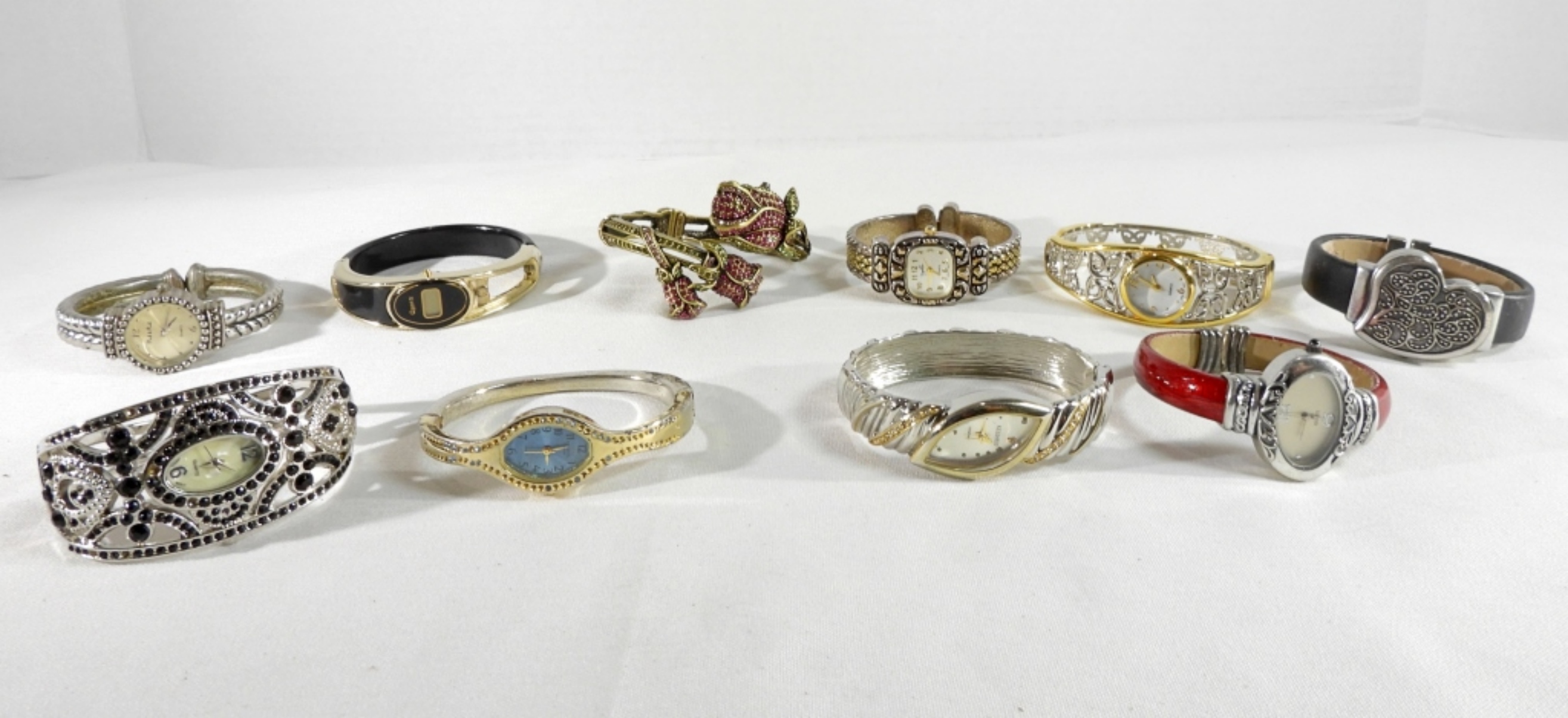 Watches are not verified, authenticated, or tested in running condition unless specified. 10 women’s fashion bangle watches in many styles.
