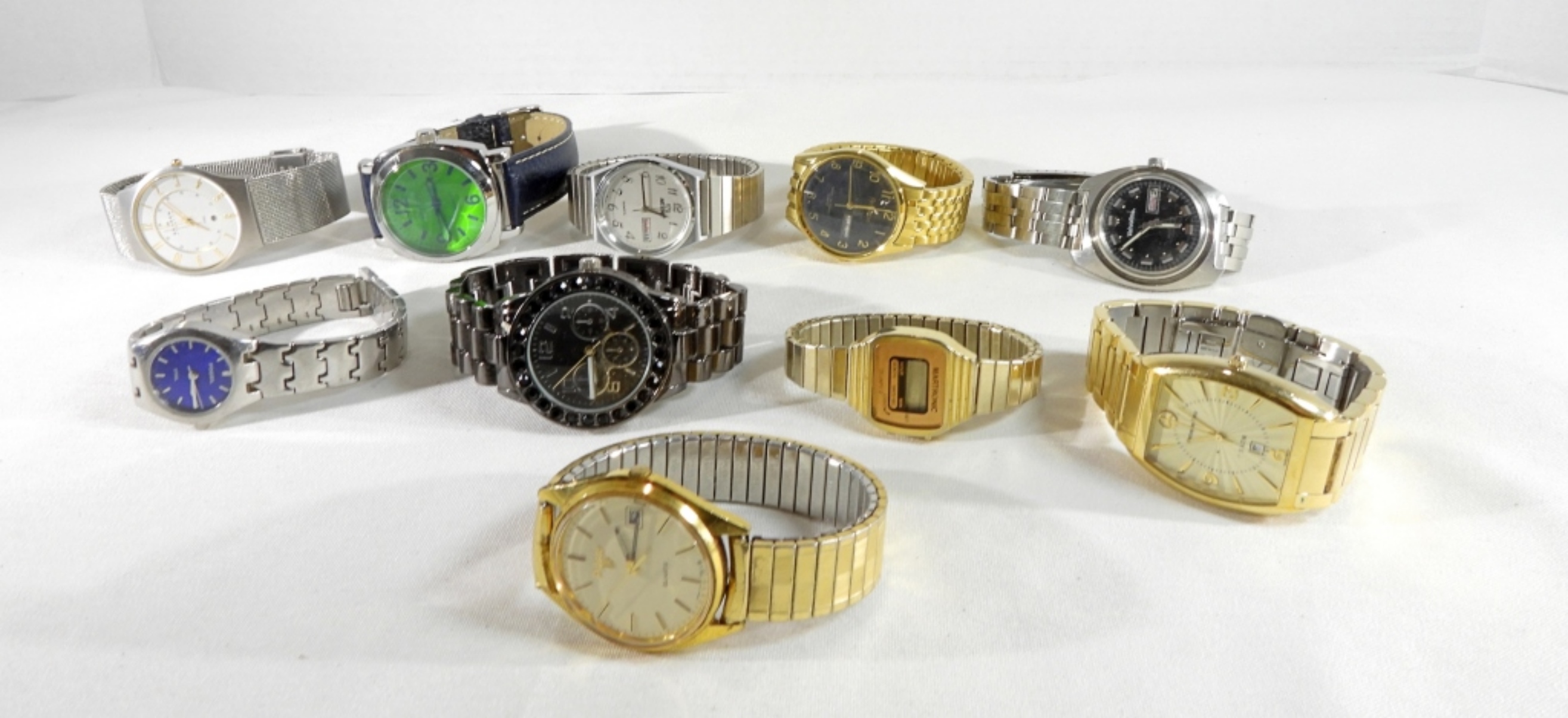 Watches are not verified, authenticated, or tested in running condition unless specified. Mixed lot of 10 men’s watches, they have a variety of watch and watchband styles.