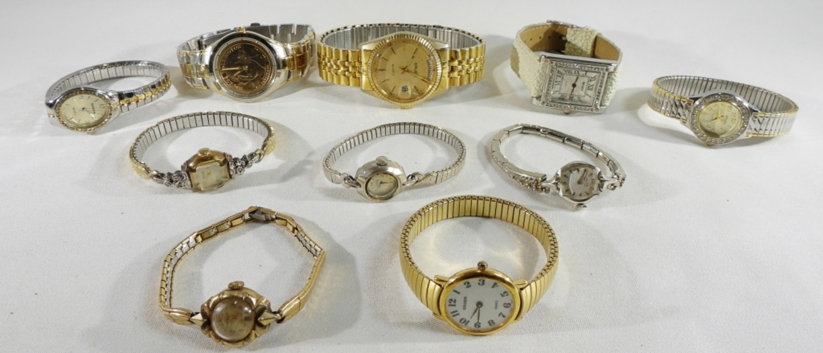 Watches are not verified, authenticated, or tested in running condition unless specified. 10 Gruen men’s and women’s fashion watches in many different styles.