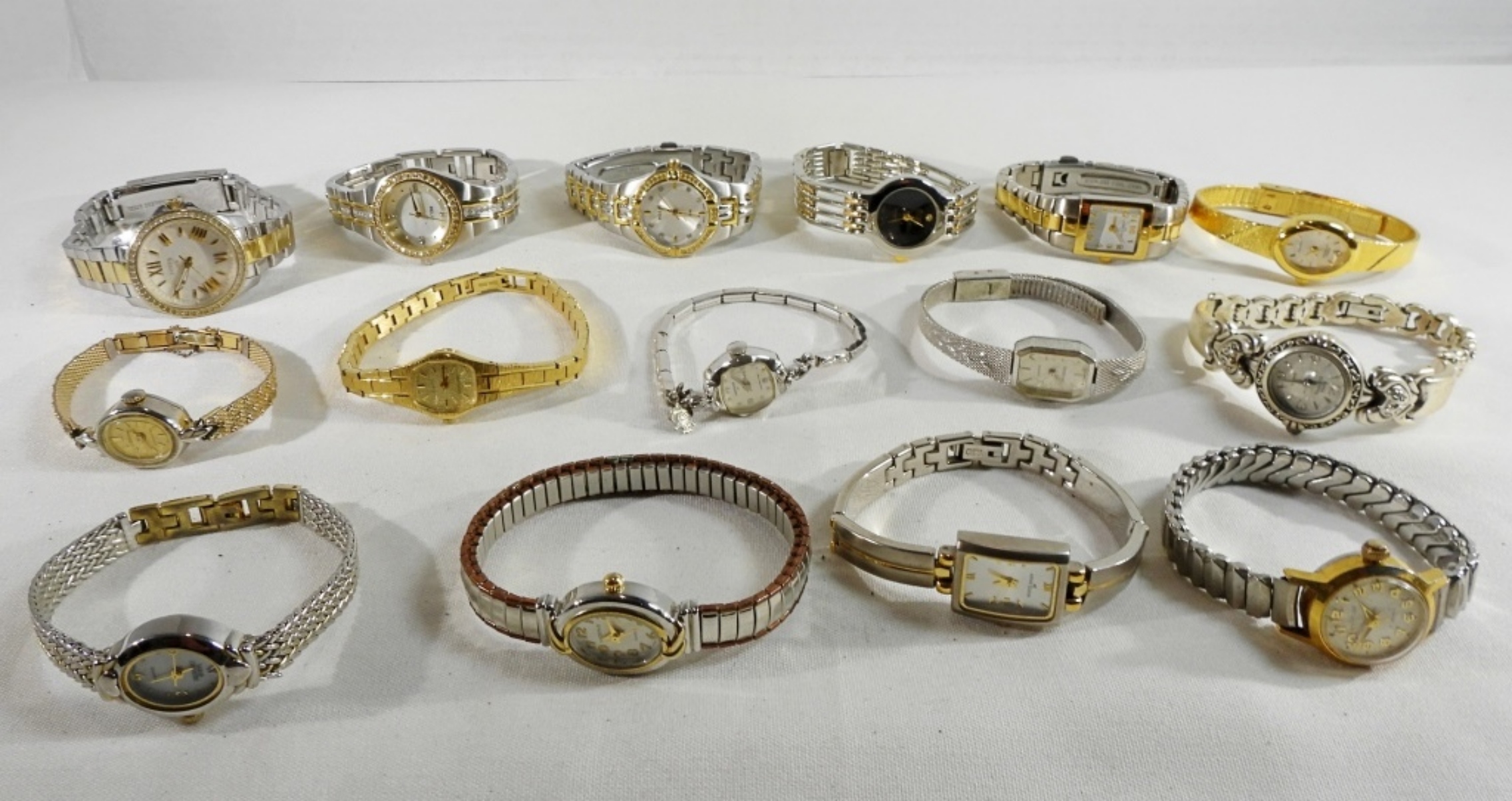 Watches are not verified, authenticated, or tested in running condition unless specified. 15 Women’s gold and silver-tone fashion watches, in a variety of brands.